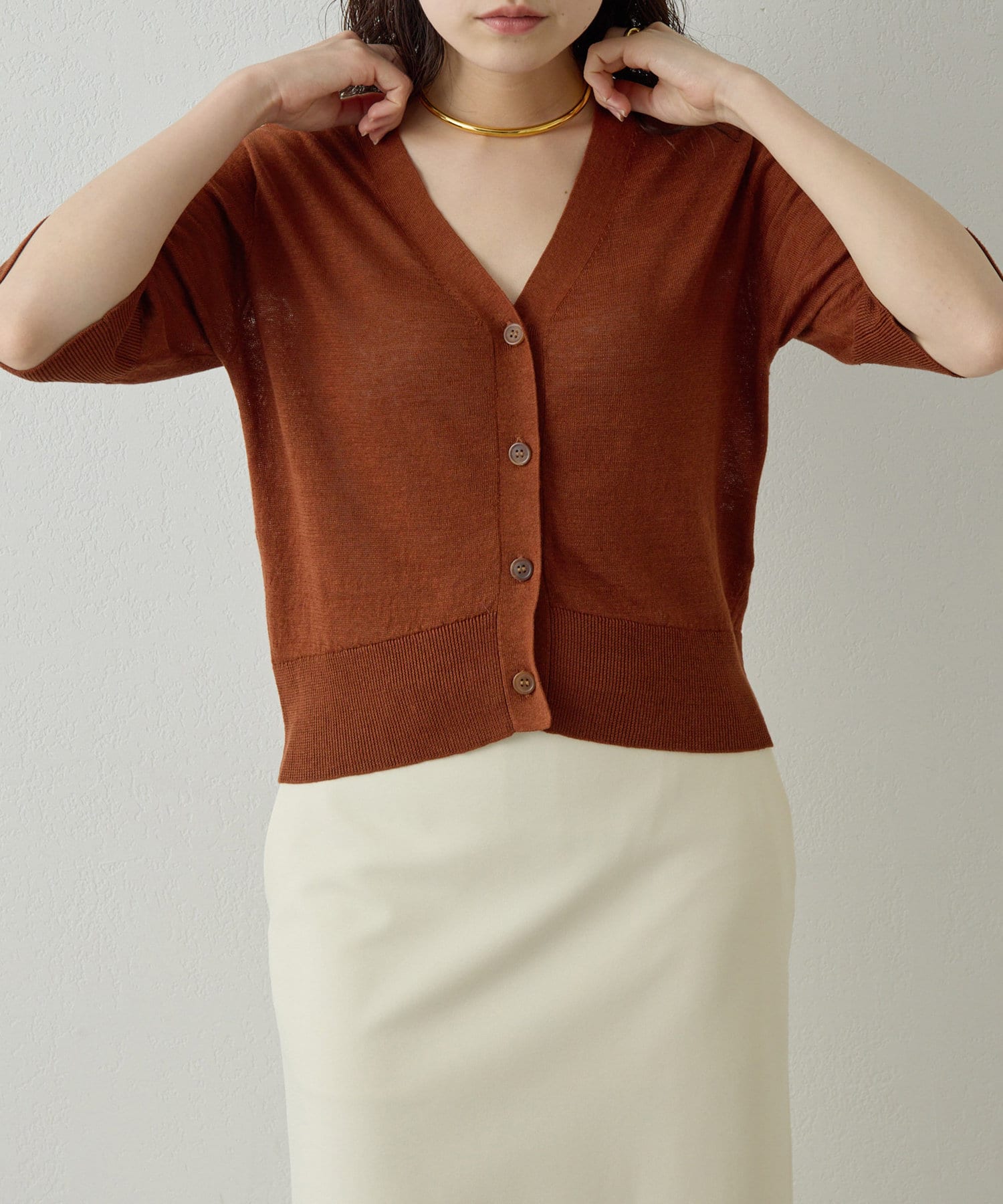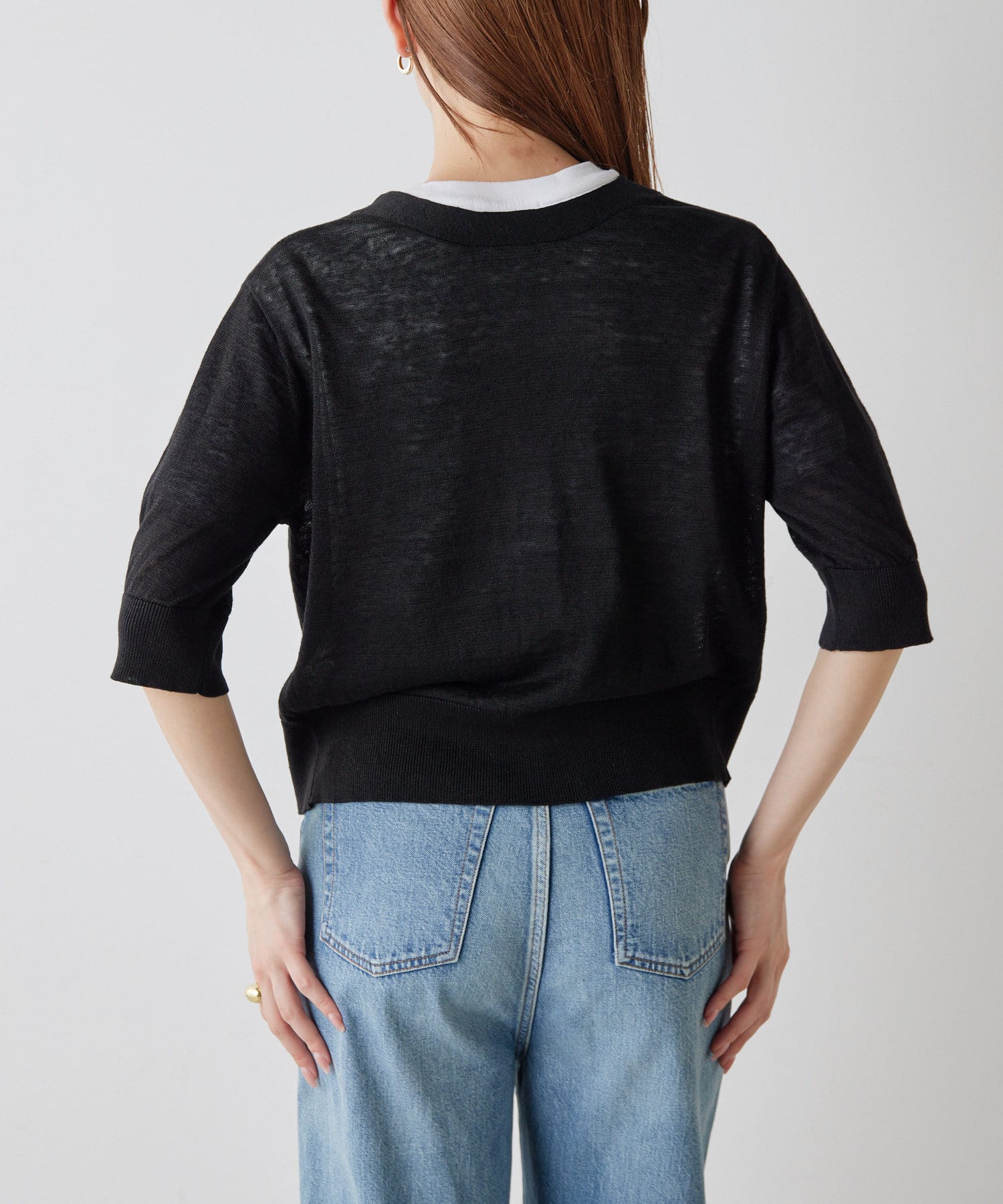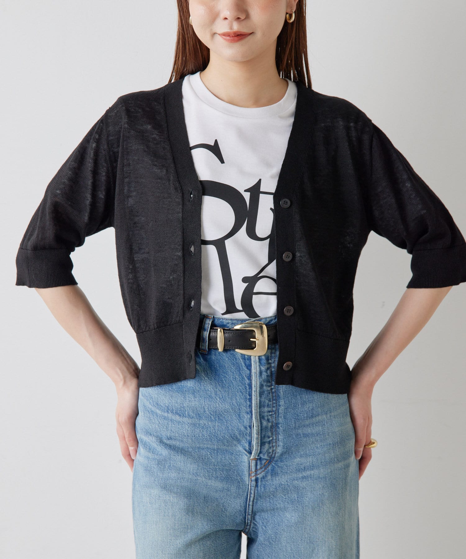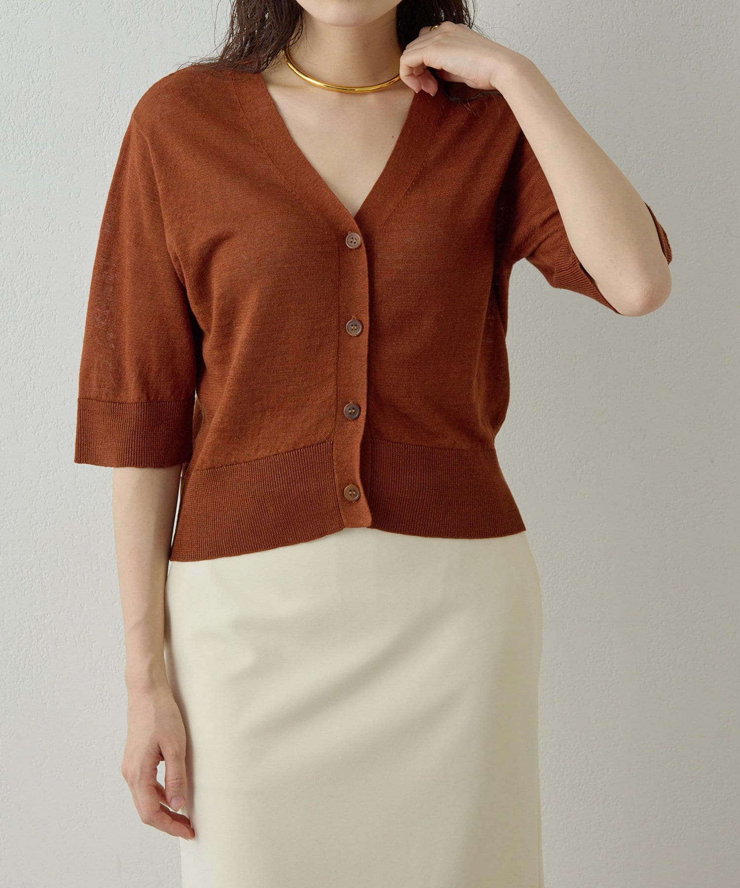 すっきりと爽やかに楽しめる、コンパクトなリネンカーデ