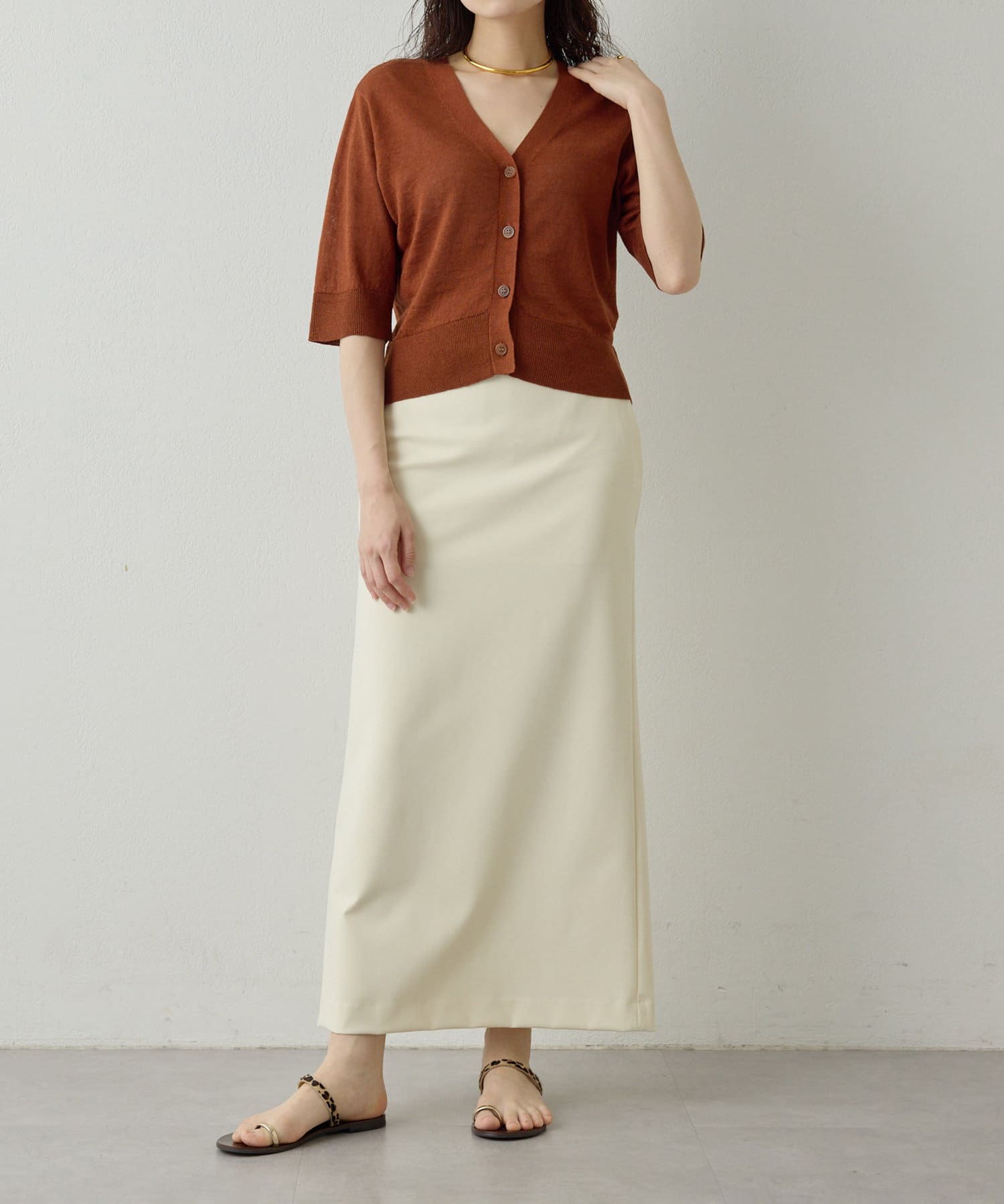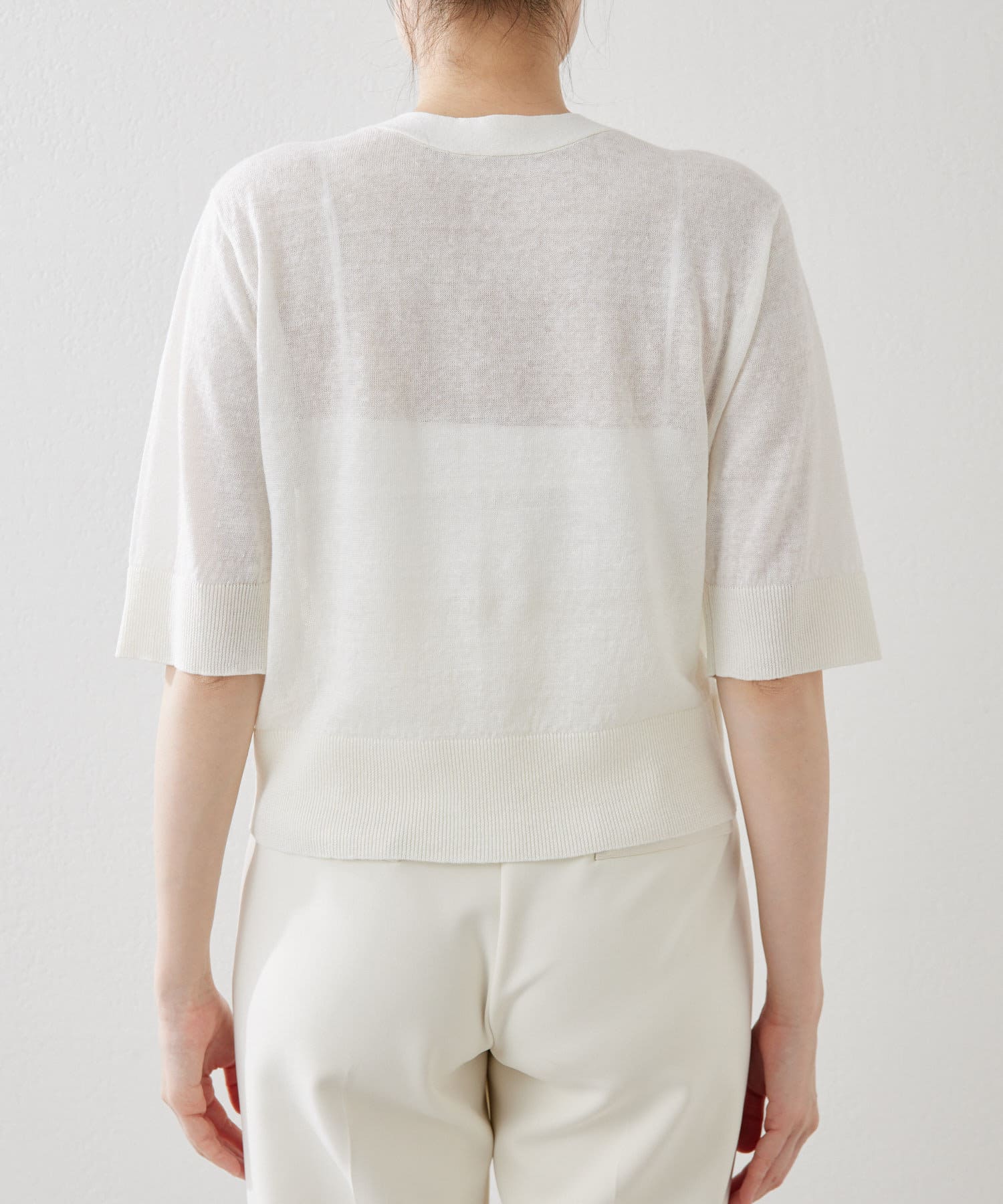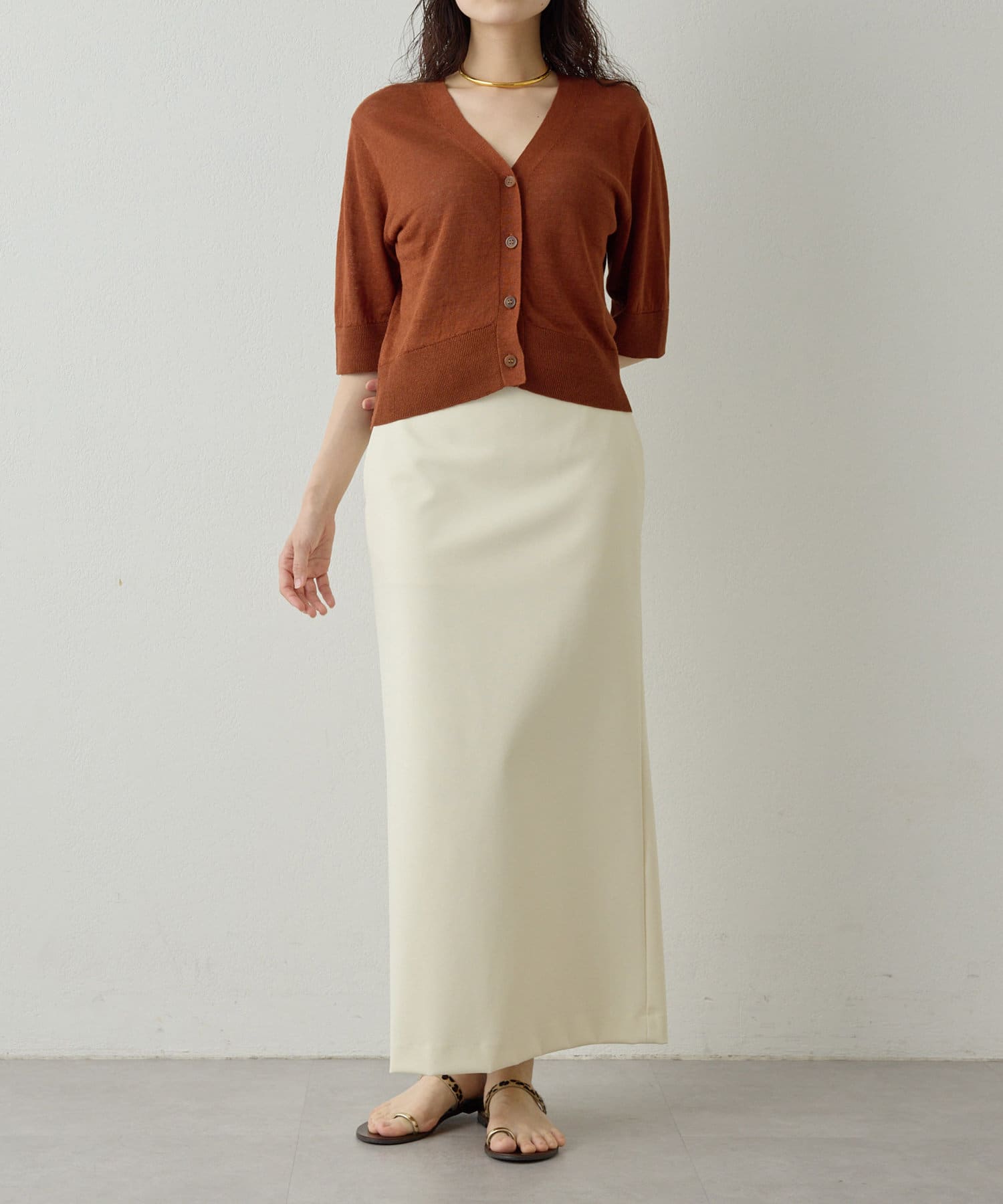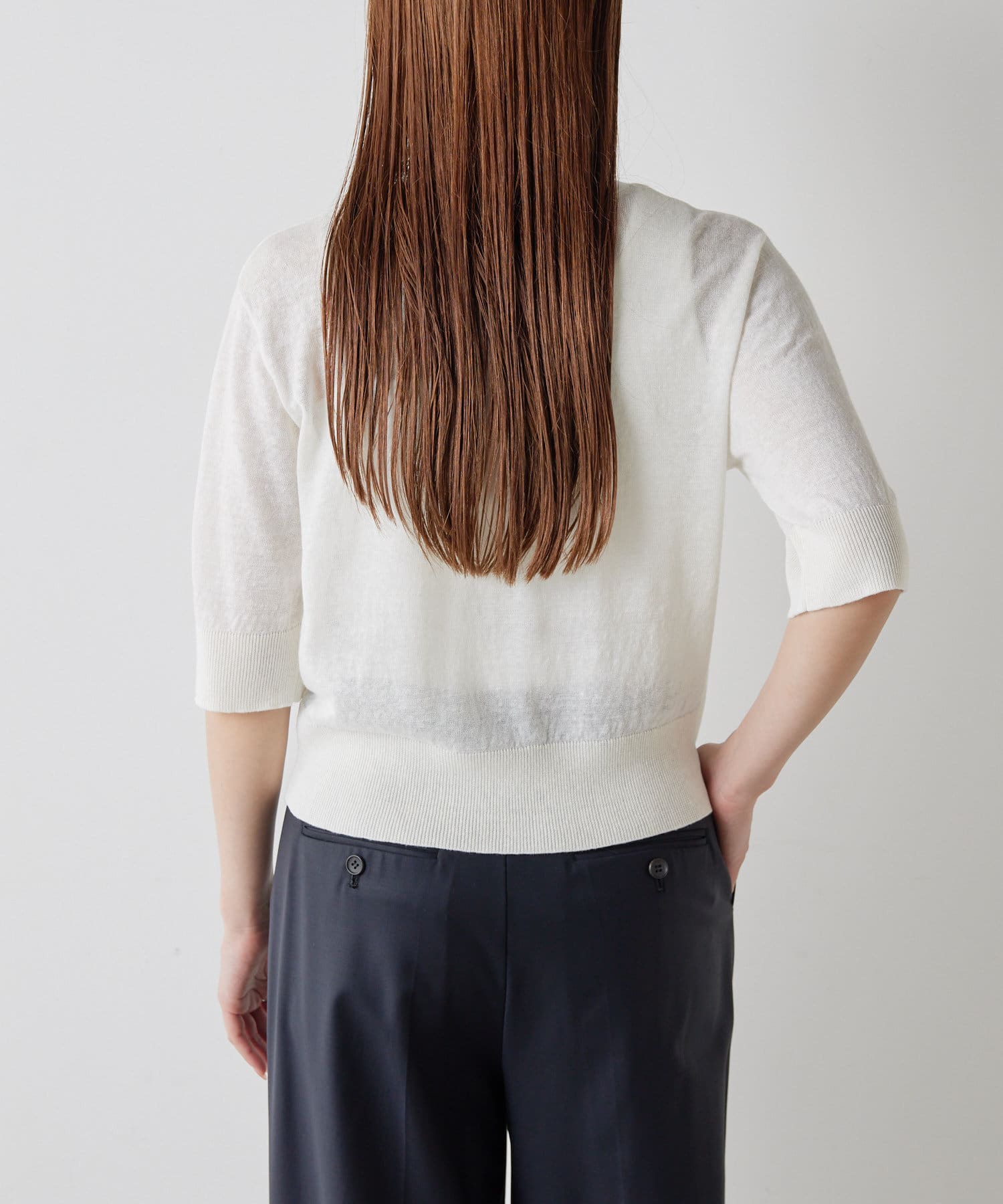 すっきりと爽やかに楽しめる、コンパクトなリネンカーデ