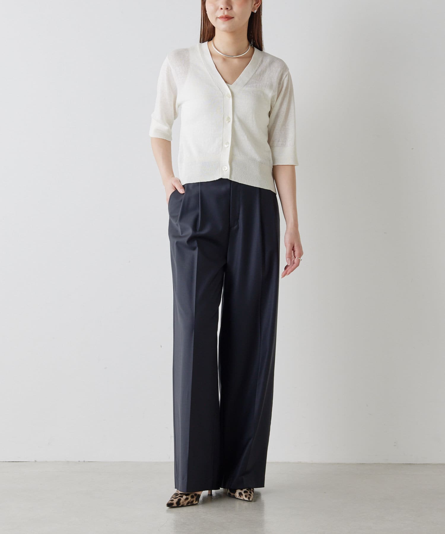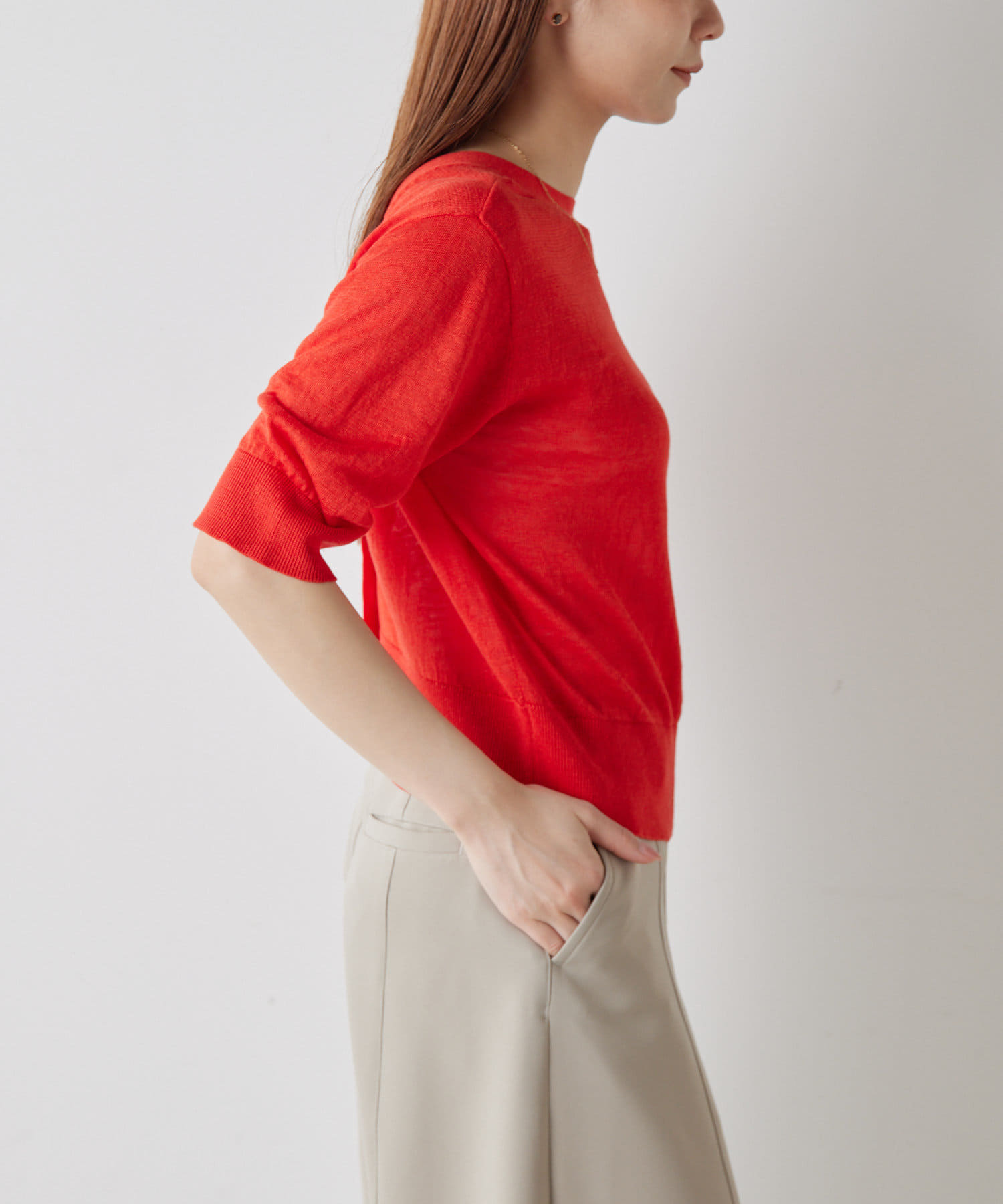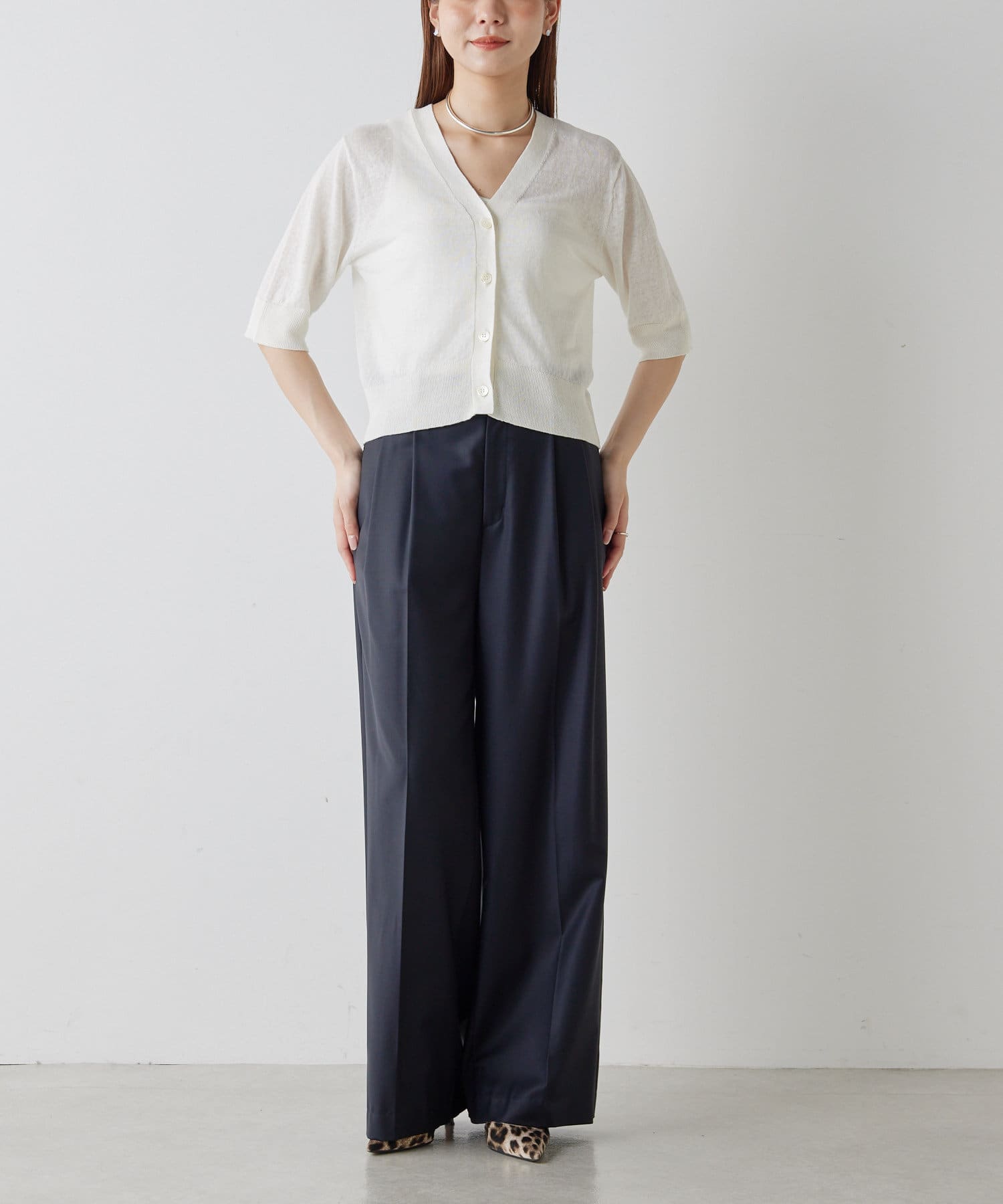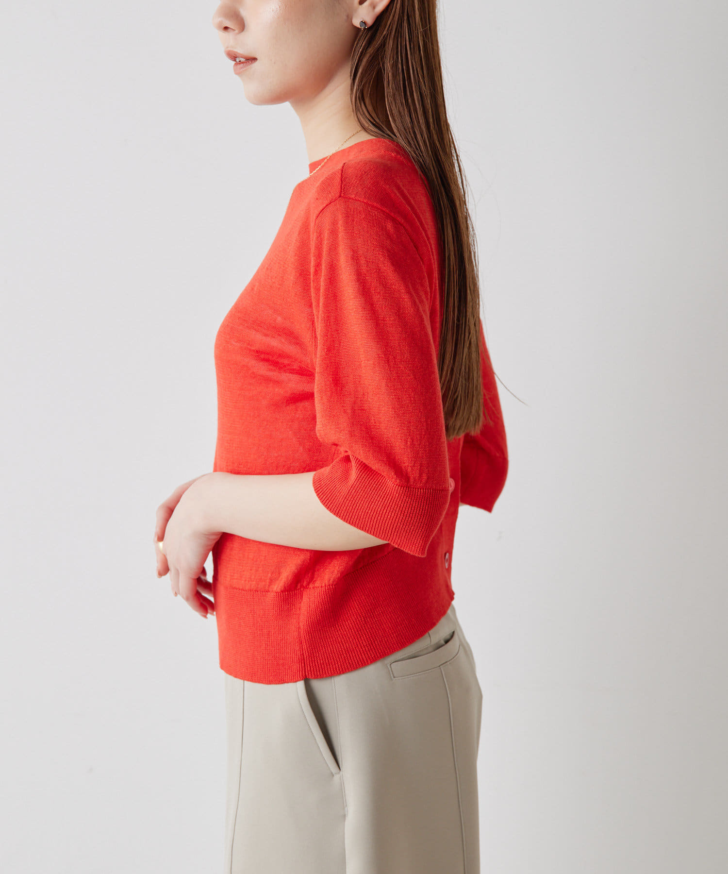 すっきりと爽やかに楽しめる、コンパクトなリネンカーデ