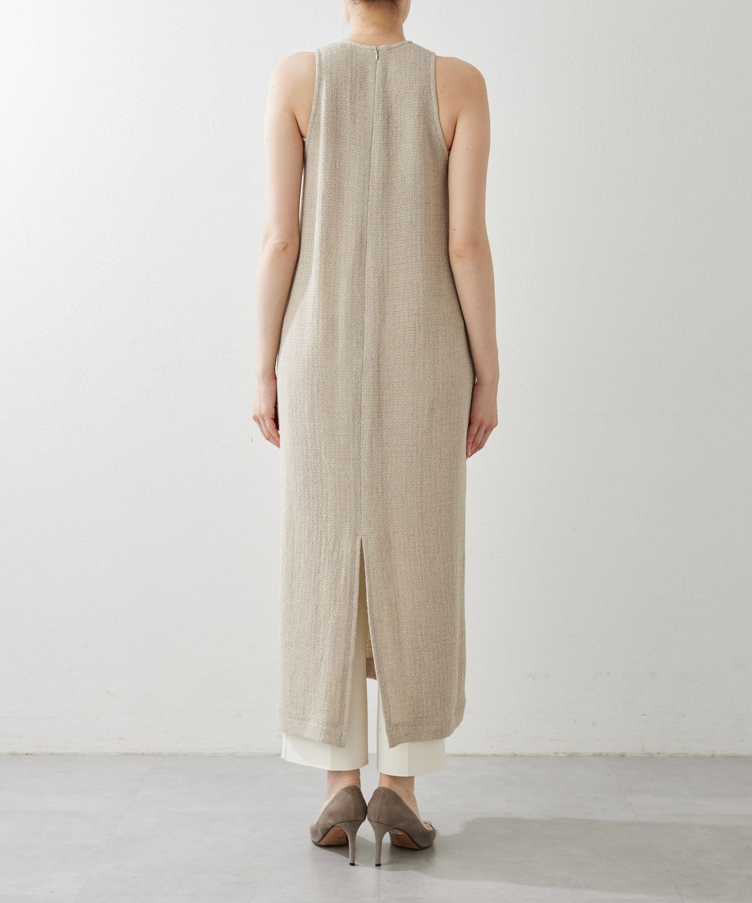 ■通気性のあるメッシュ素材を使用したノースリーブワンピース。