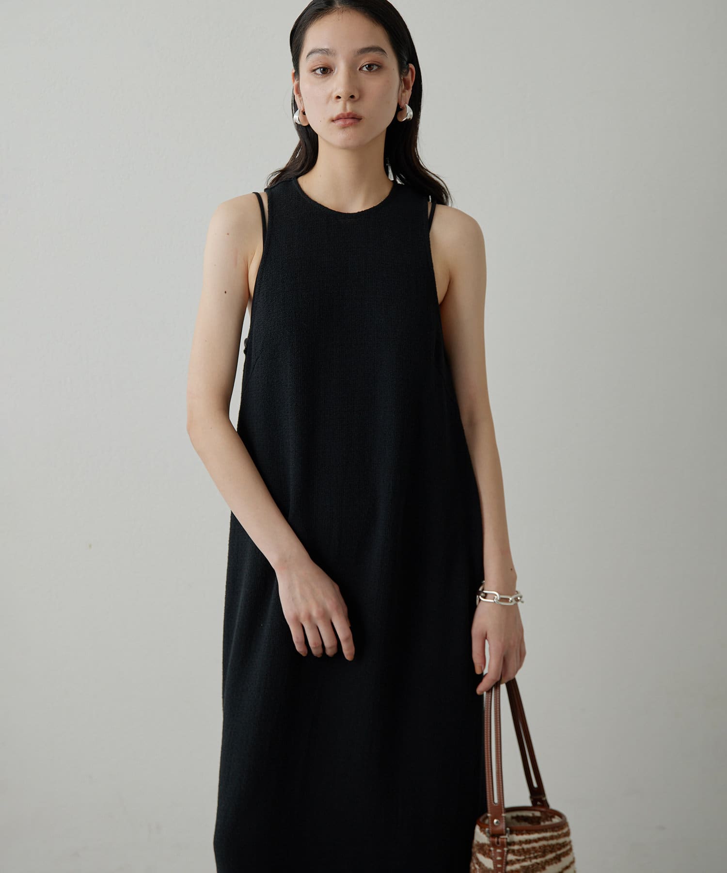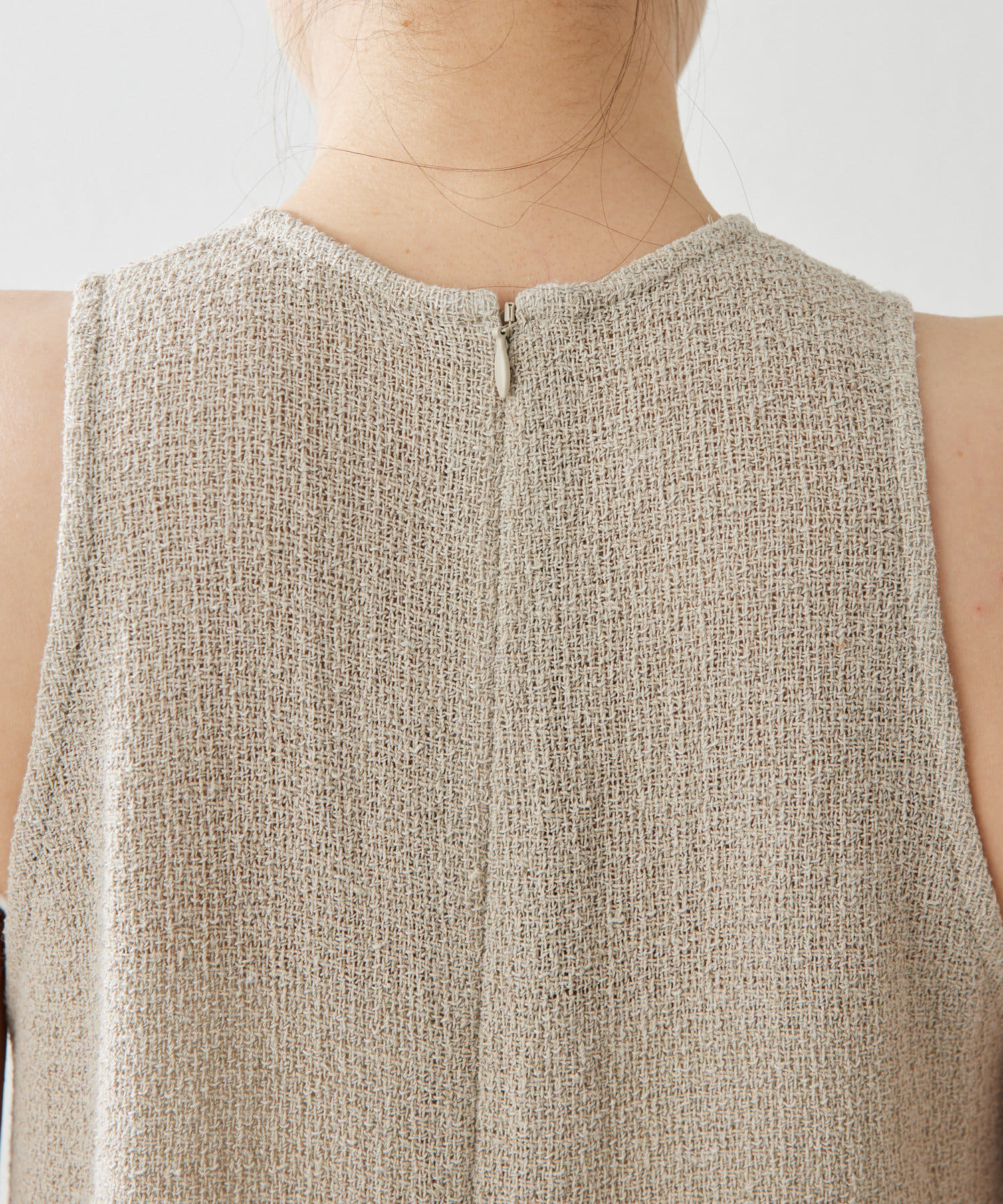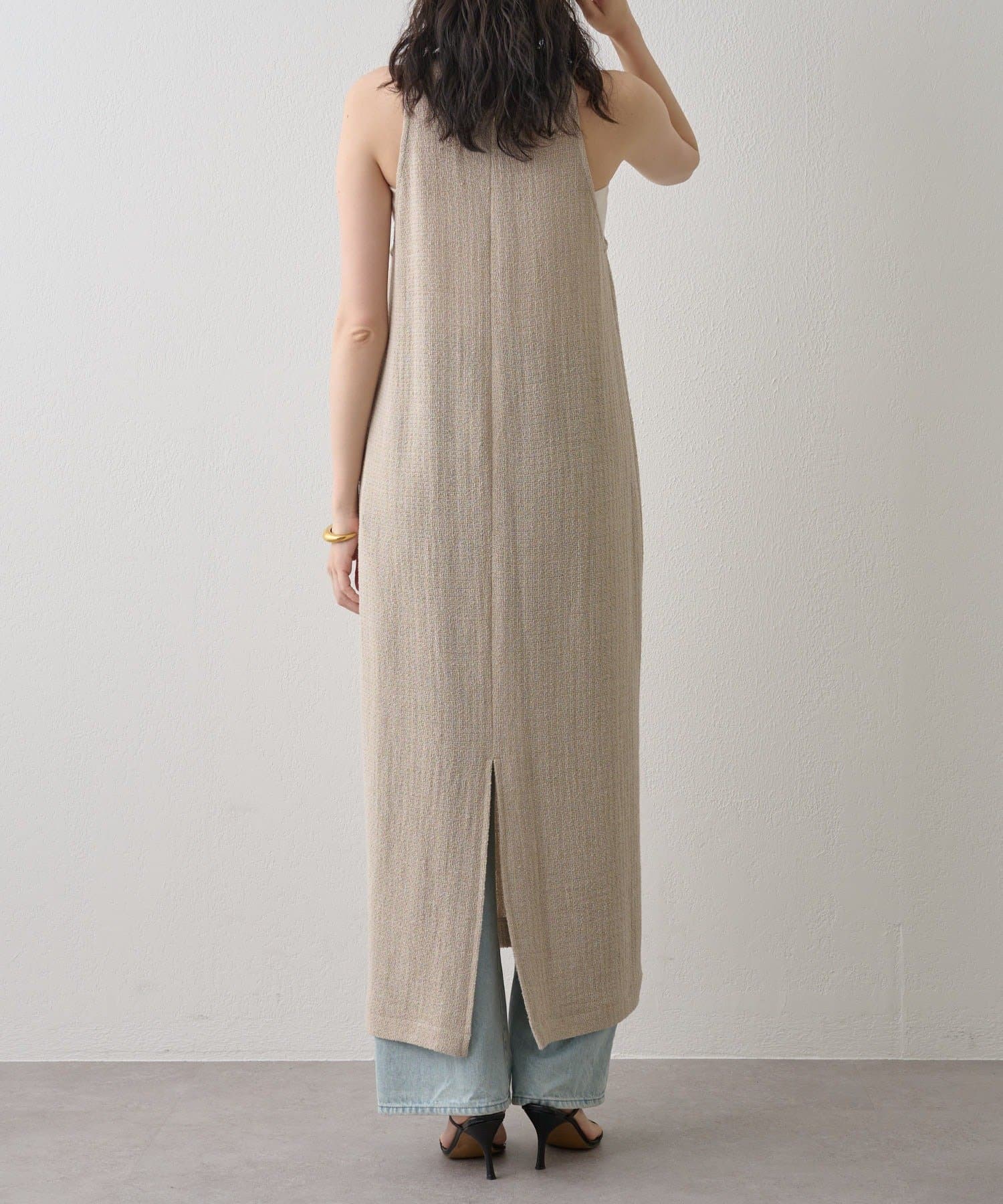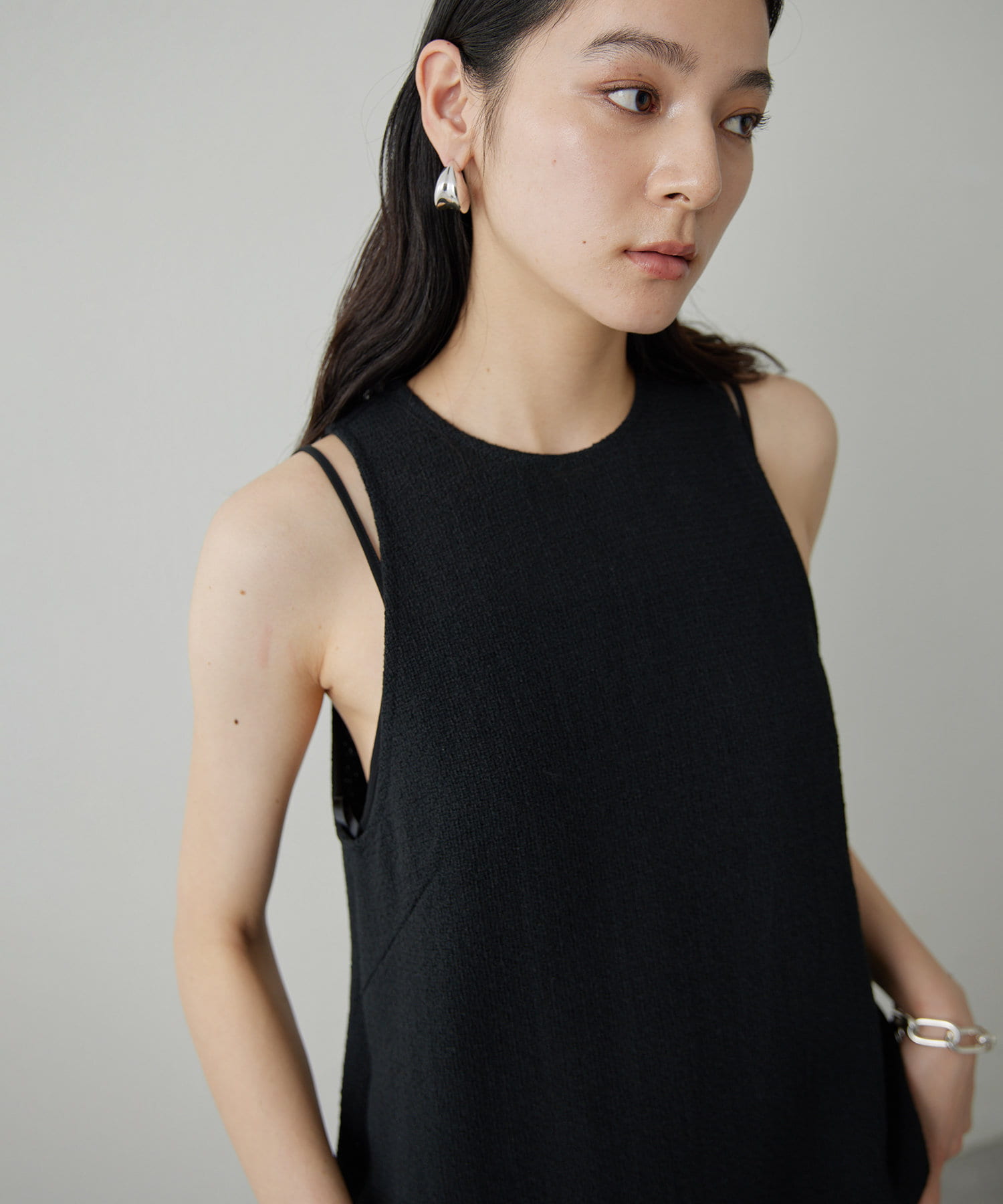 ■肩幅が小さめなタンク型ながら、程よいアームホールラインでヘルシーな仕上がりに。
