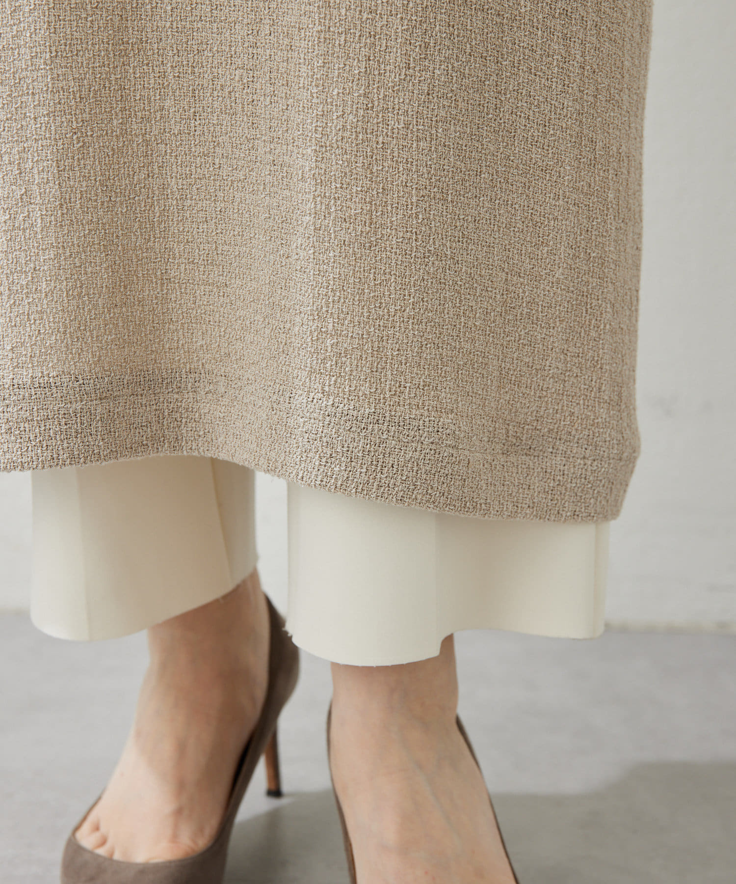 ■ペチコートなどを合わせれば一枚でドレスとしても着用でき、スタイリングの幅を楽しめるアイテム。