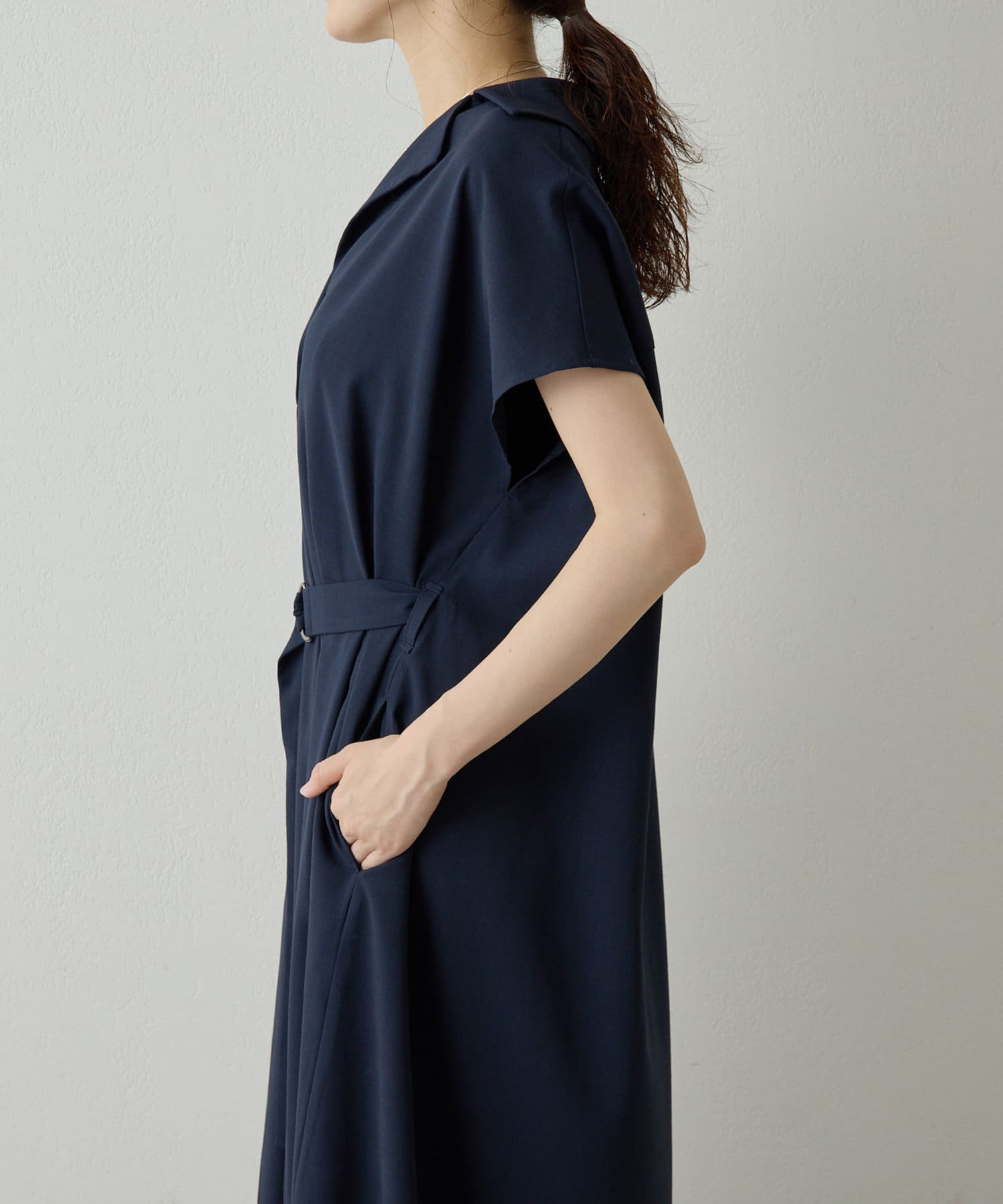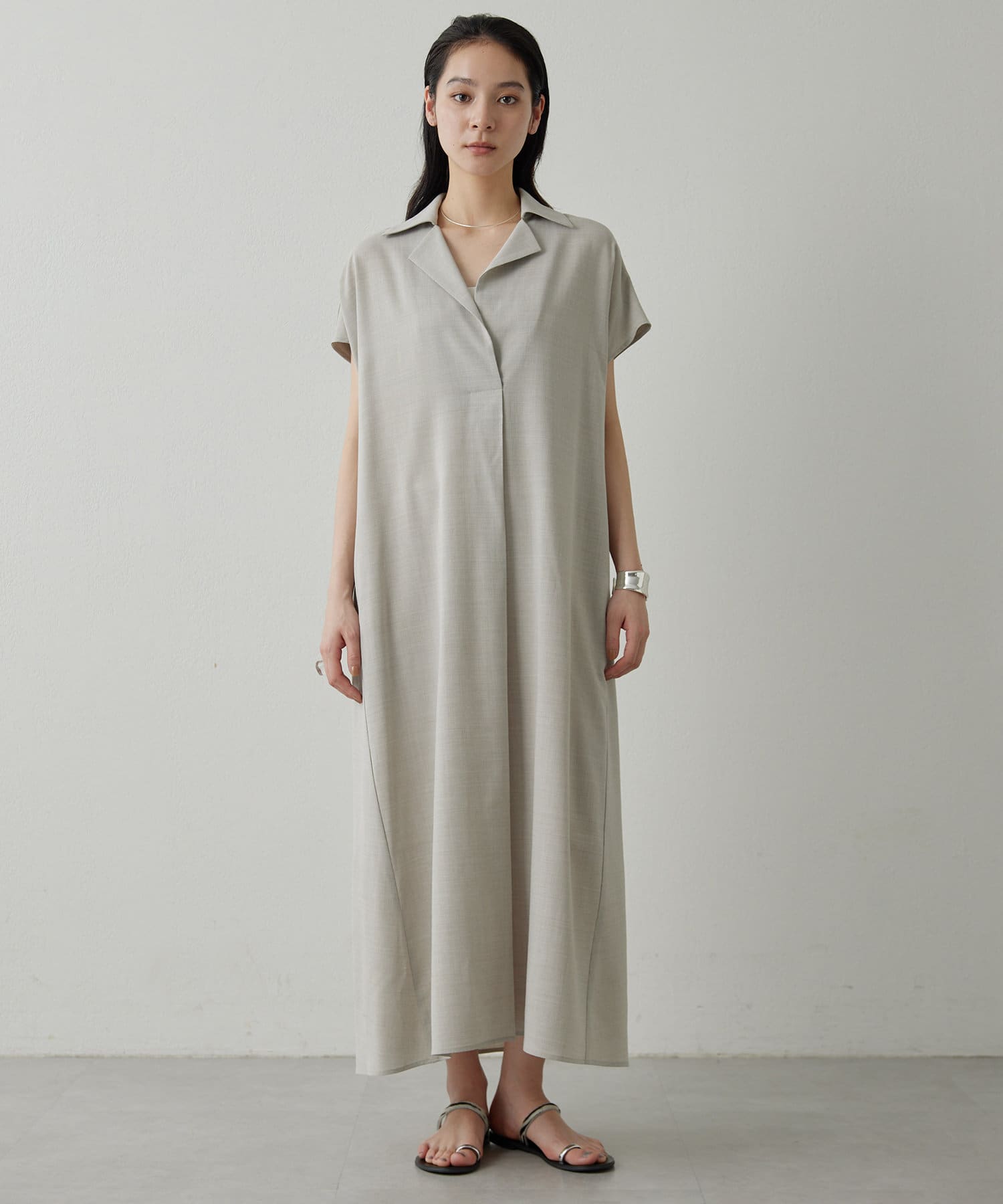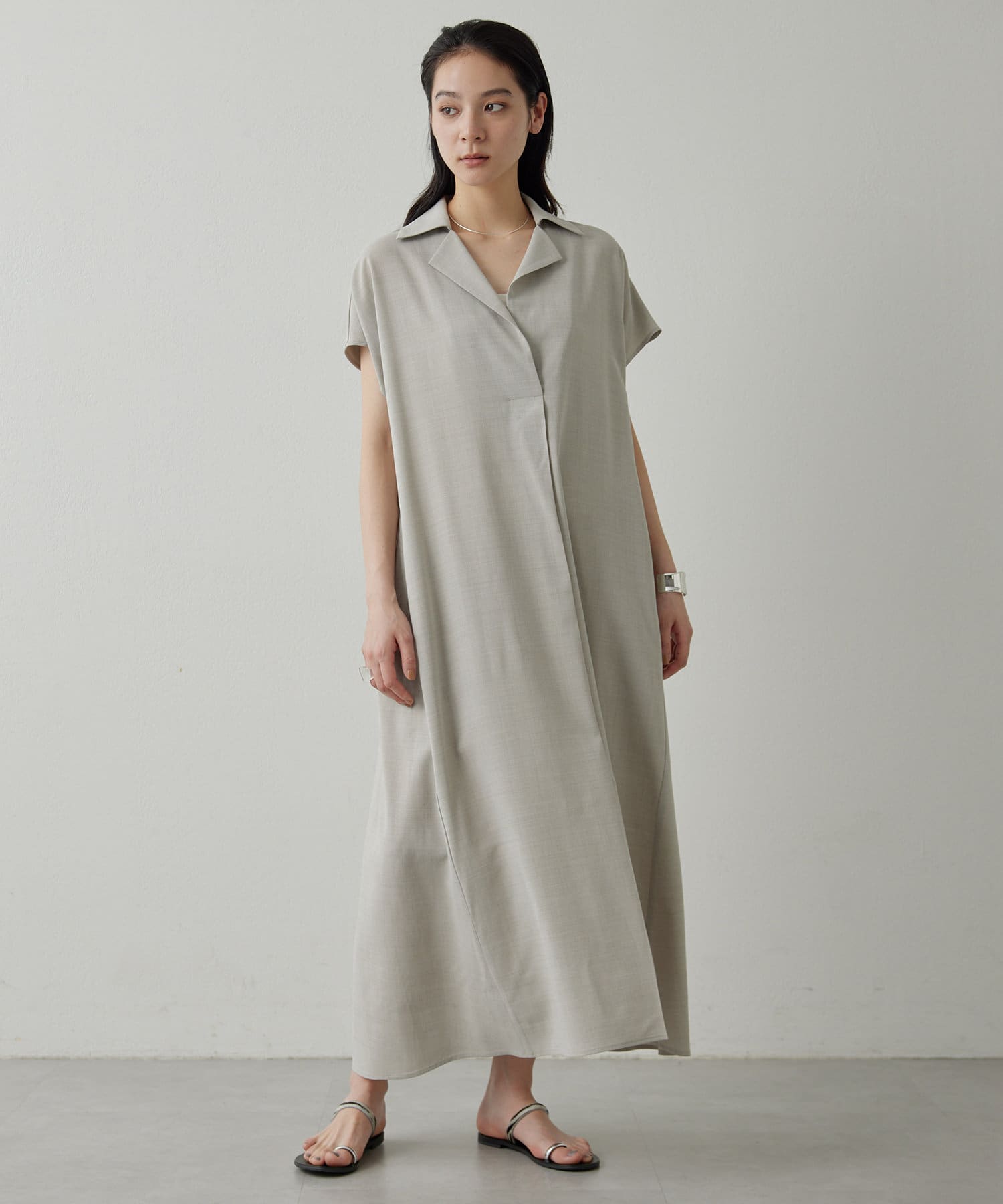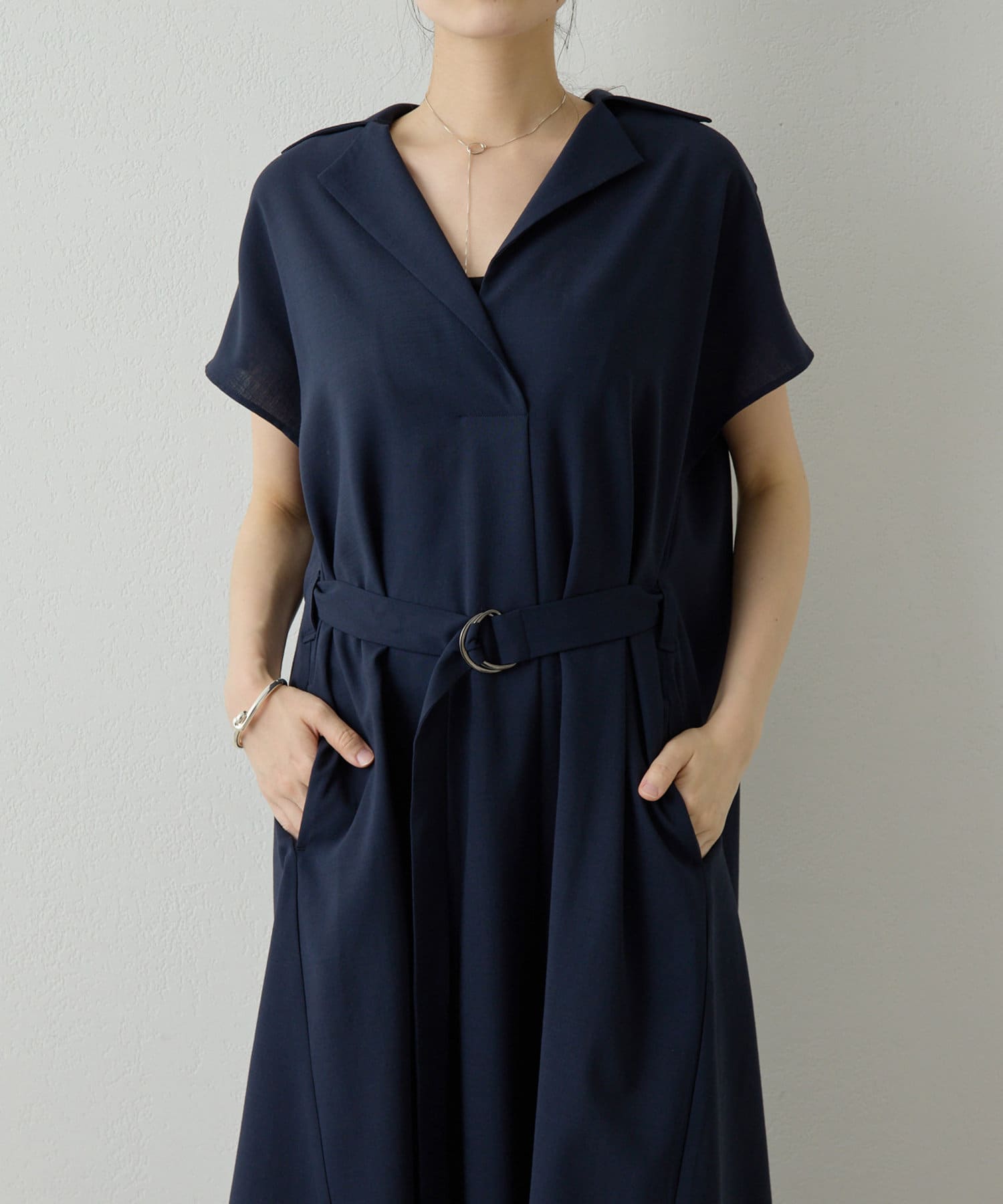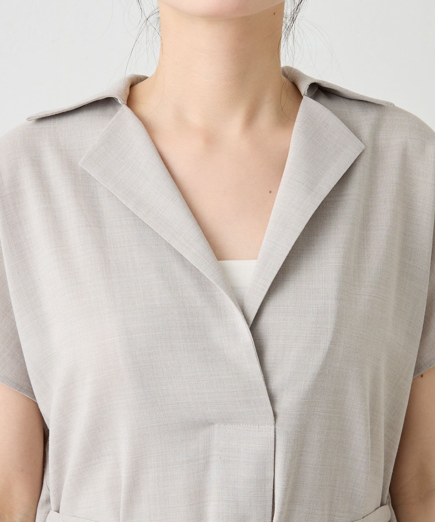■スキッパーデザインが抜け感のある半袖シャツワンピース。