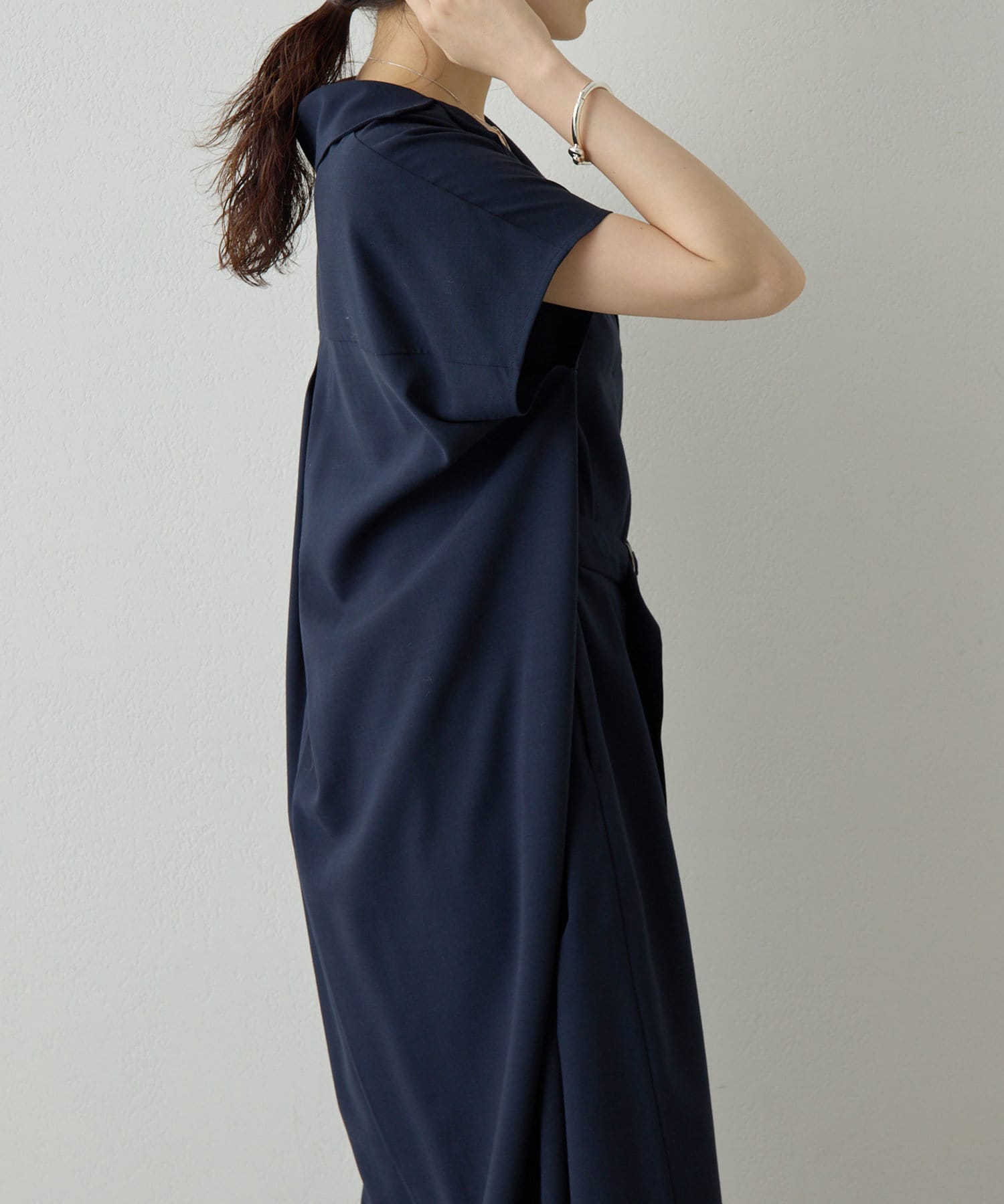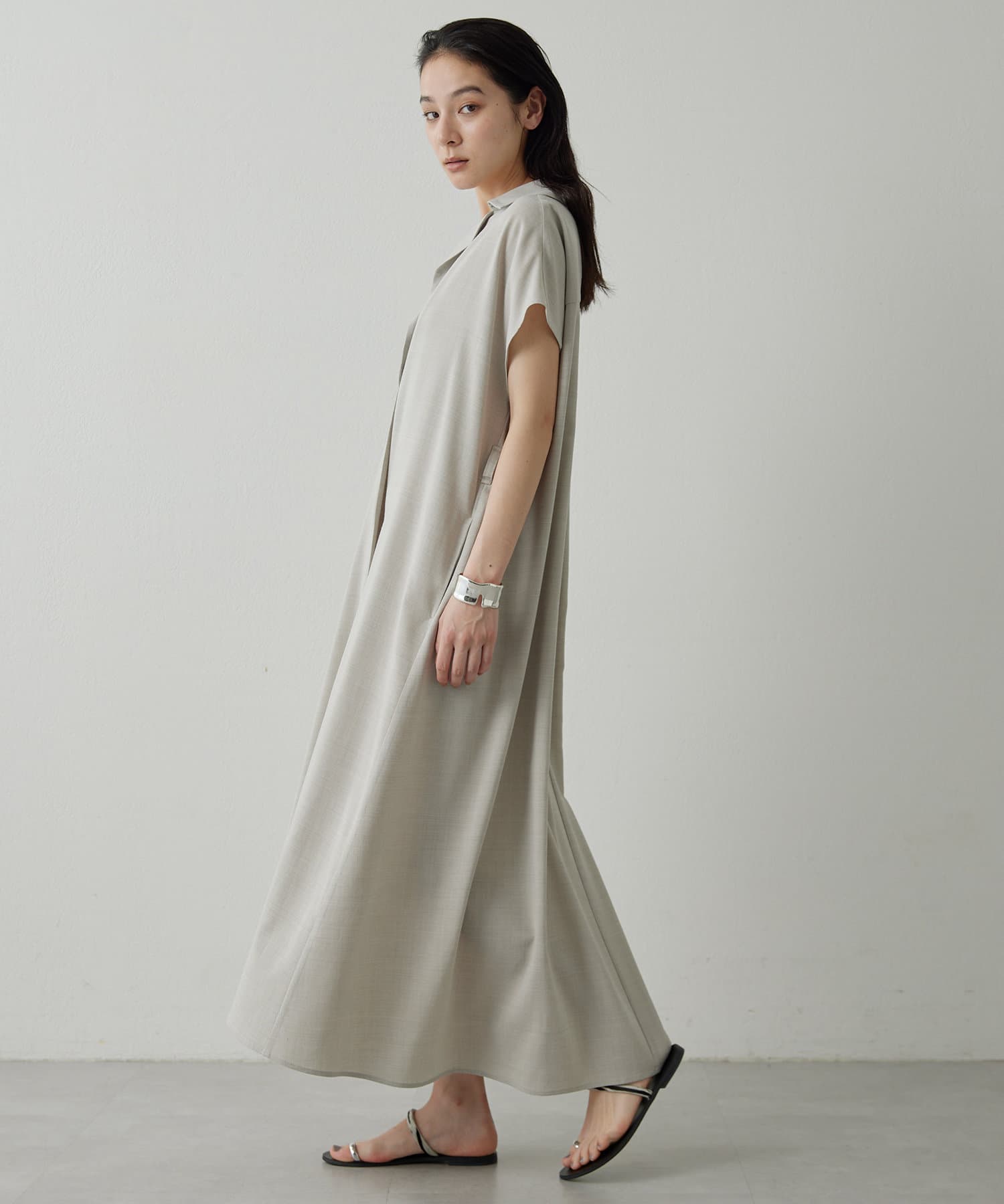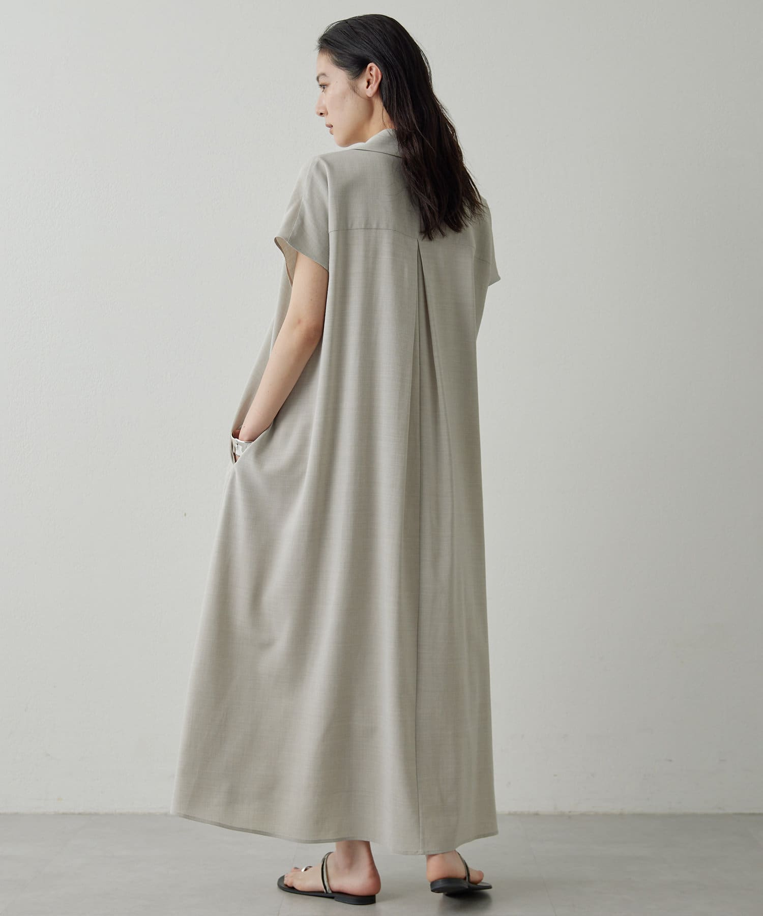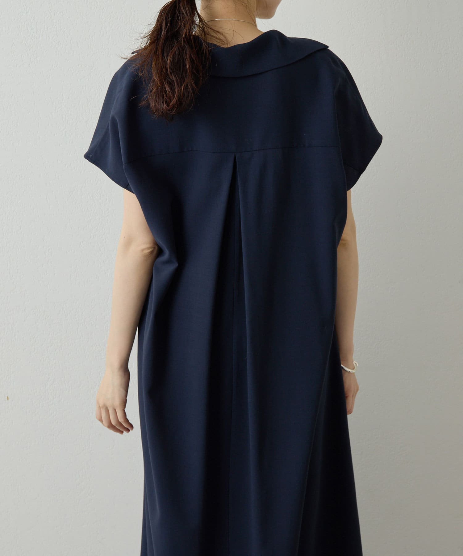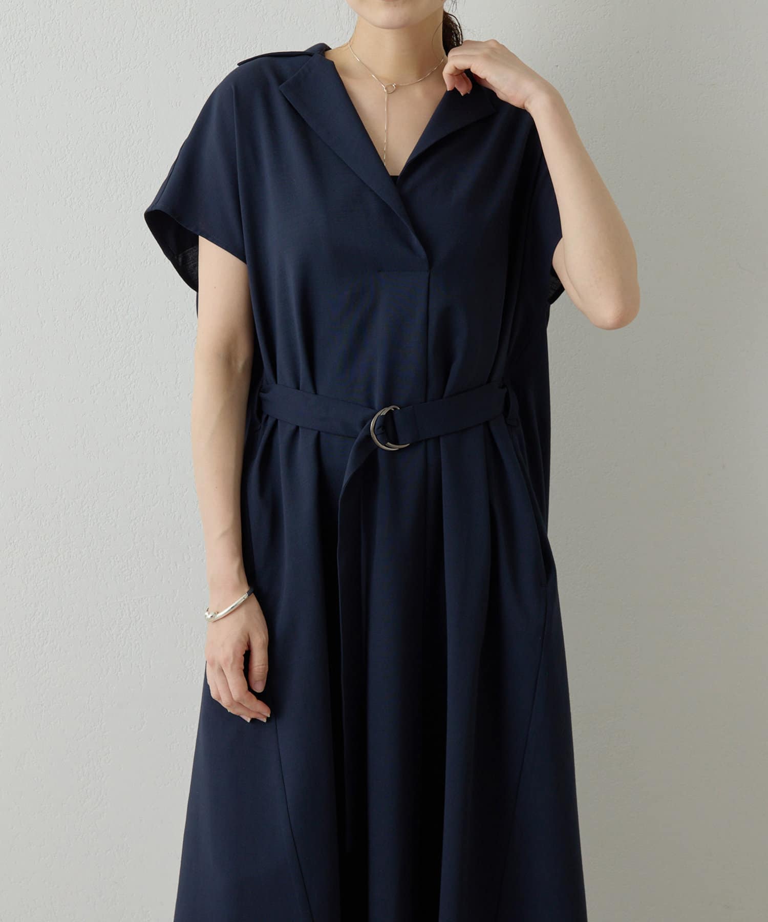 ■スキッパーデザインが抜け感のある半袖シャツワンピース。