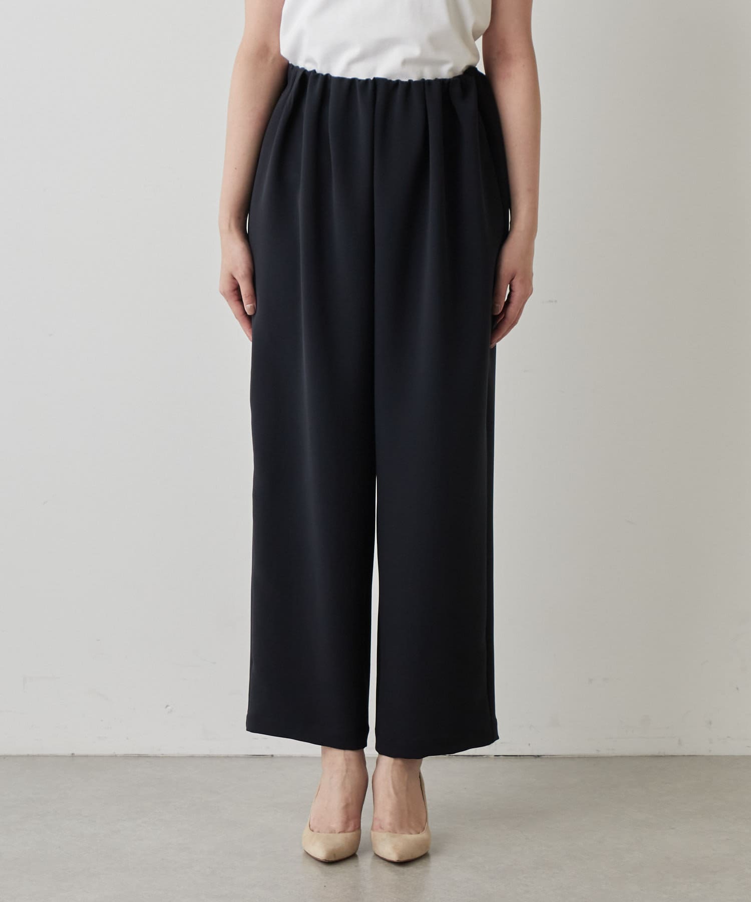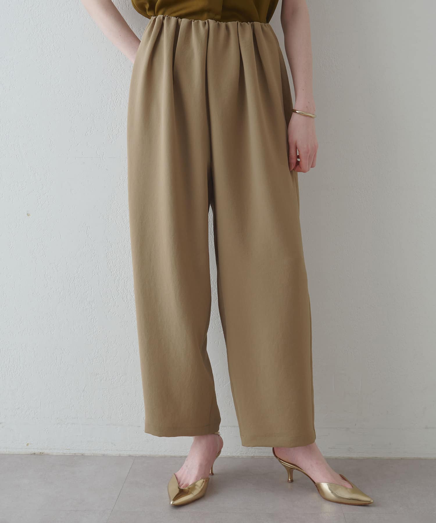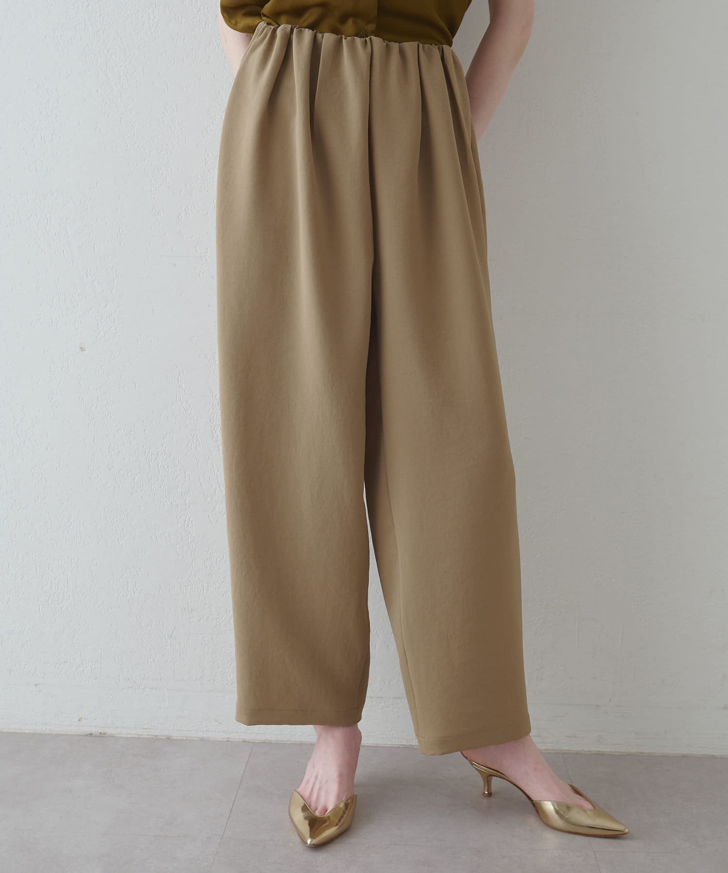 ■ギャザーとタックを入れたウエストがポイントになるワイドパンツ。