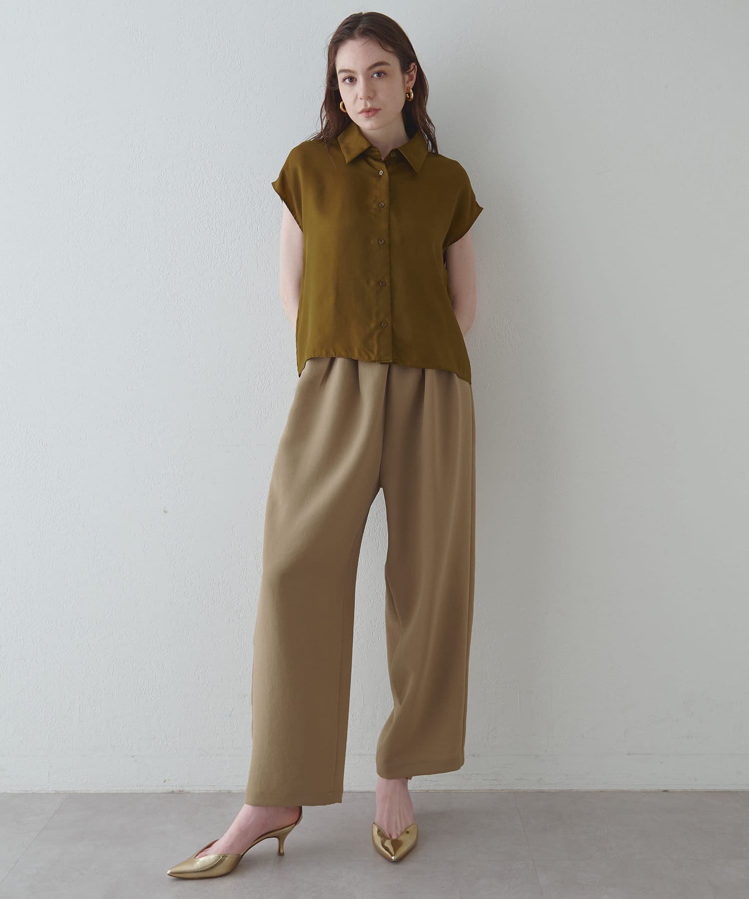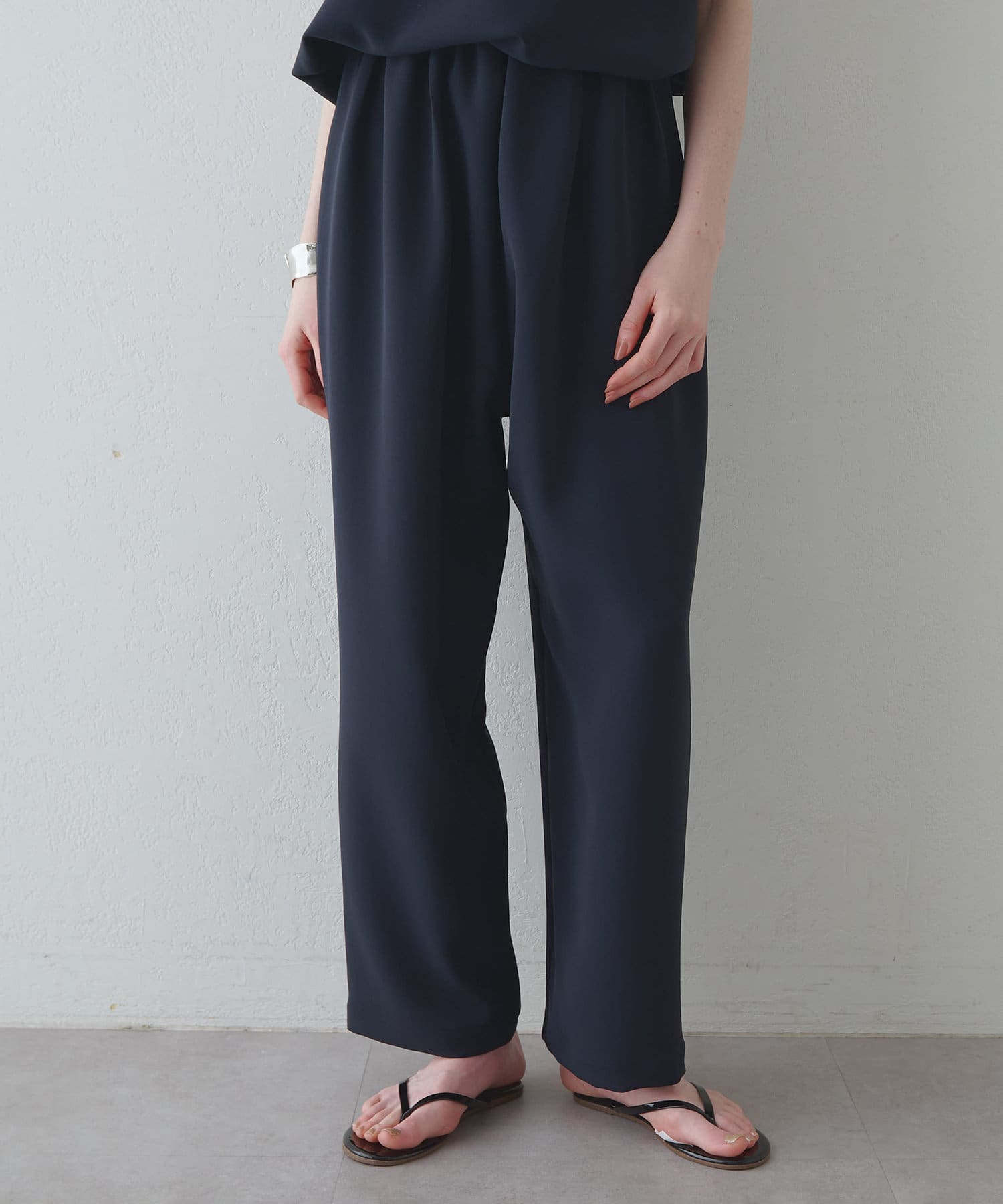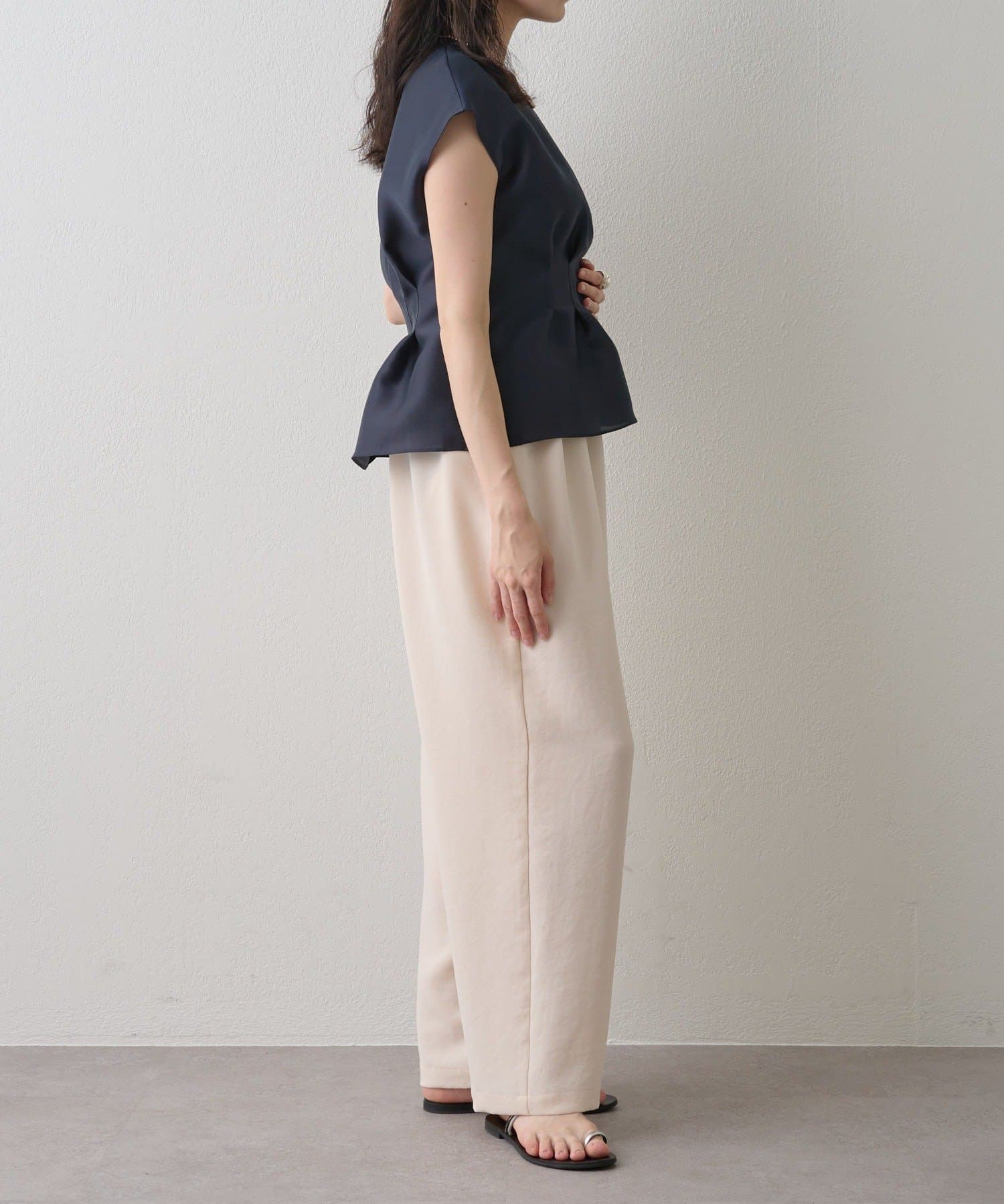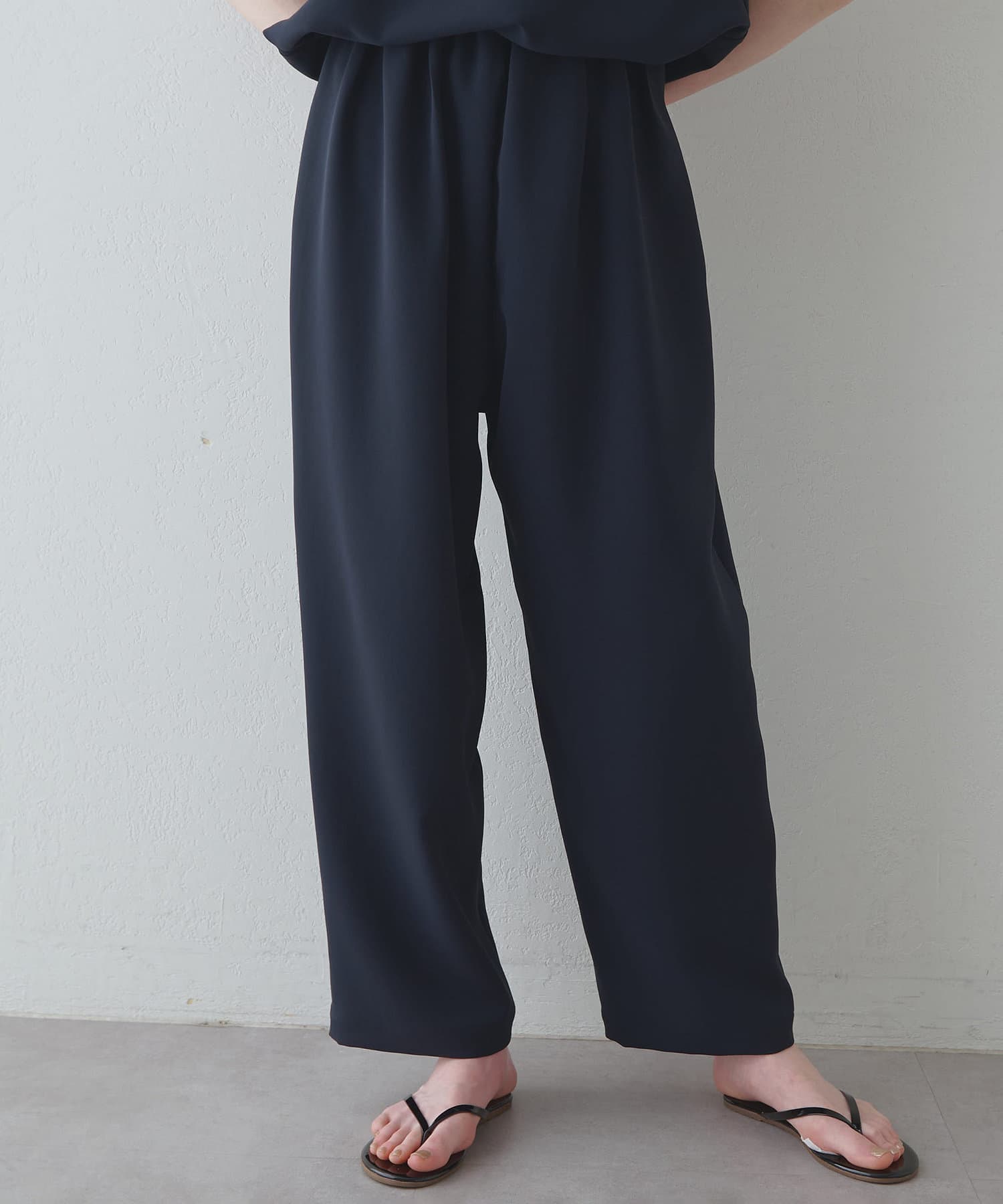 ■ギャザーとタックを入れたウエストがポイントになるワイドパンツ。