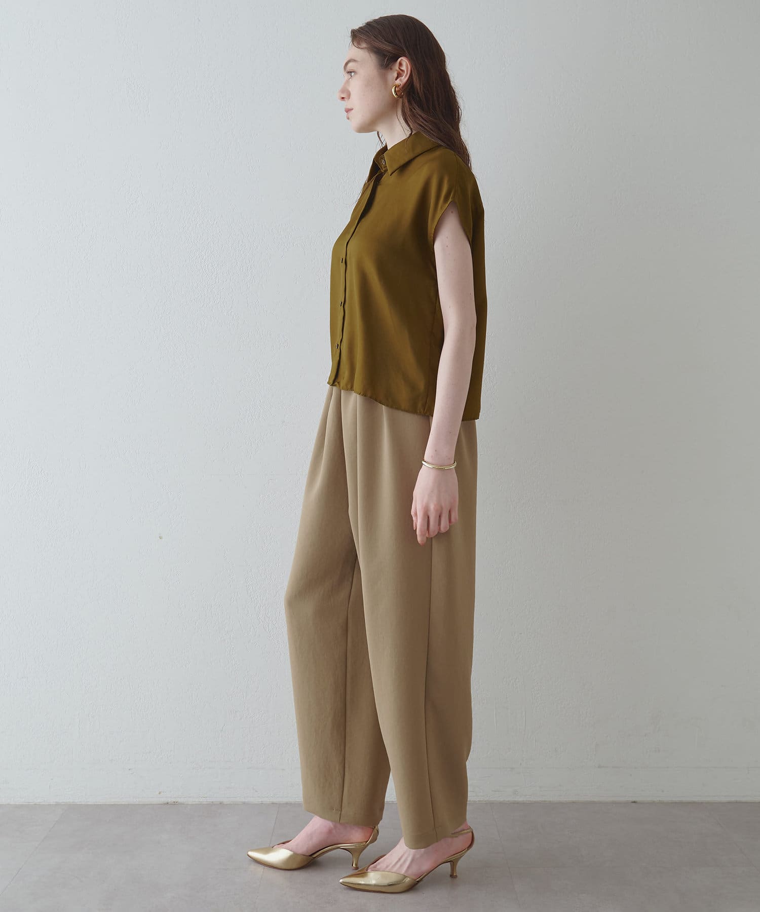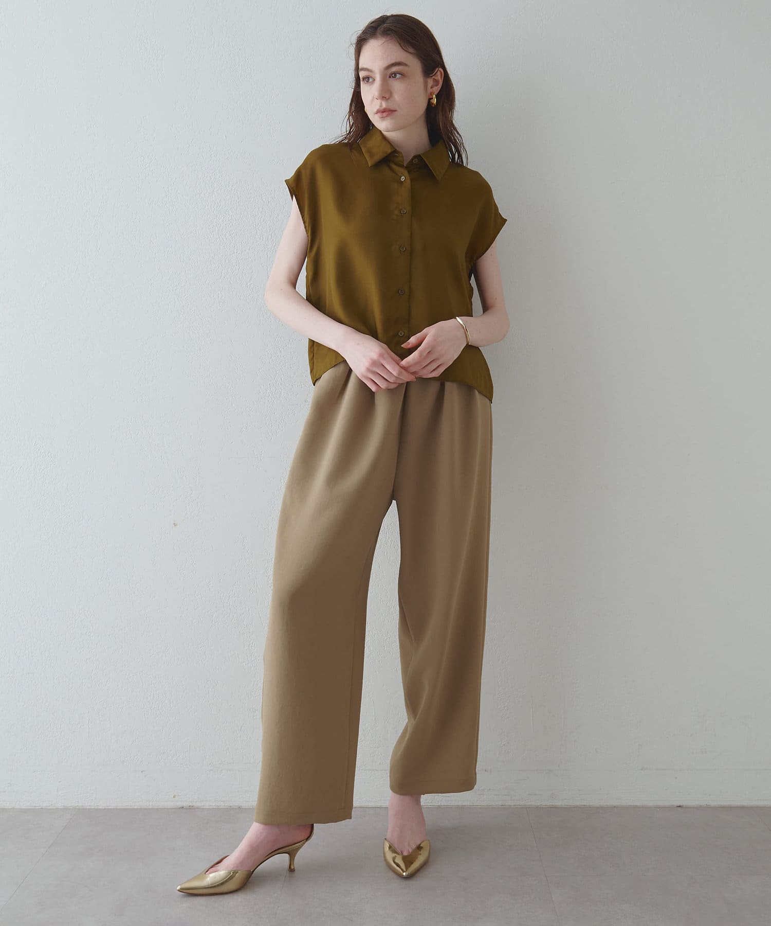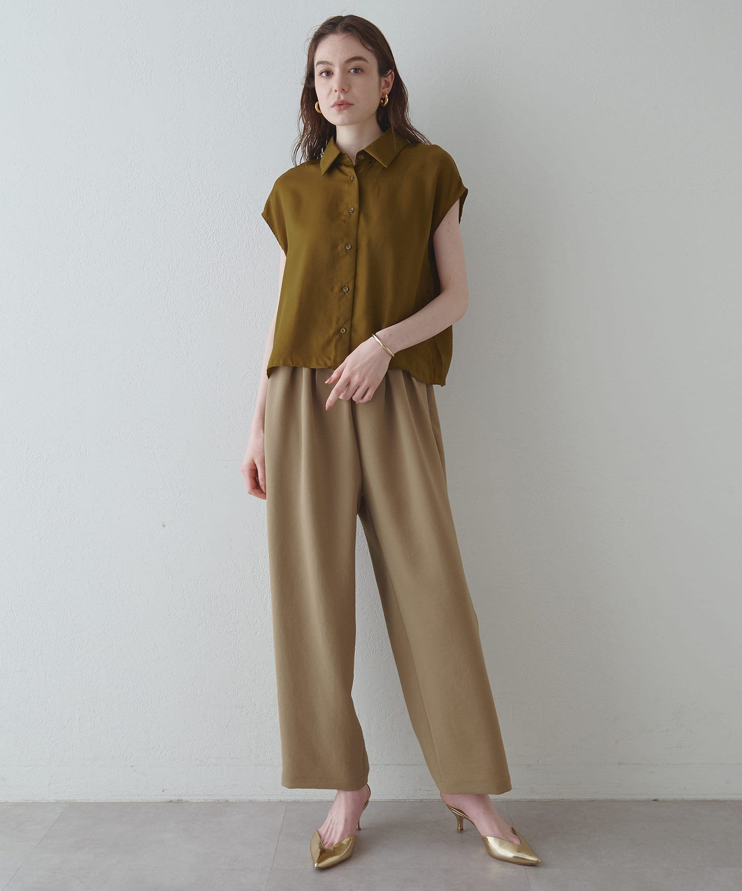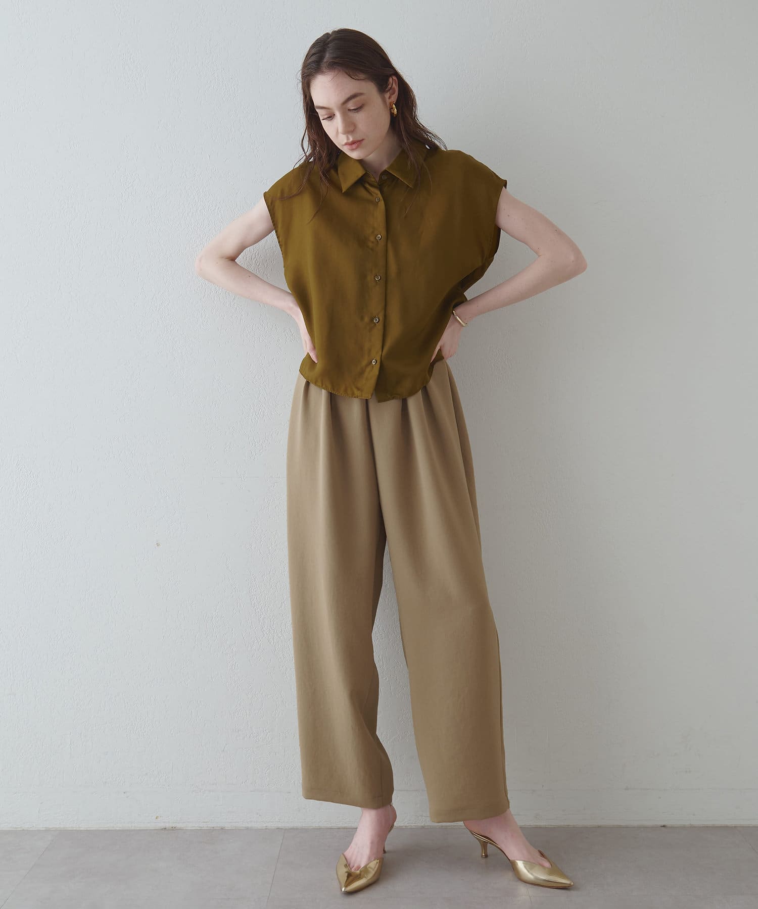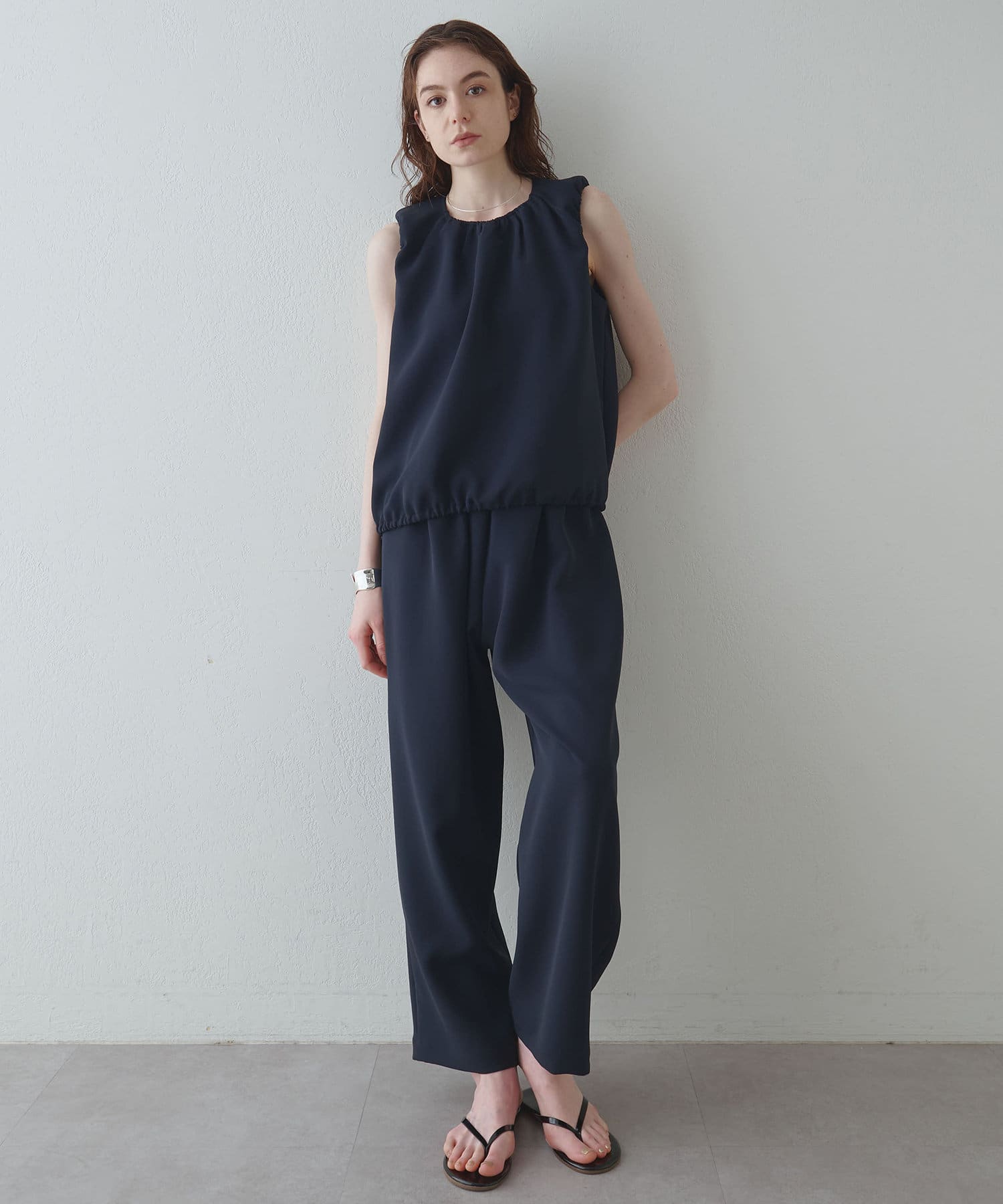 ■同素材のギャザーノースリーブブラウス(ブランド品番:DNZ1051604A0002)とのセットアップもおすすめ。