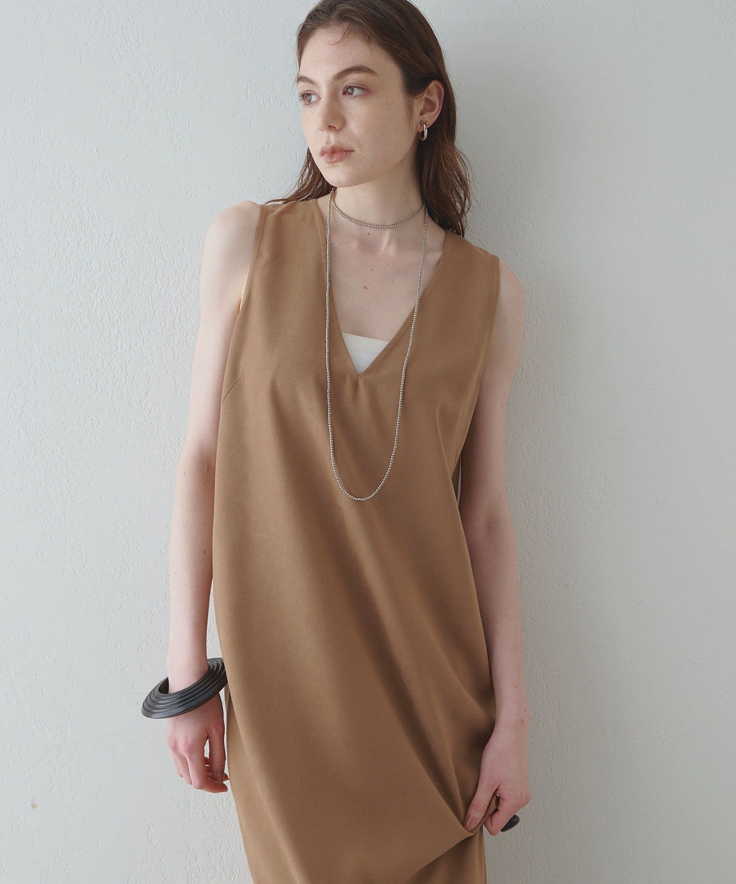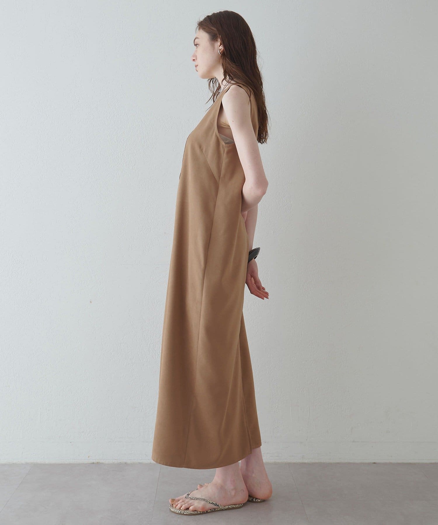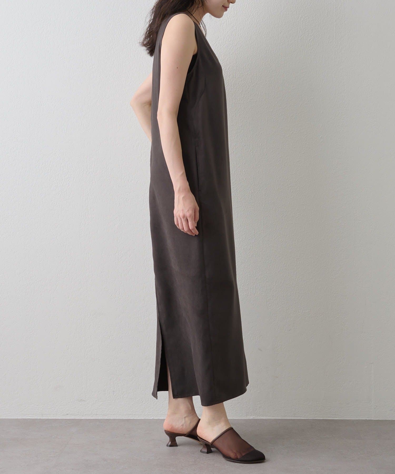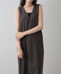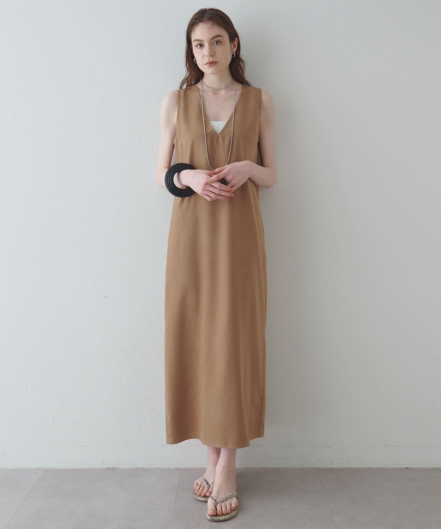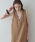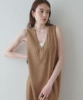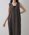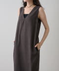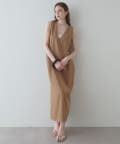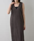 ■深めのVネック開きが特徴的なノースリーブワンピース。
