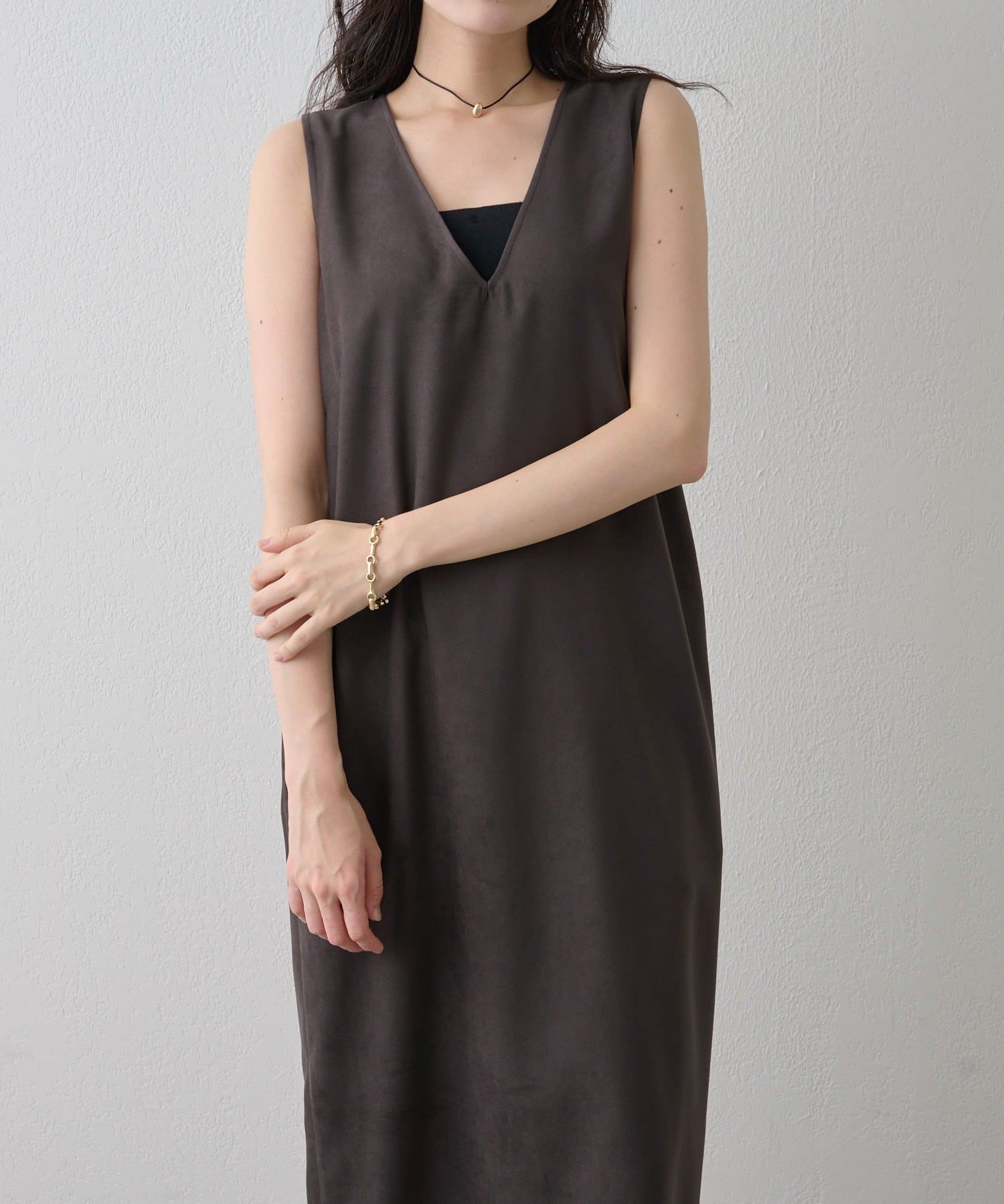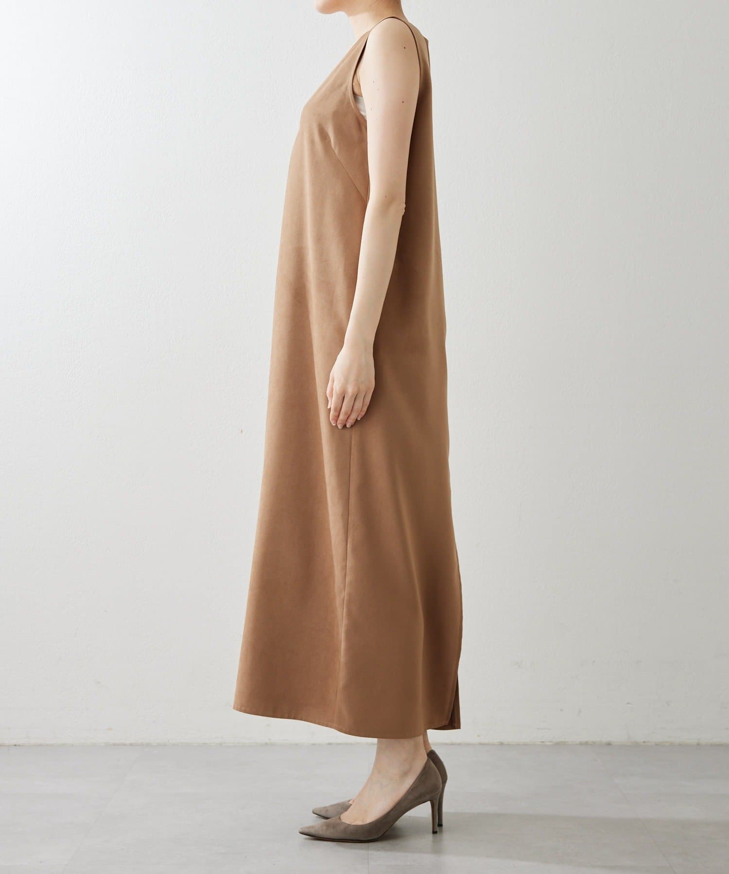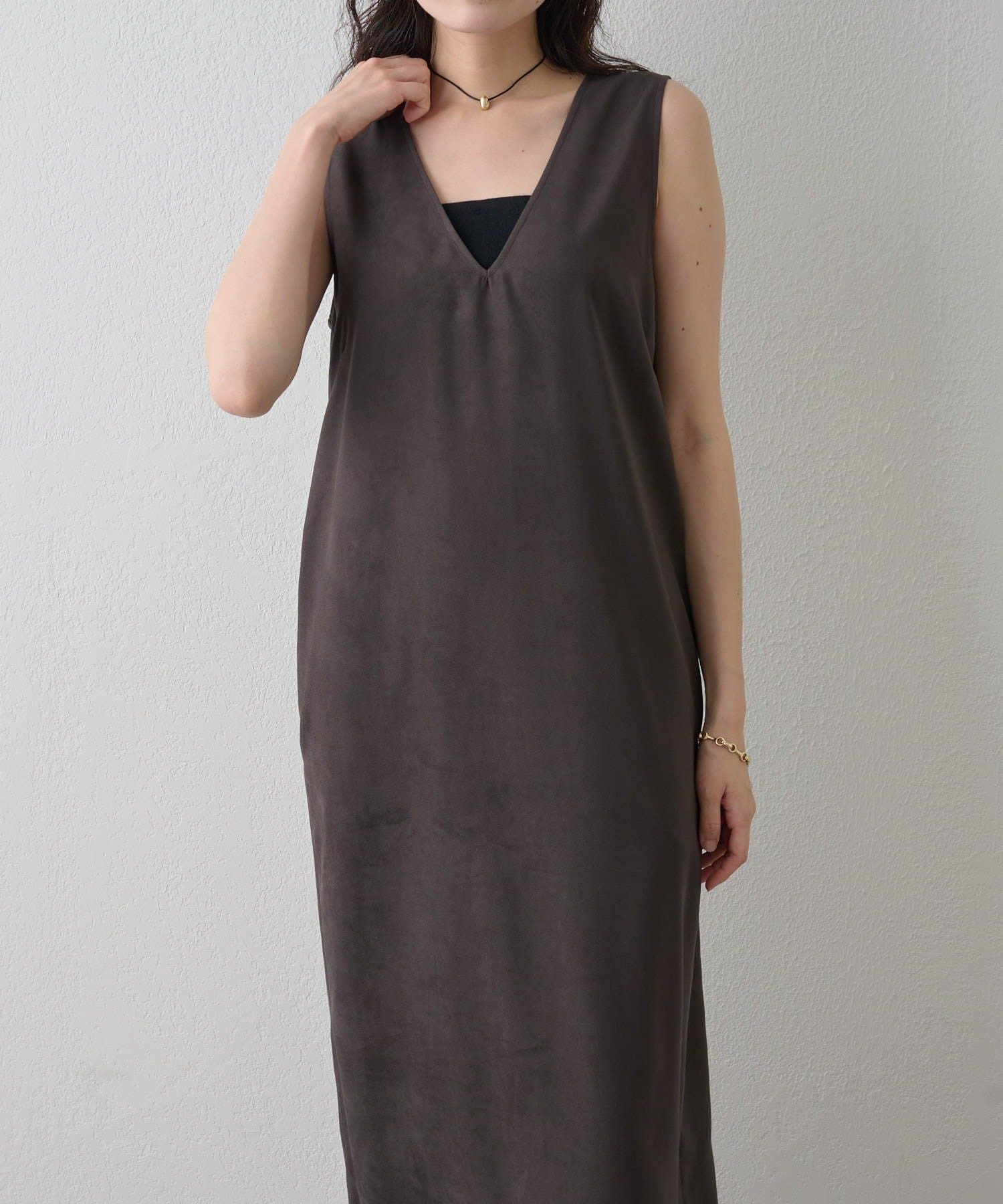 フェイクスエード深Vネックワンピース