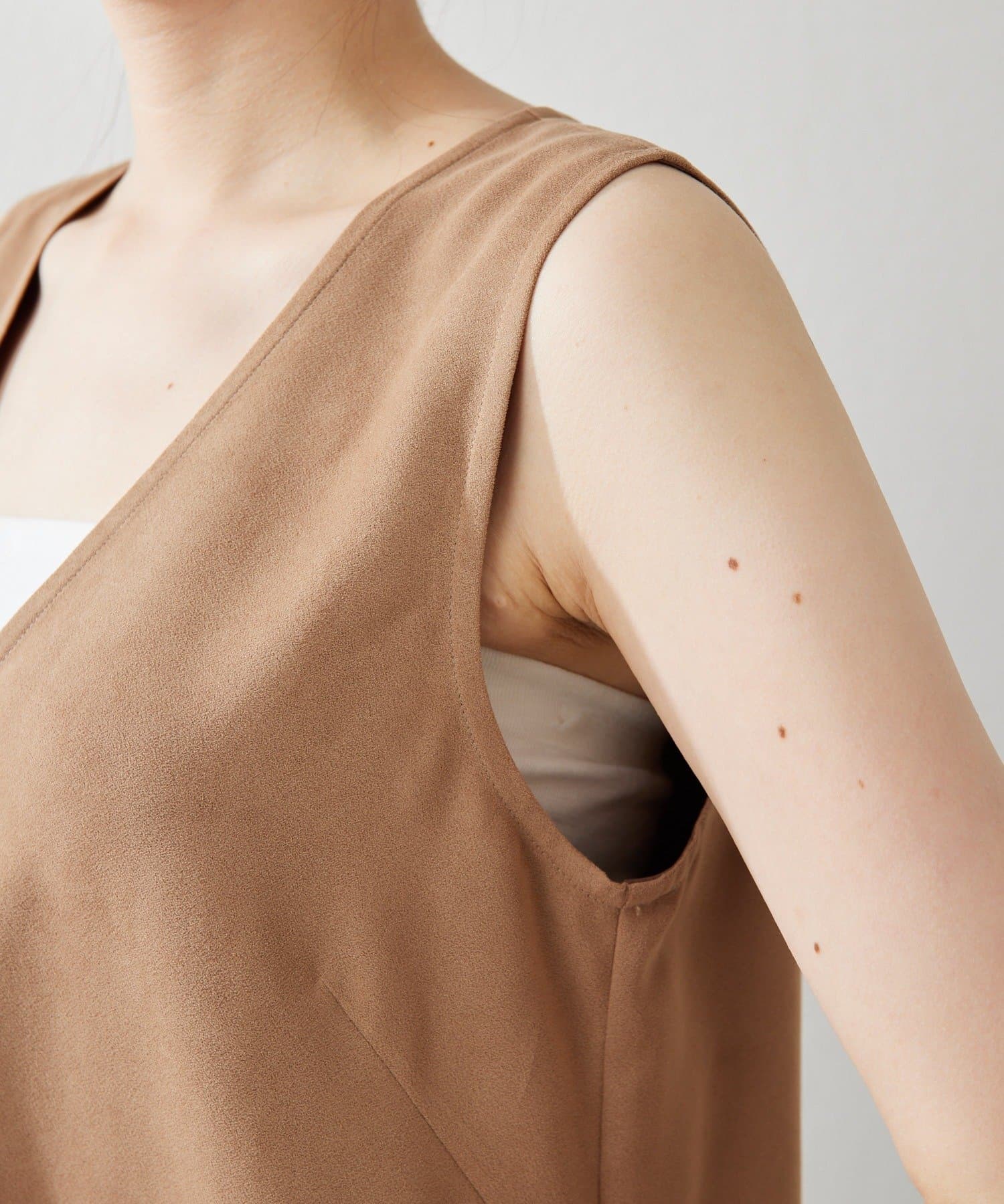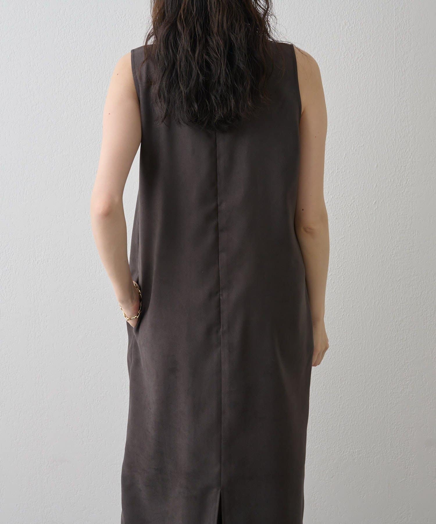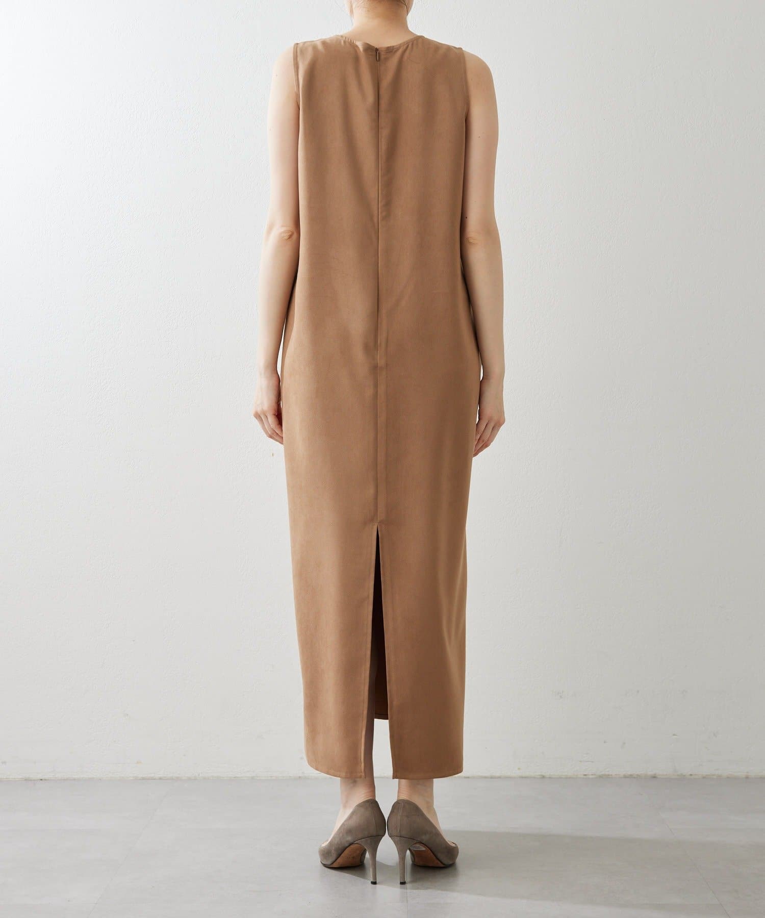 フェイクスエード深Vネックワンピース