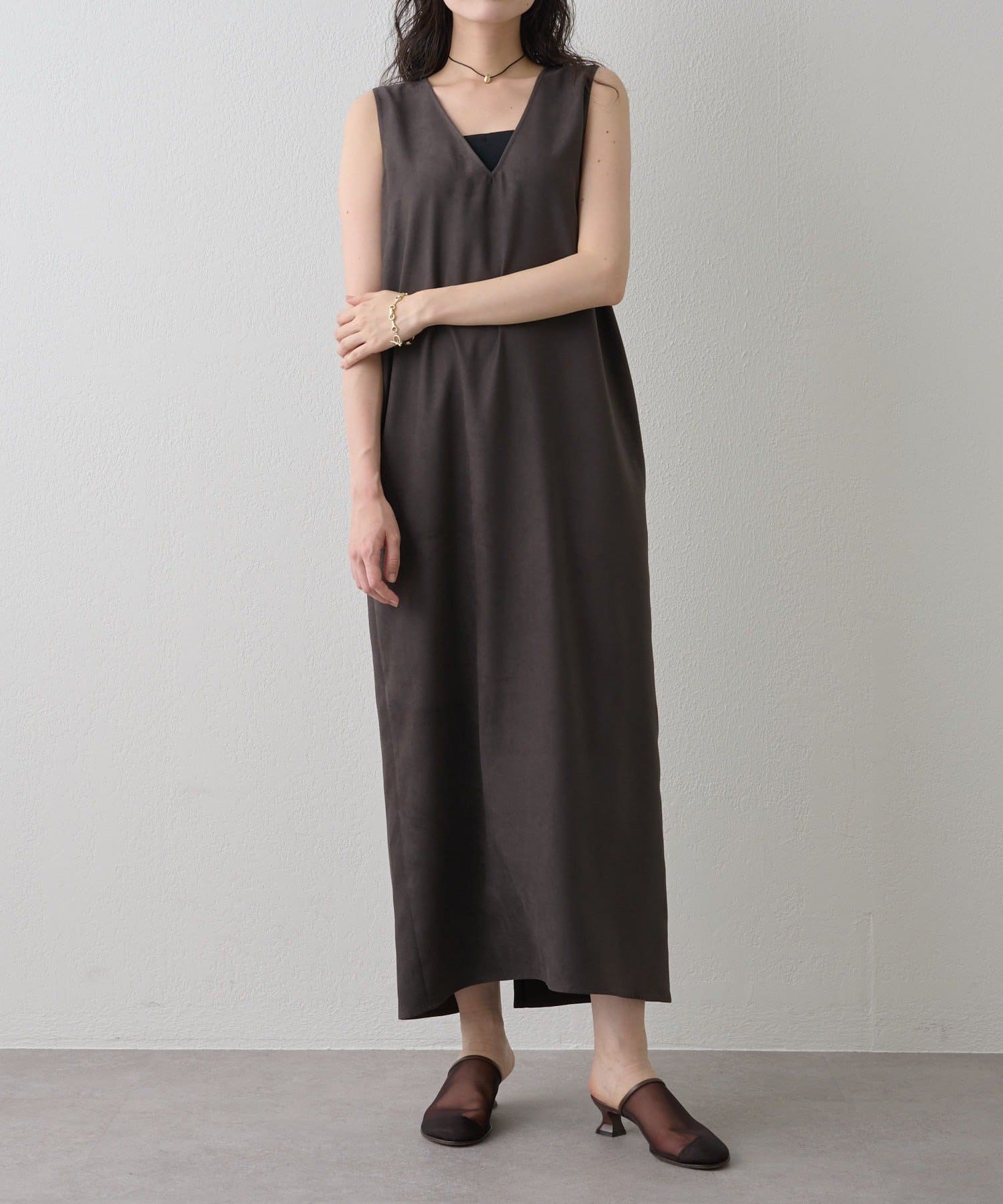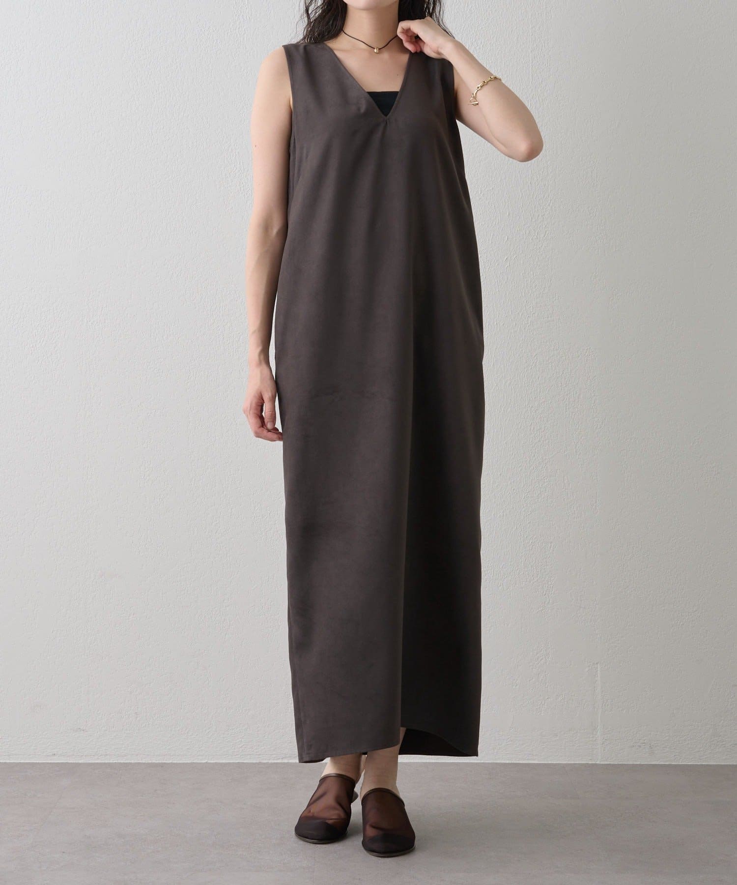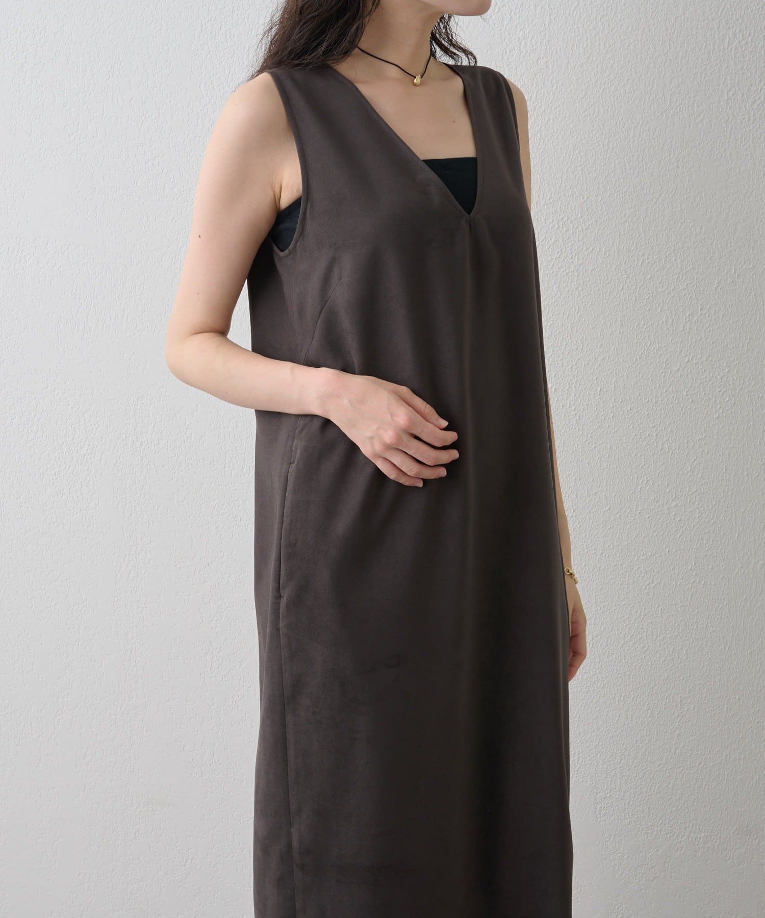 風合いの良さにこだわった、スエード見えVネックワンピ
