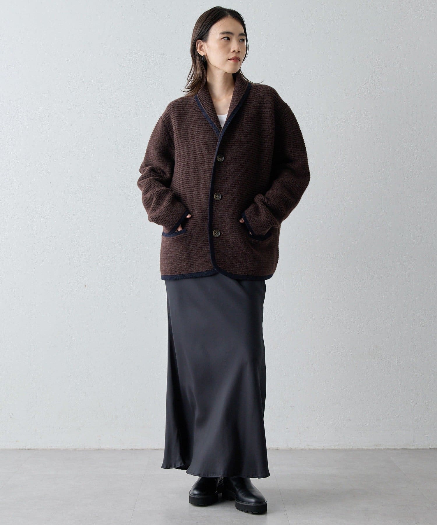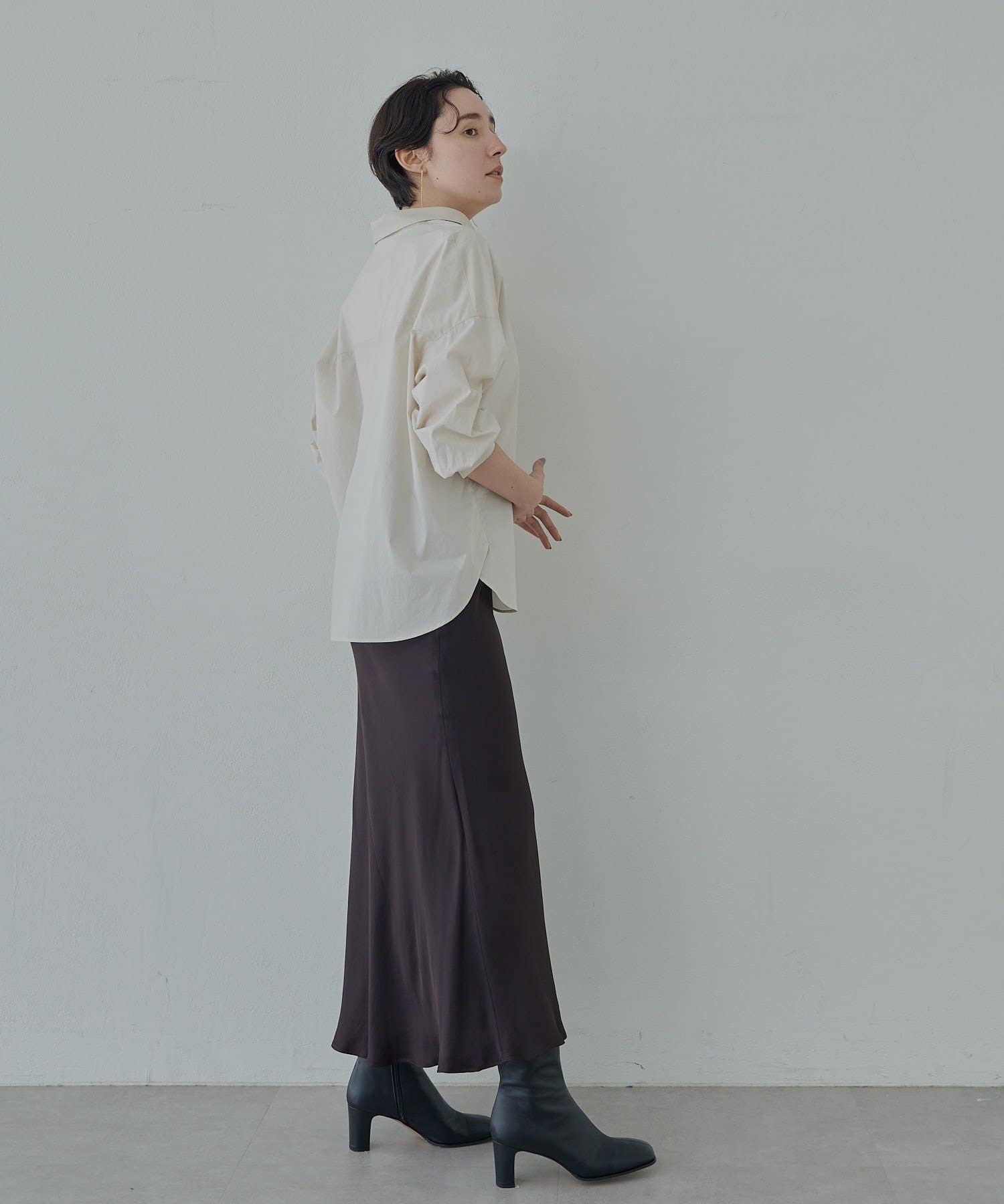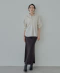 とにかくよく伸びるこちらのスカート。シルクのような艶感はリネンやニットなどの異素材と相性抜群で、通年履ける名品。