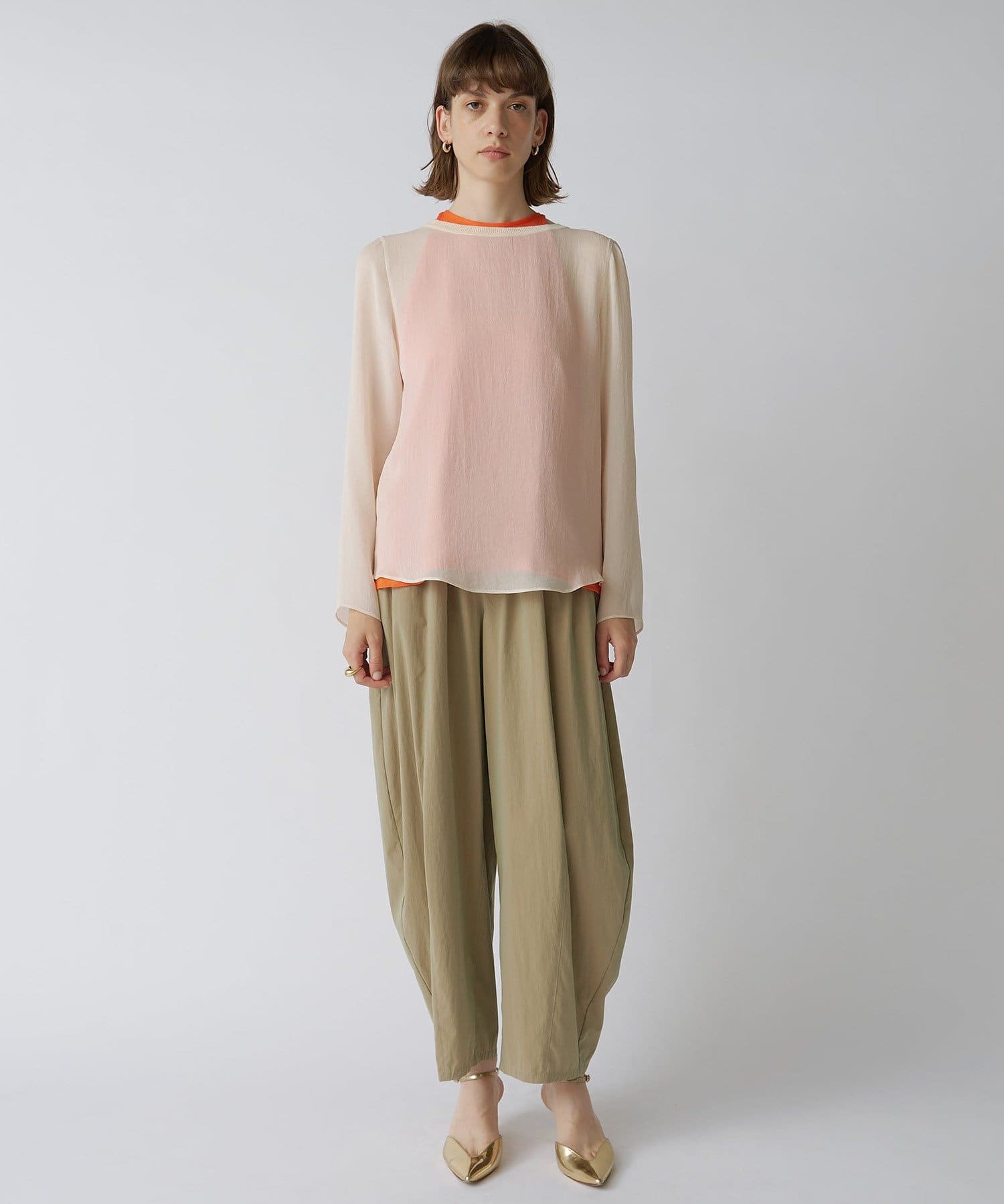 ■薄手のジョーゼット素材を使用したシアーブラウス。
