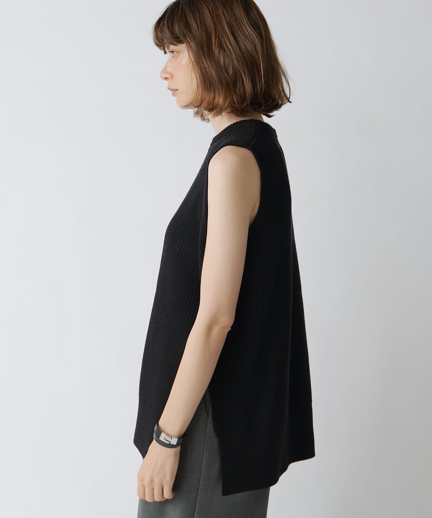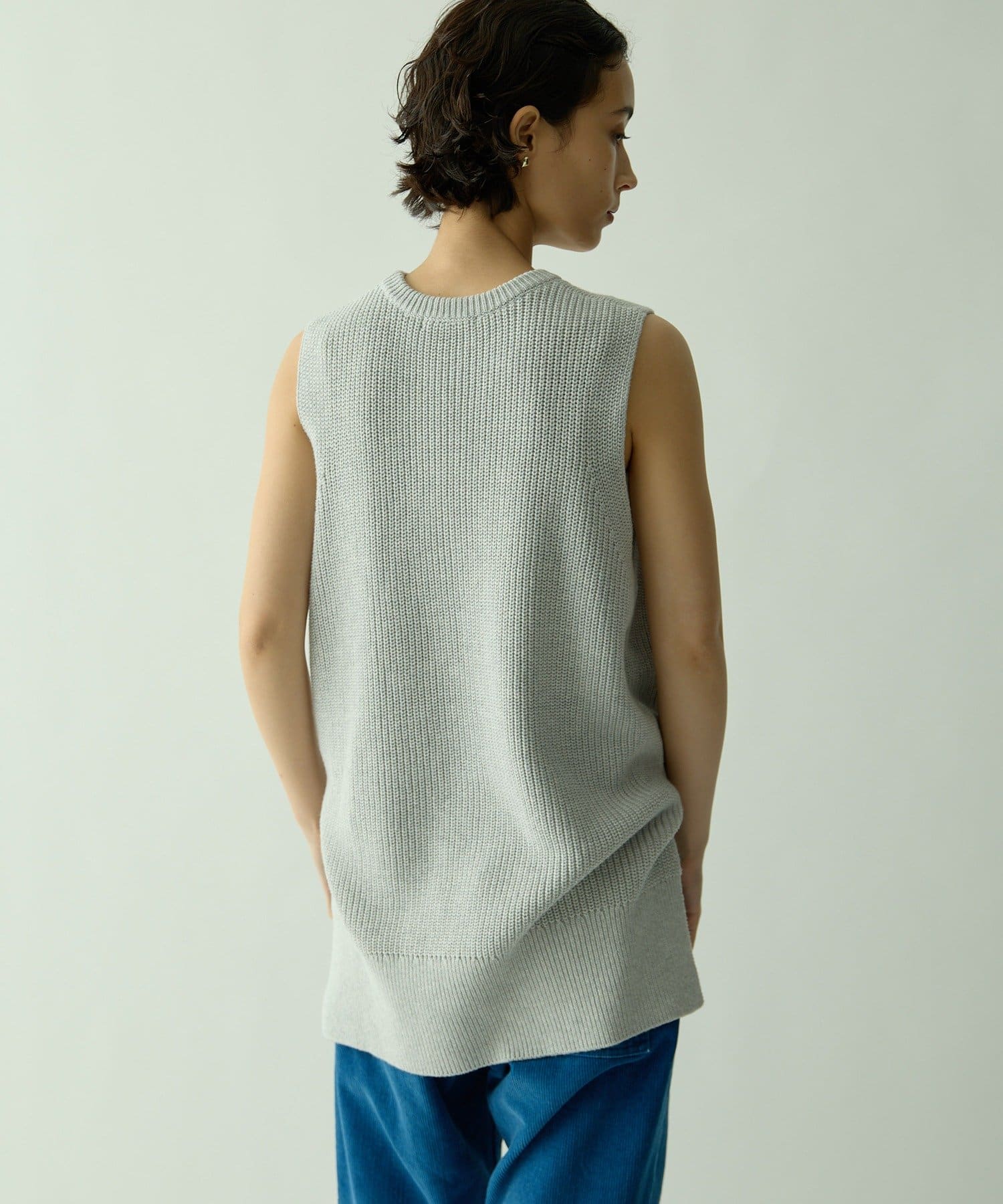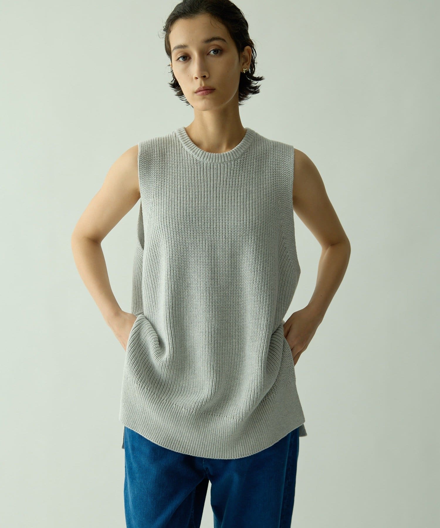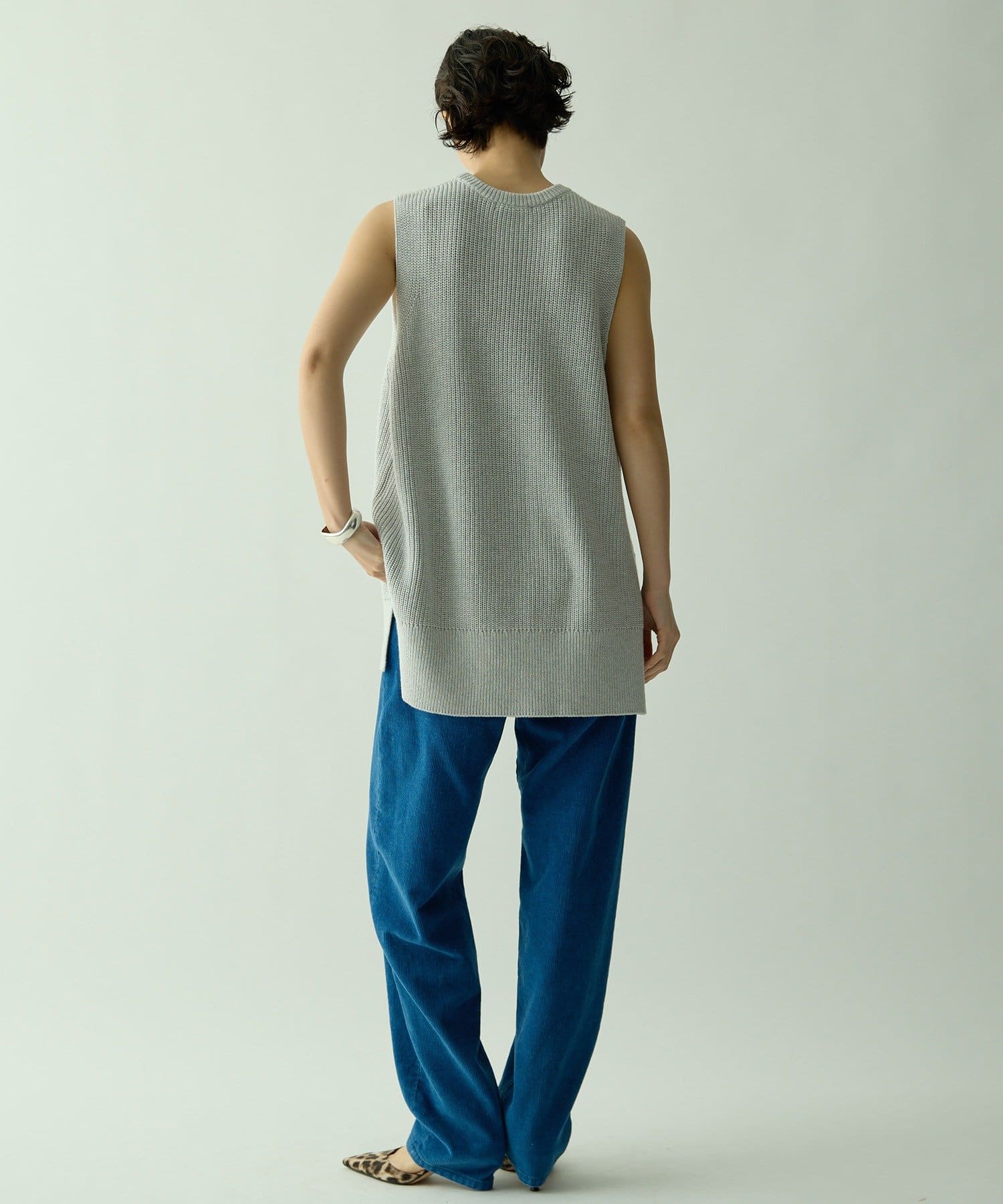 ■片畦編みの表情が一枚でもサマになるニットベスト。