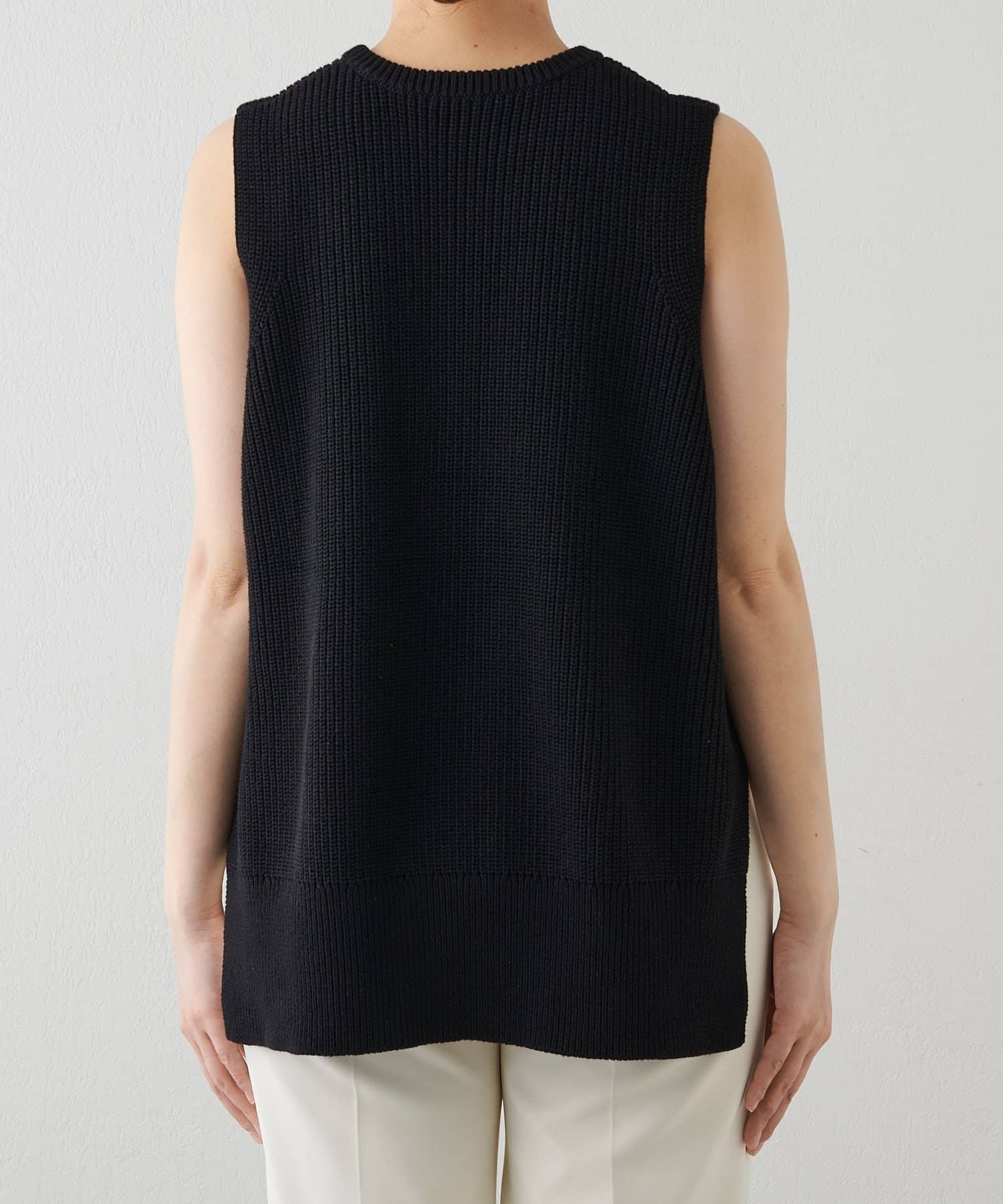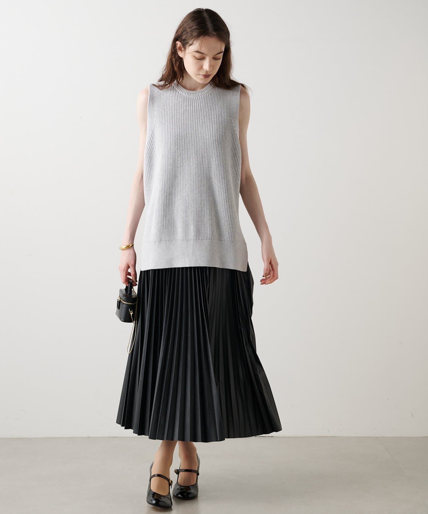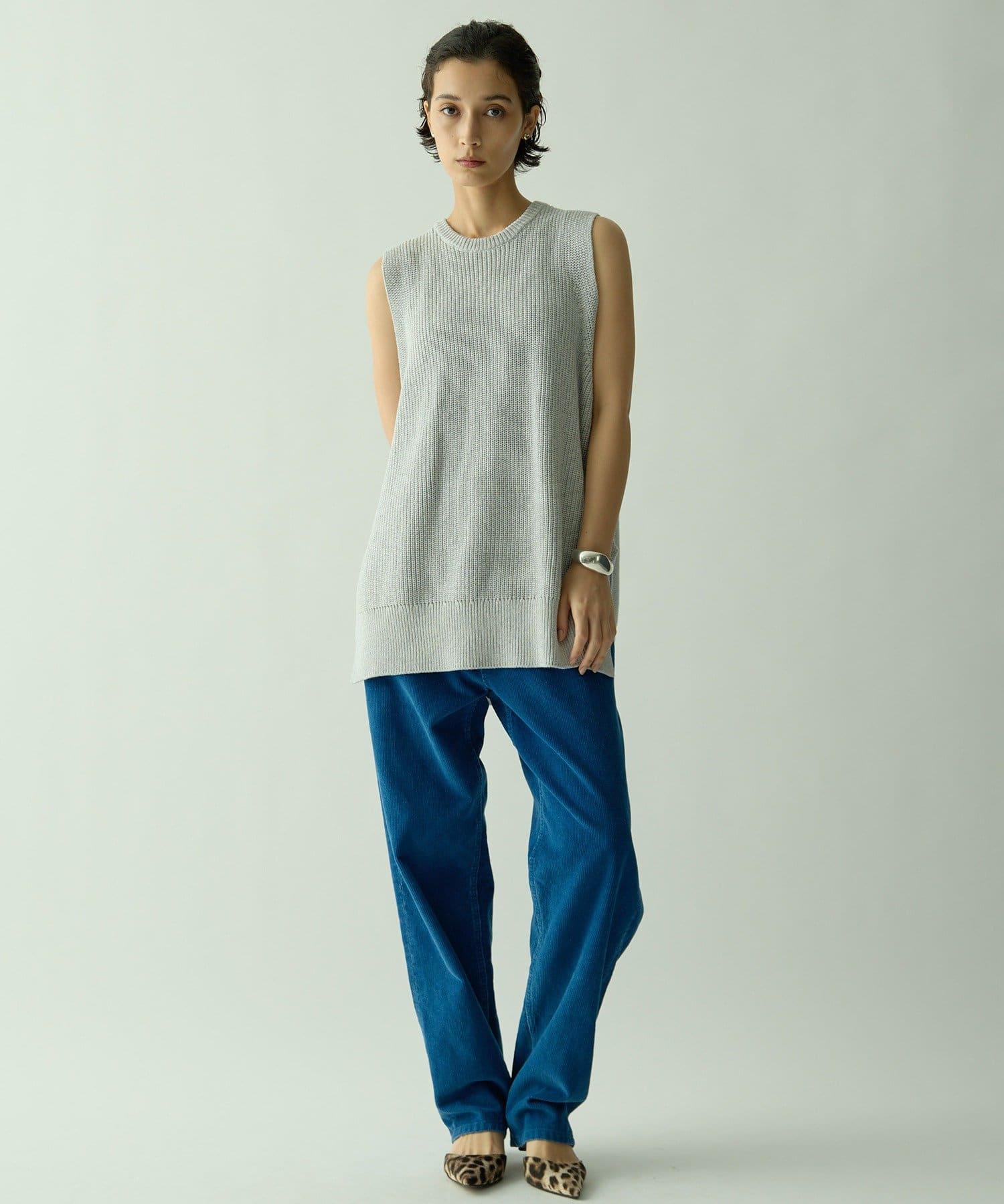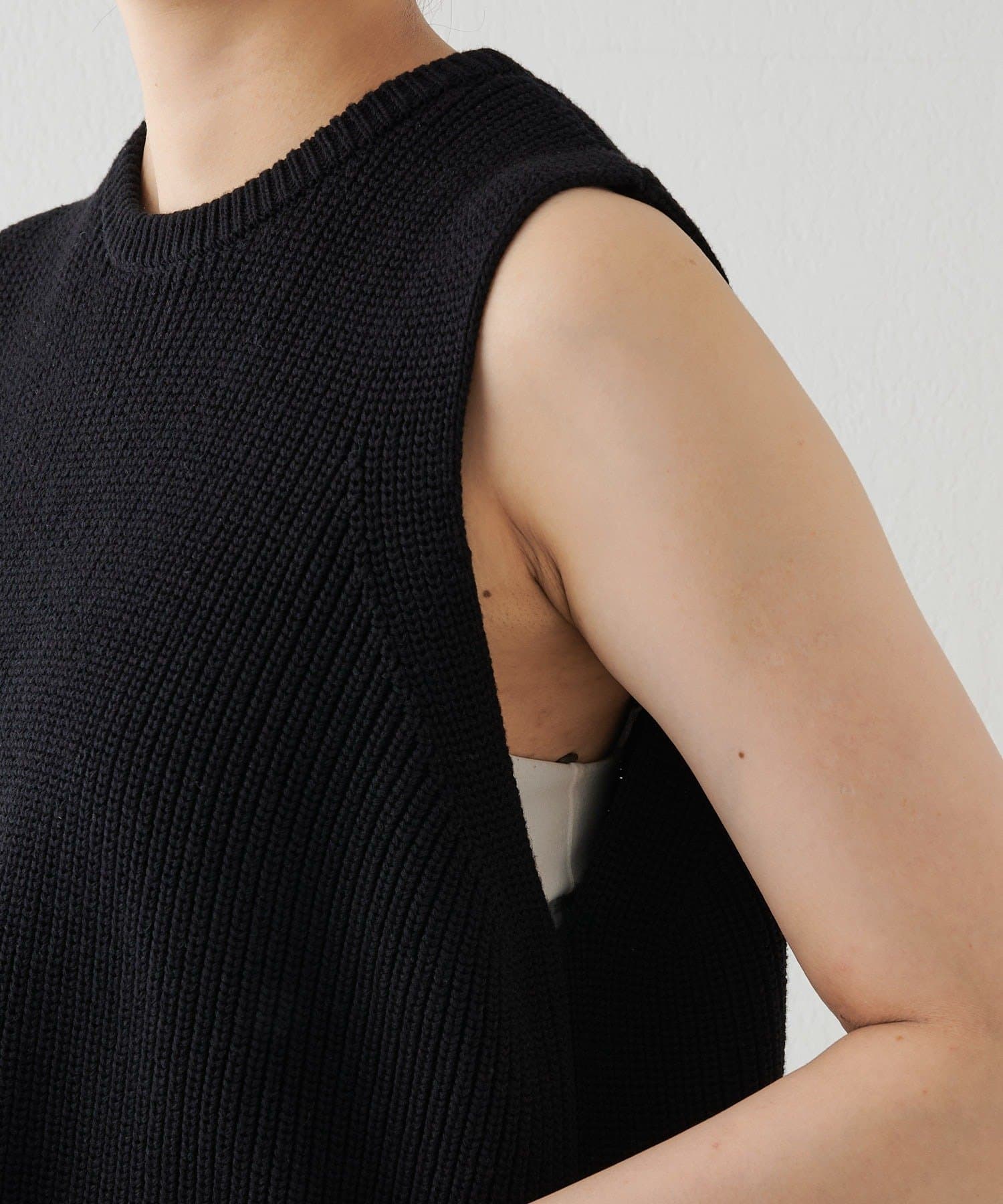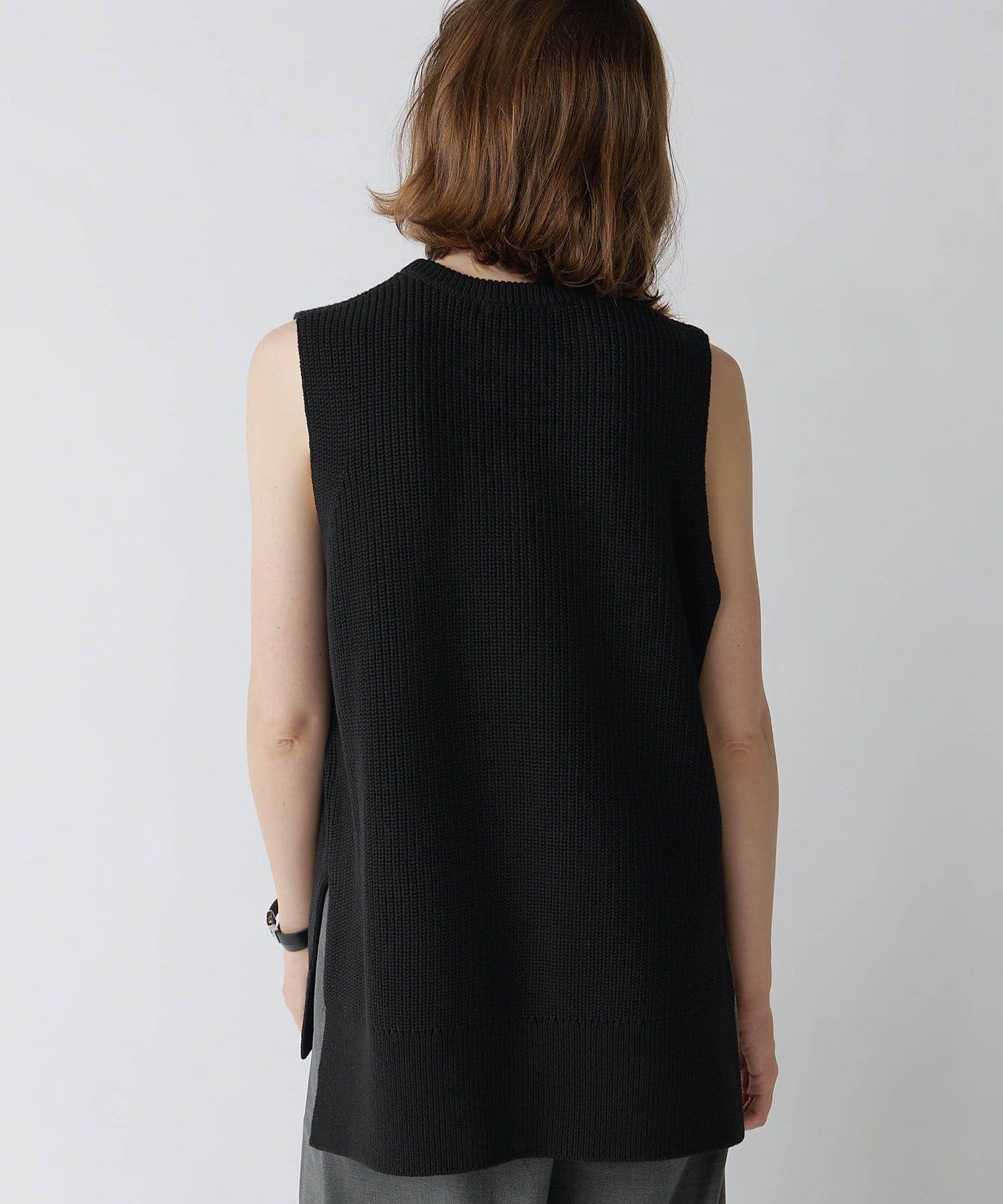 ■片畦編みの表情が一枚でもサマになるニットベスト。