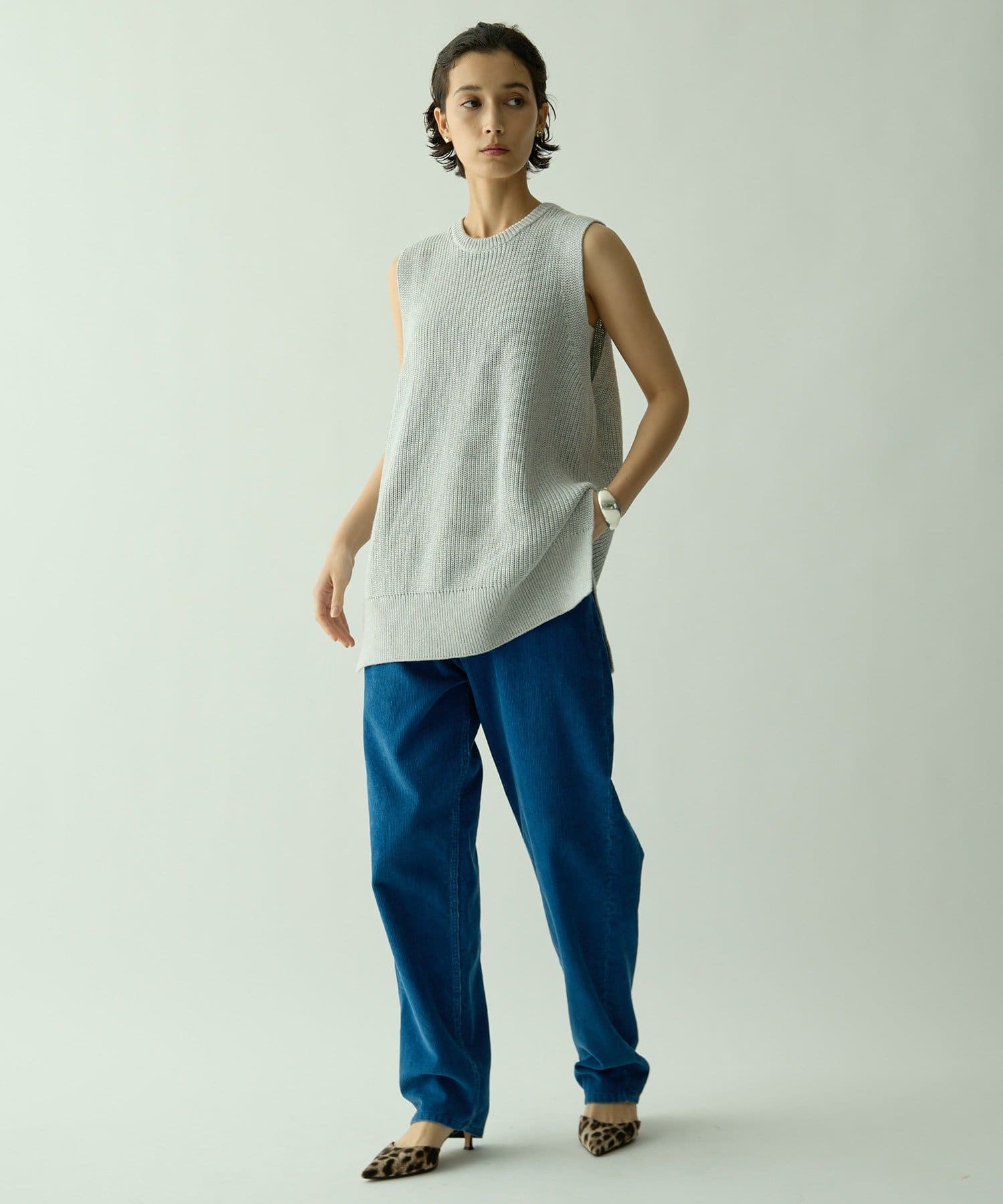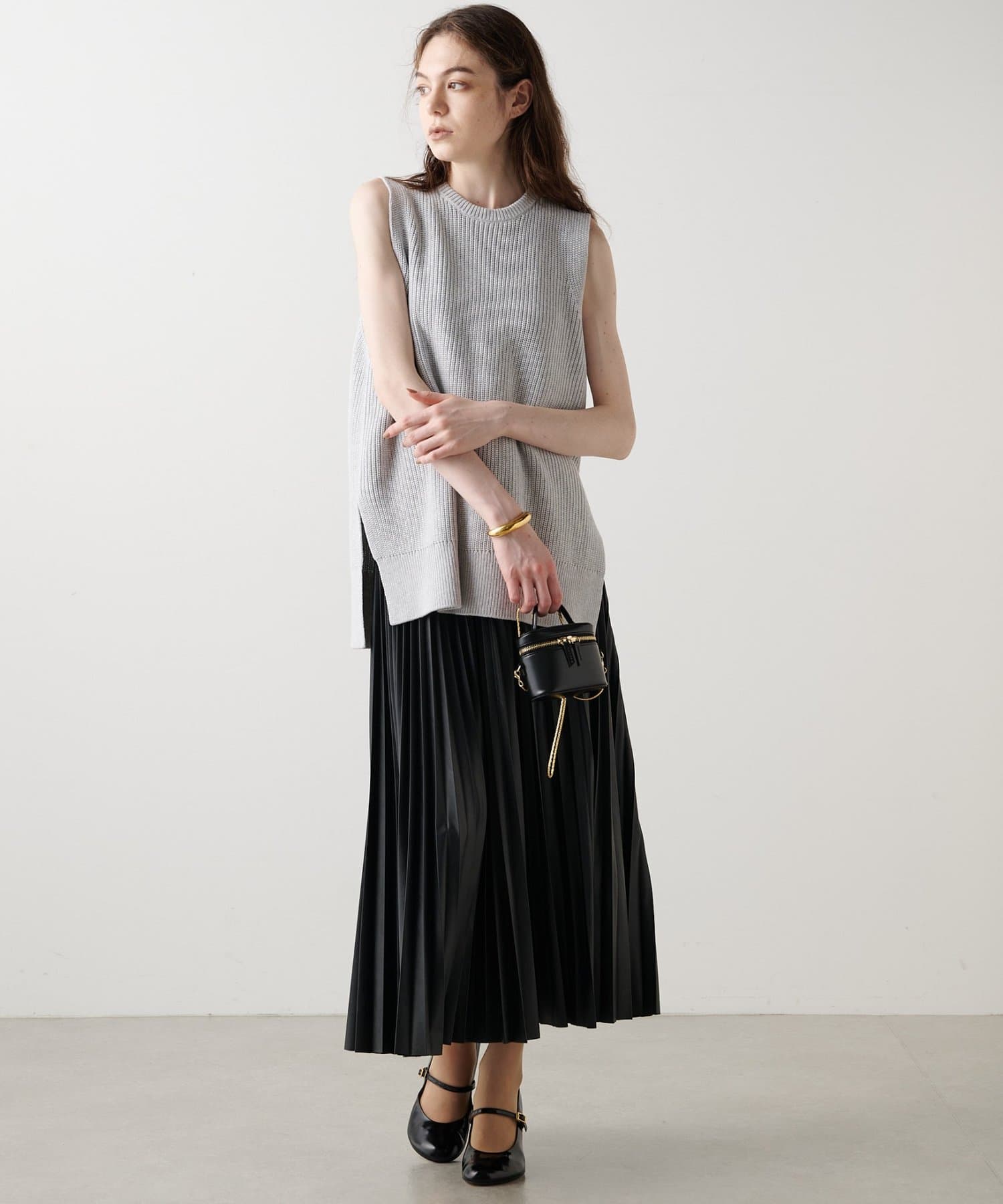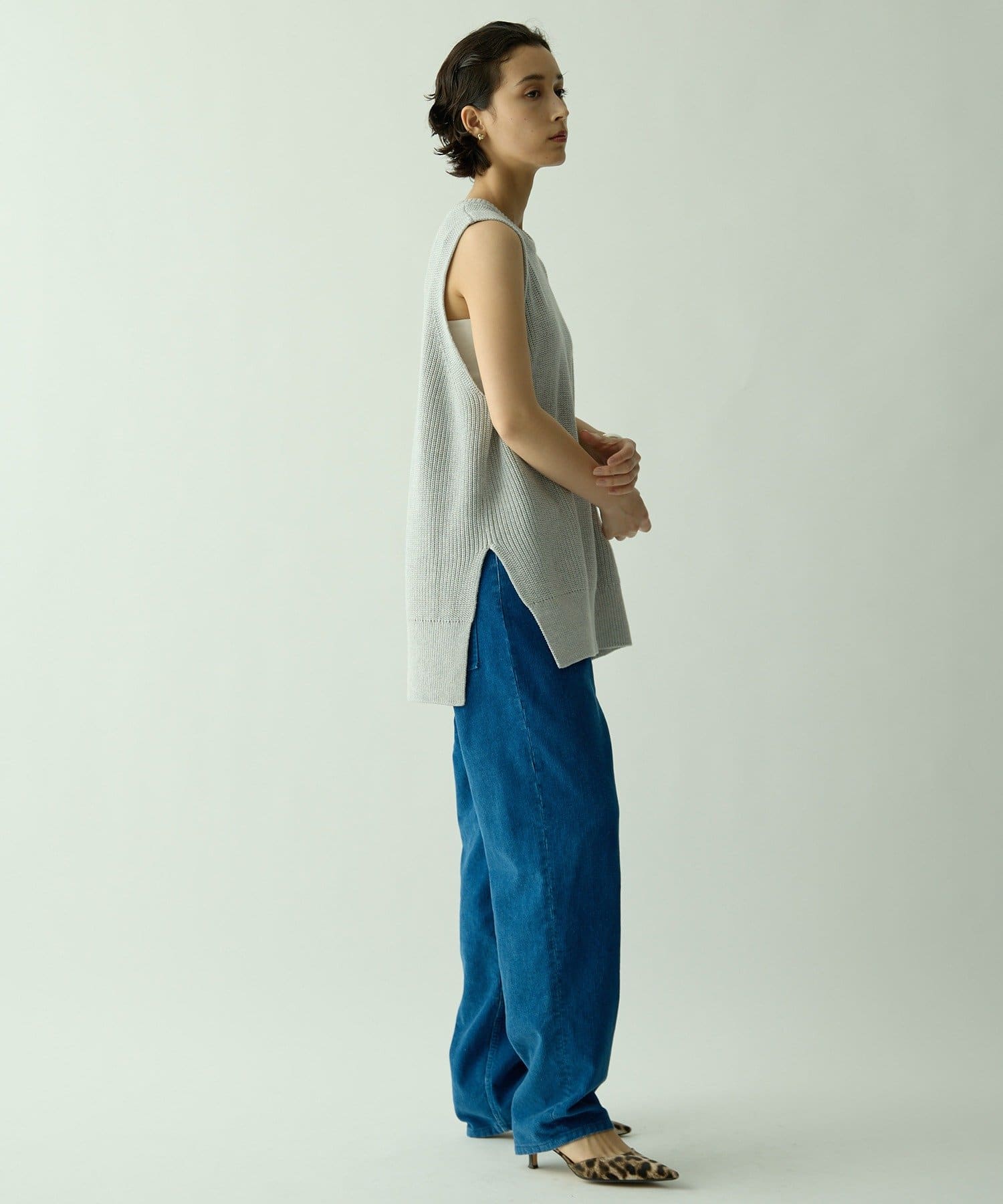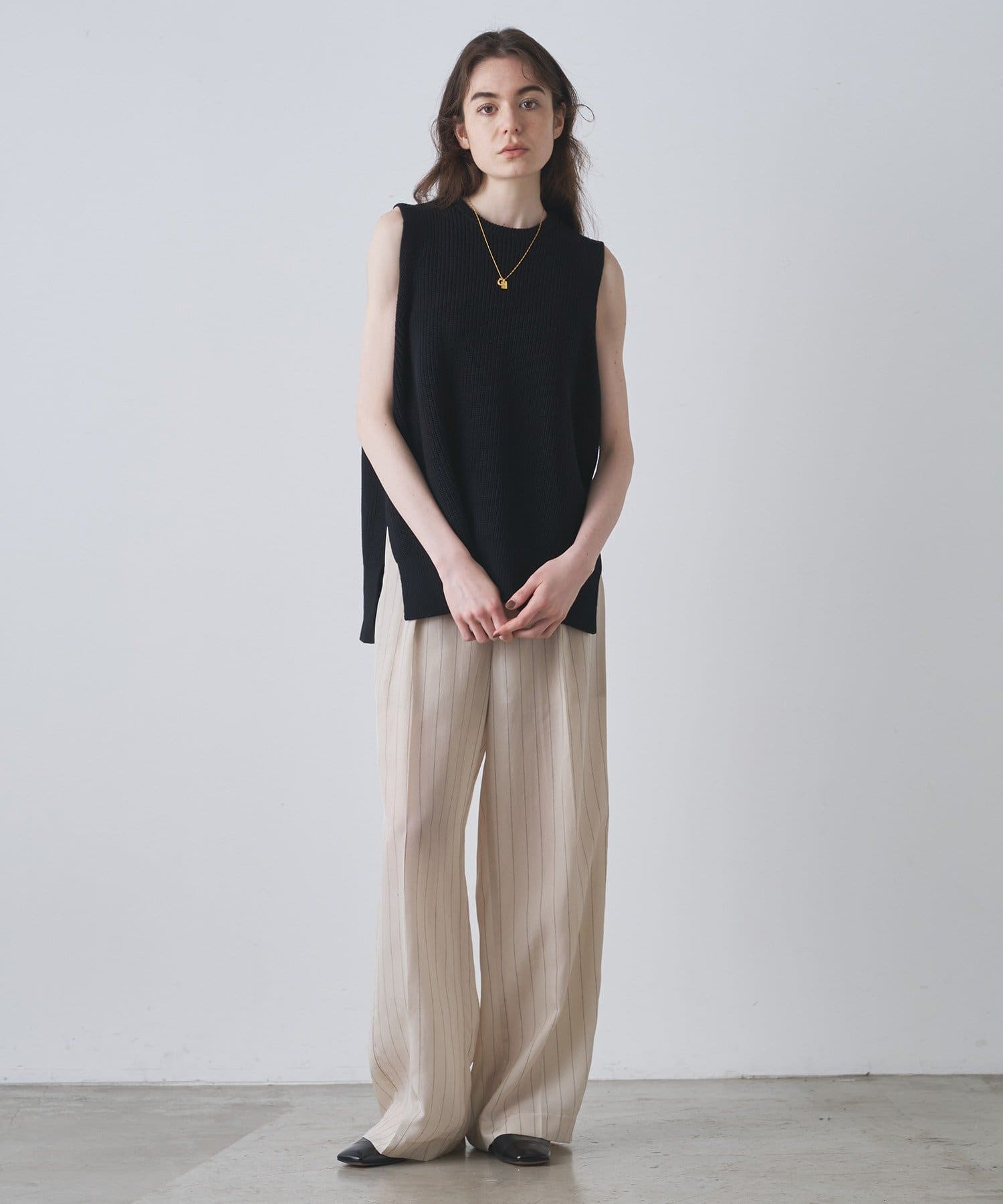 ■片畦編みの表情が一枚でもサマになるニットベスト。