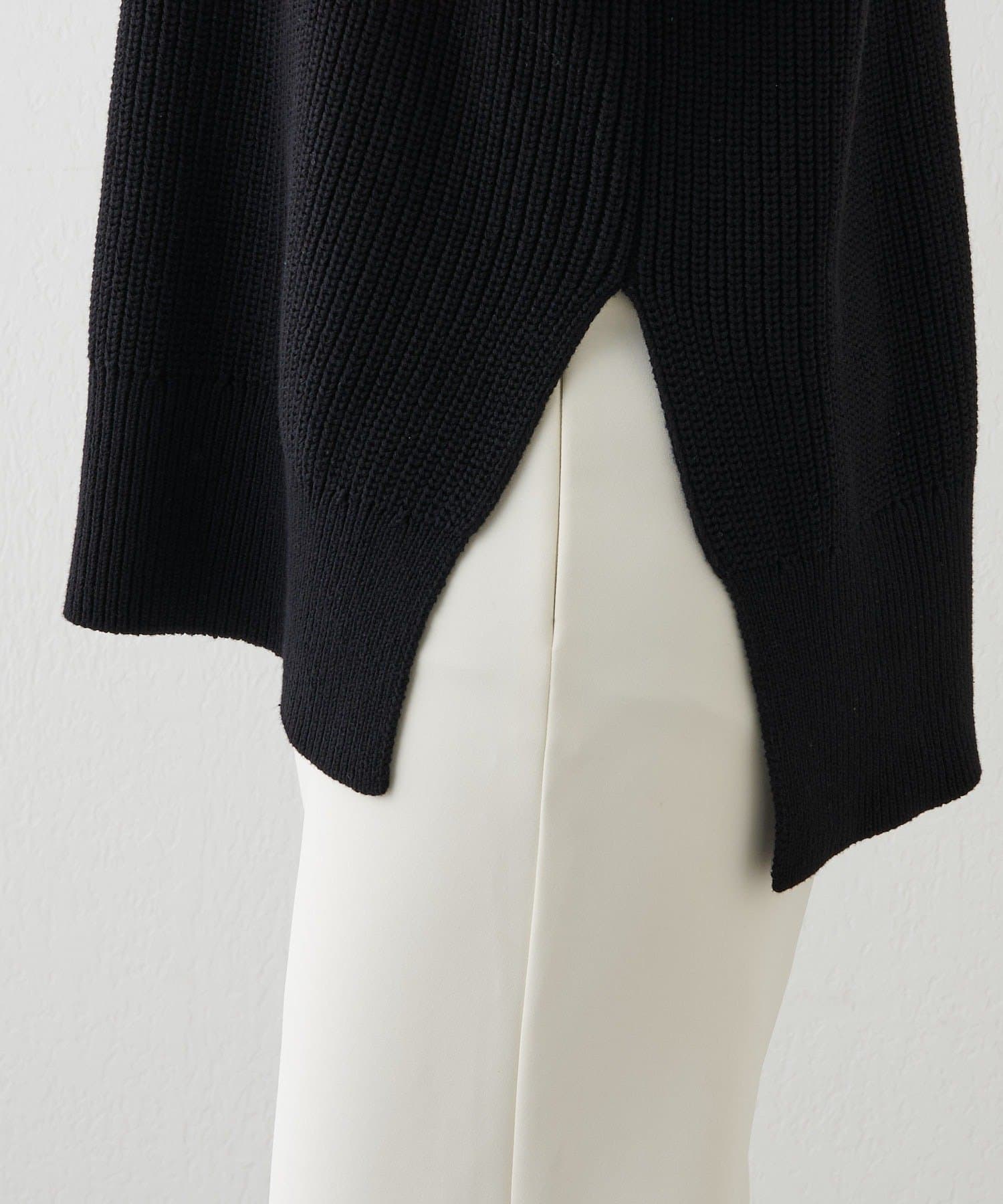 今から着れるコットンニット。一枚で着てもインナーやシャツを重ねて着ても◎ヒップがすっぽり隠れる丈感なのでタイトスカートとの相性も抜群です。