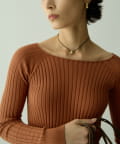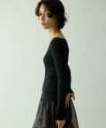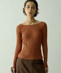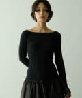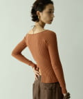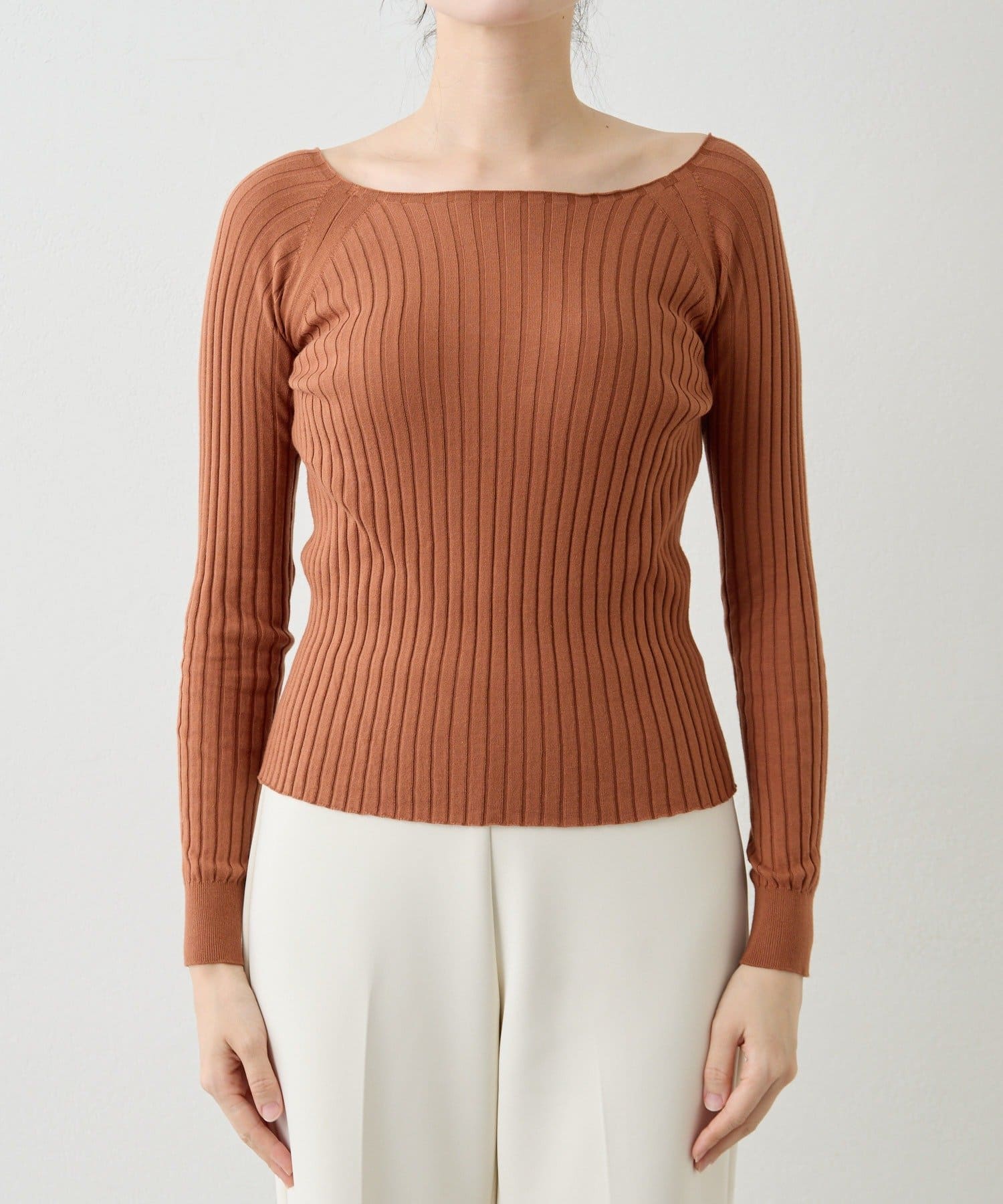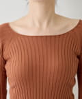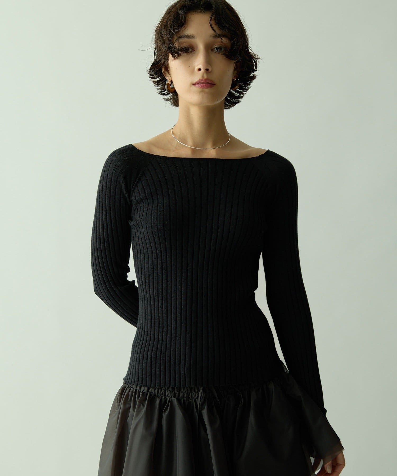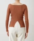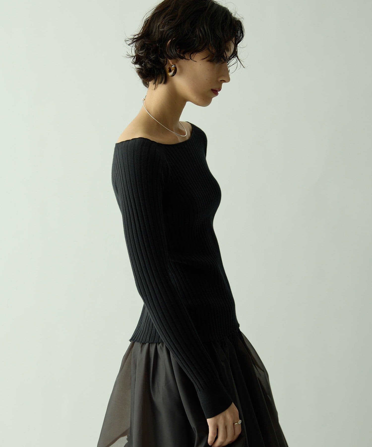 ■オフショルダー風なスクエアネックのニットプルオーバー。