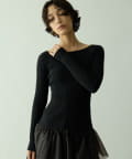 ■シルクのような艶やかさのある風合いと開きすぎないオフショルデザインで、上品なに楽しめるアイテム。