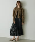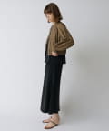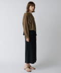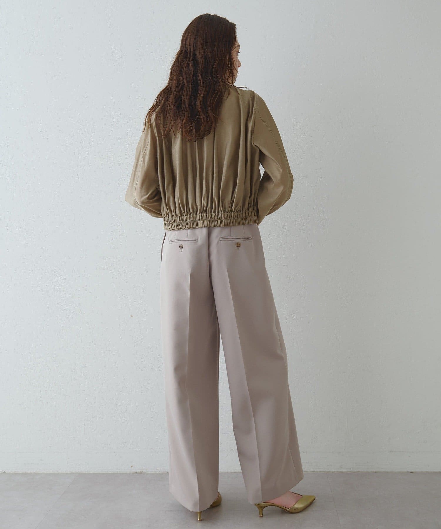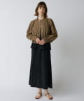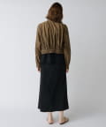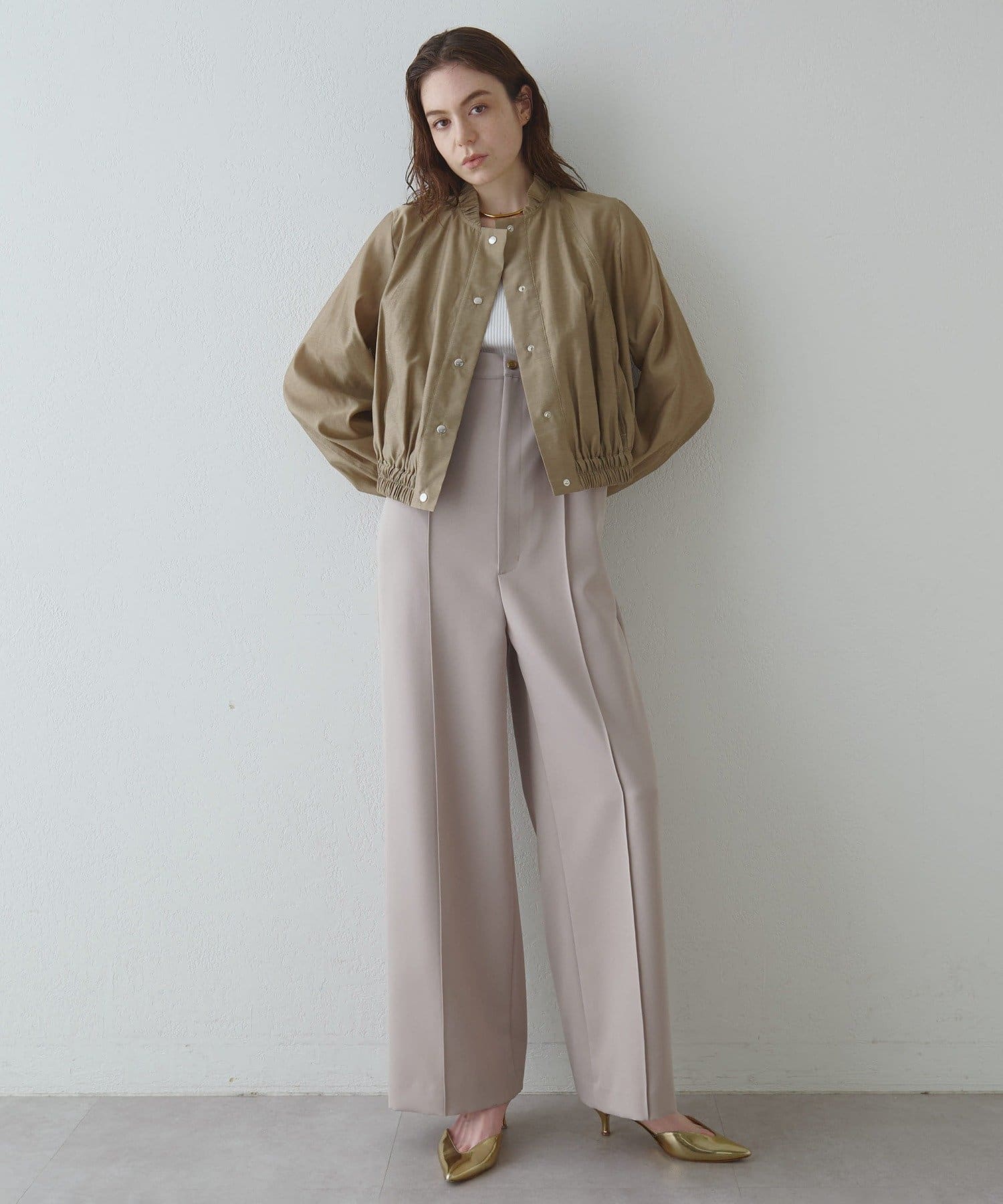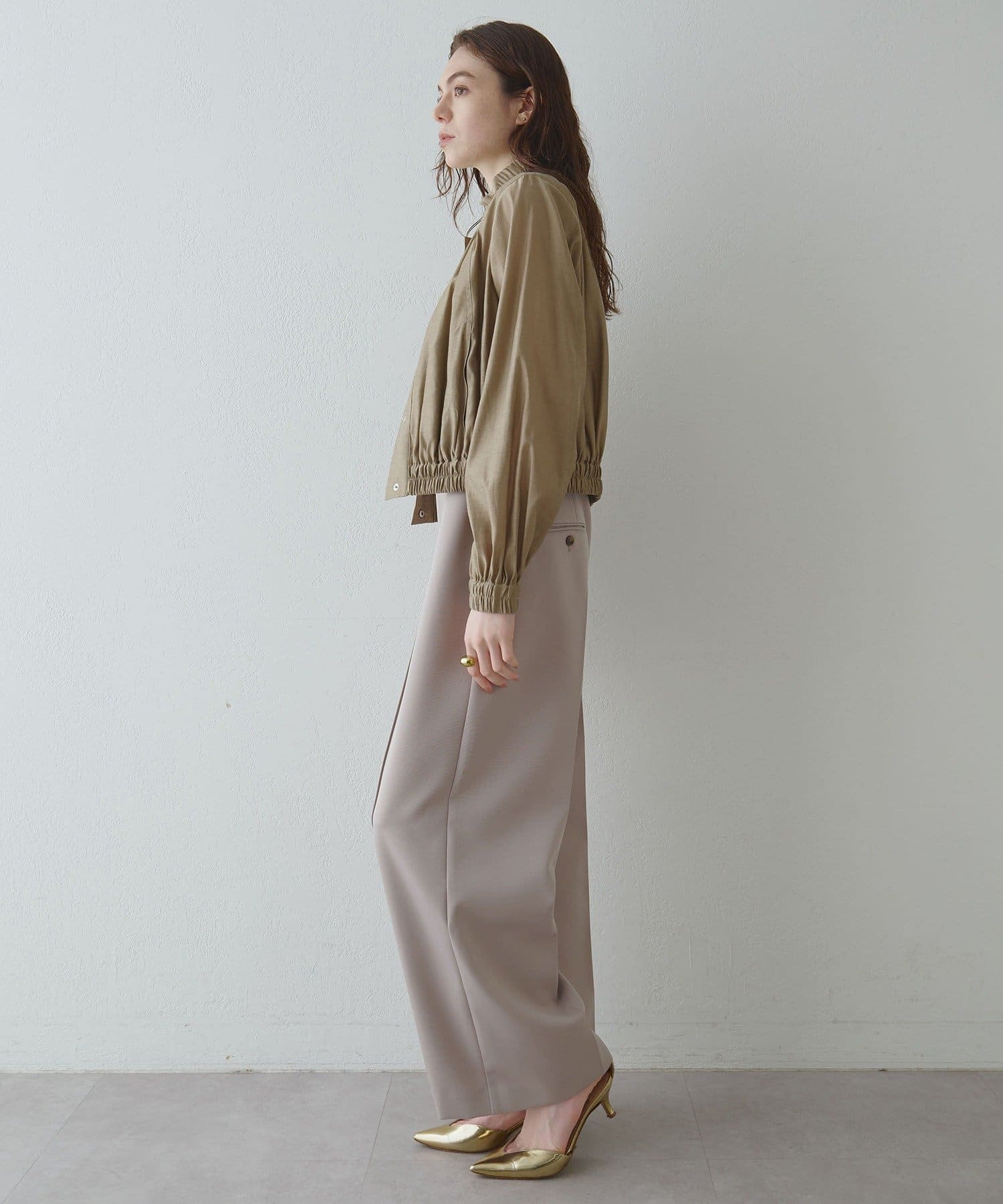 ■ギャザーディテールのスタンドカラーやドット釦も着こなしのアクセントに。