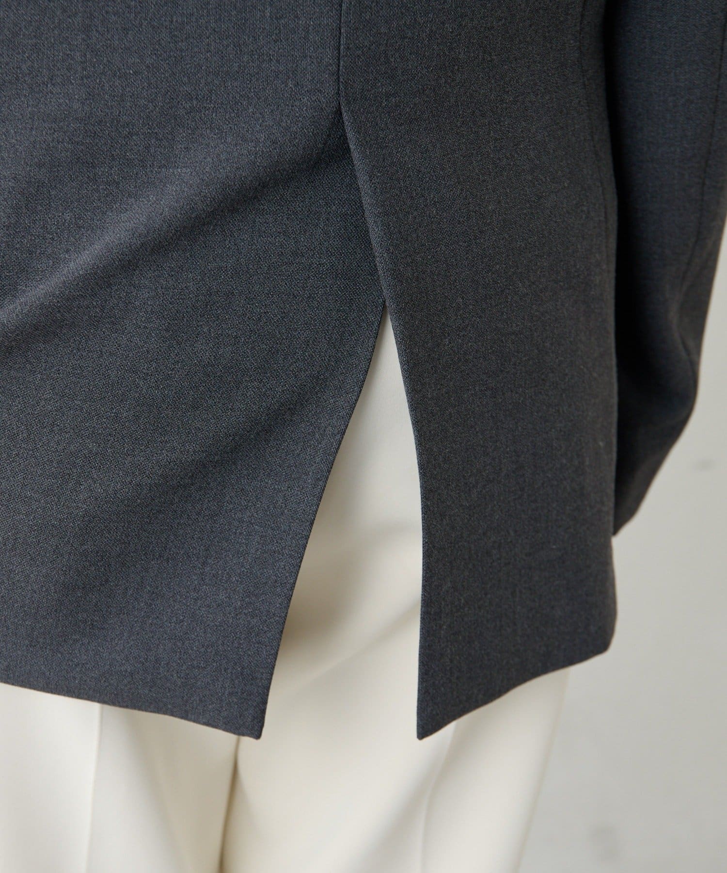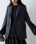 ■落ち感のあるストレッチ素材を使用したシングルジャケット。