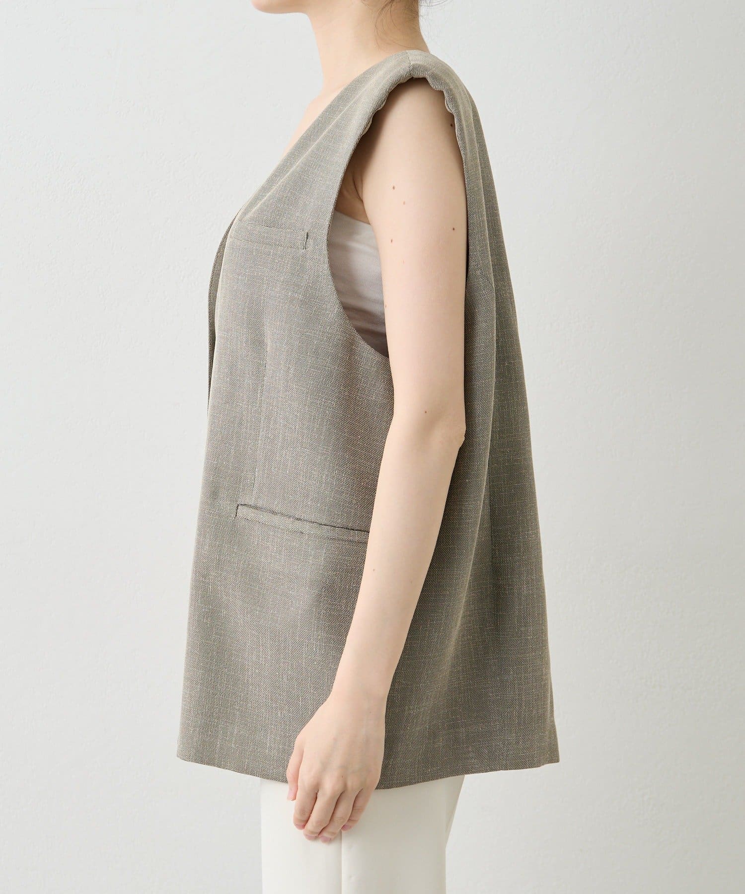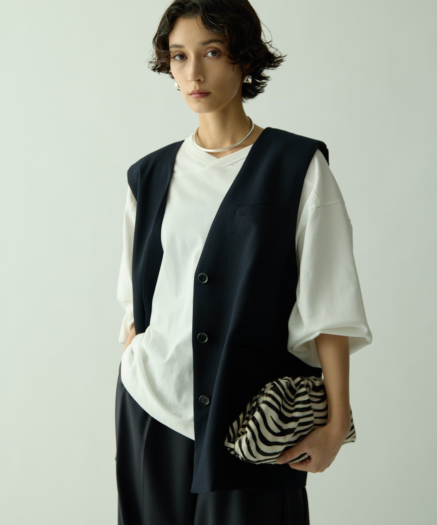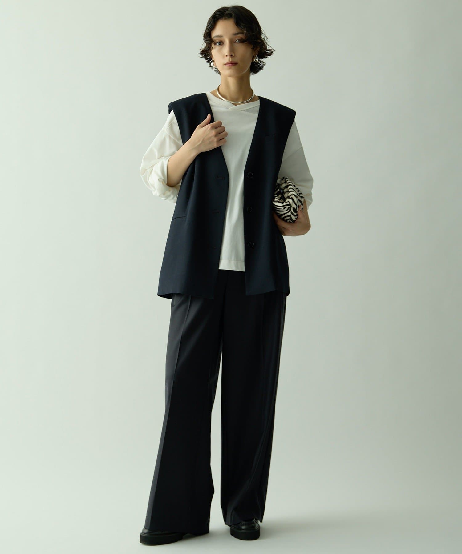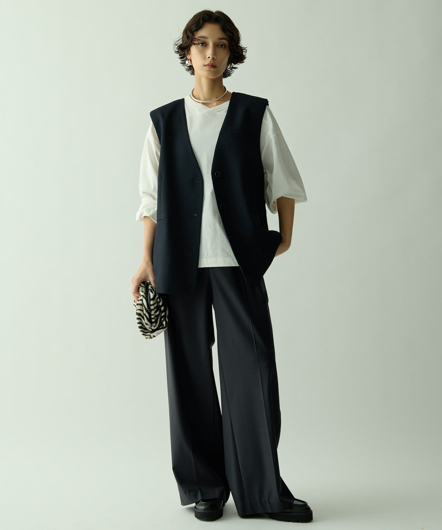 ■一枚でもサマになるワイドシルエットで、ノースリーブトップスとしても着用可能。