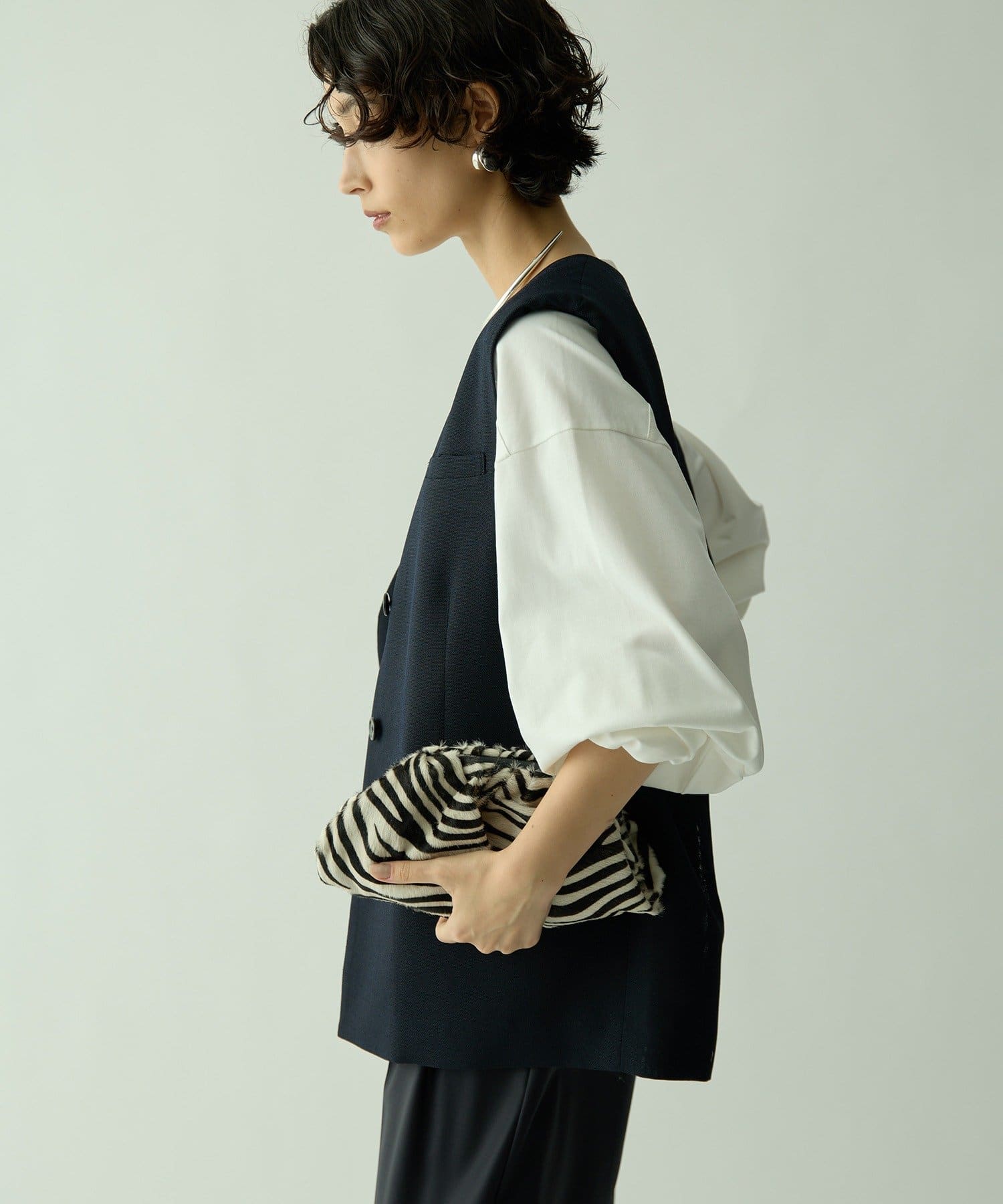■大きめな肩幅と肩パッドが特徴的なシルエットは、嬉しい小顔効果も◎。