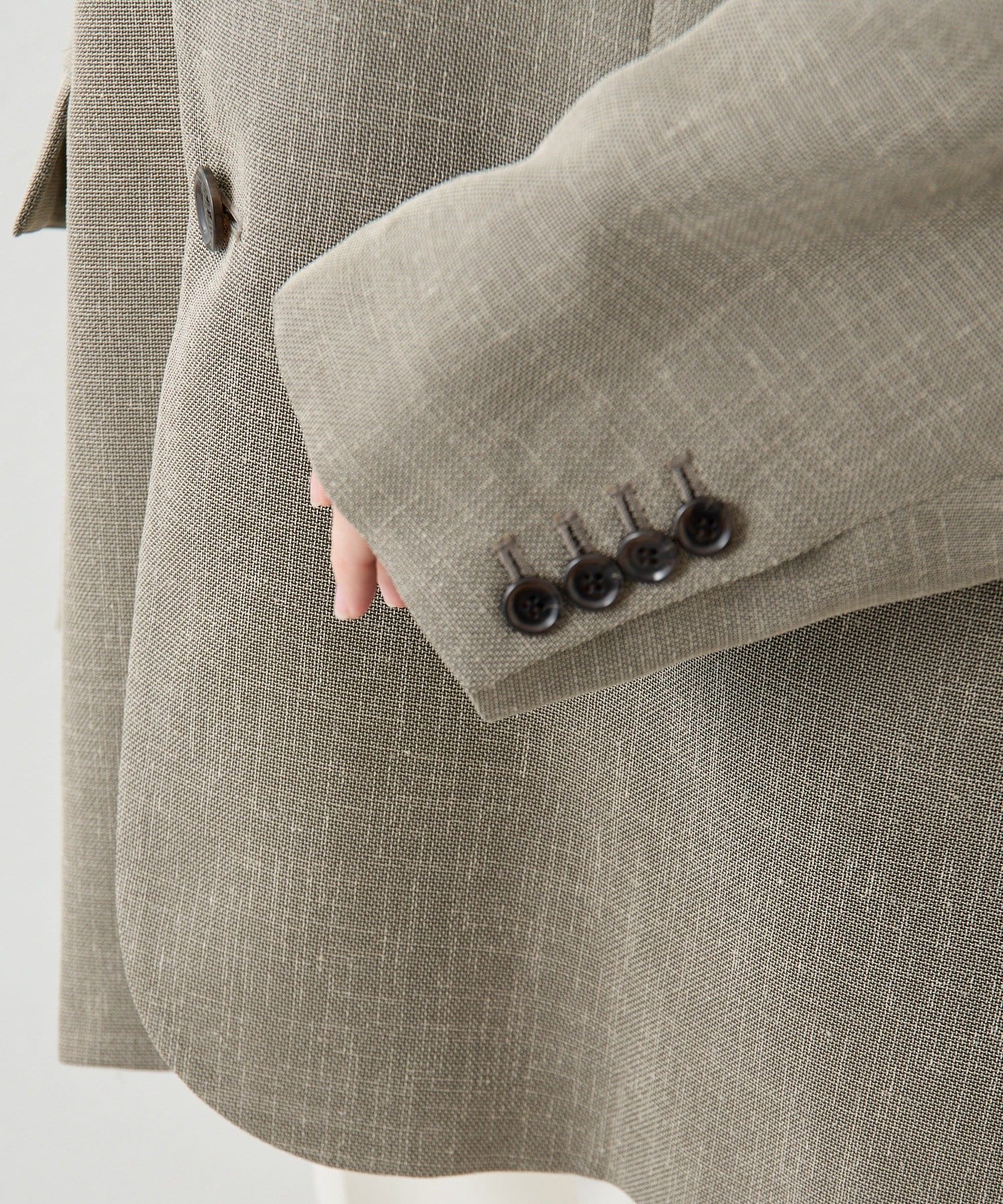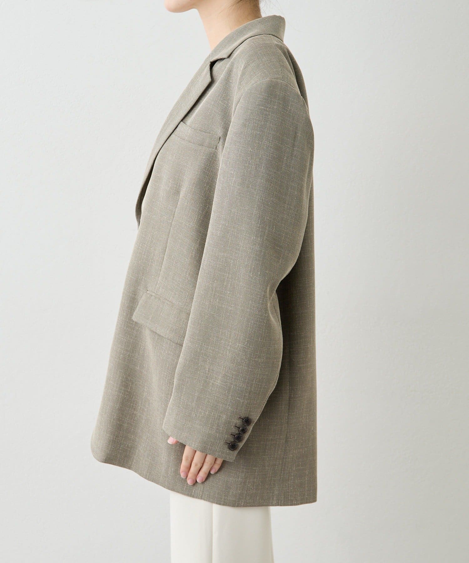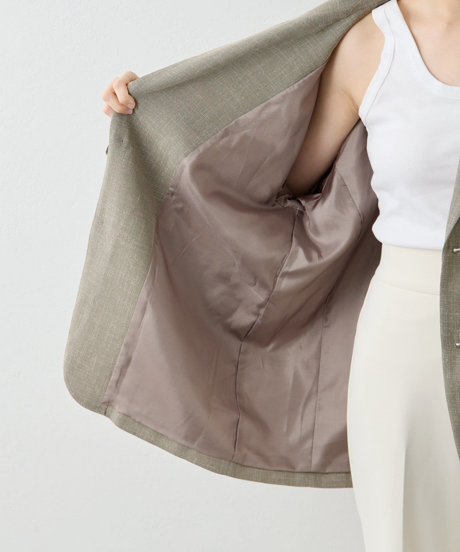 ■ウールツイードのような張り感とドライさのある軽いツイードライク素材を使用。