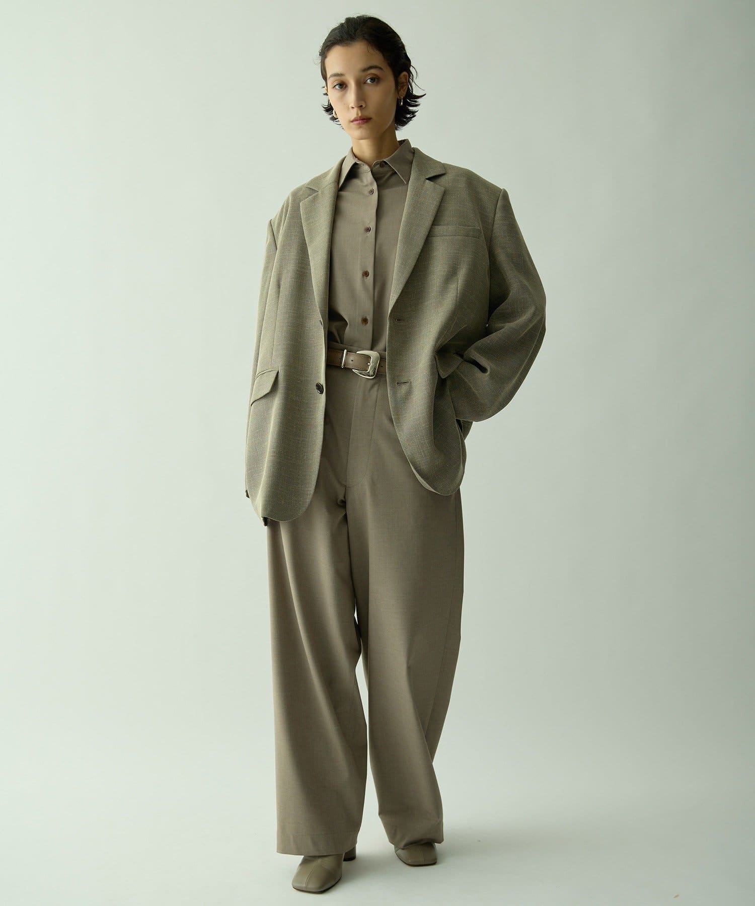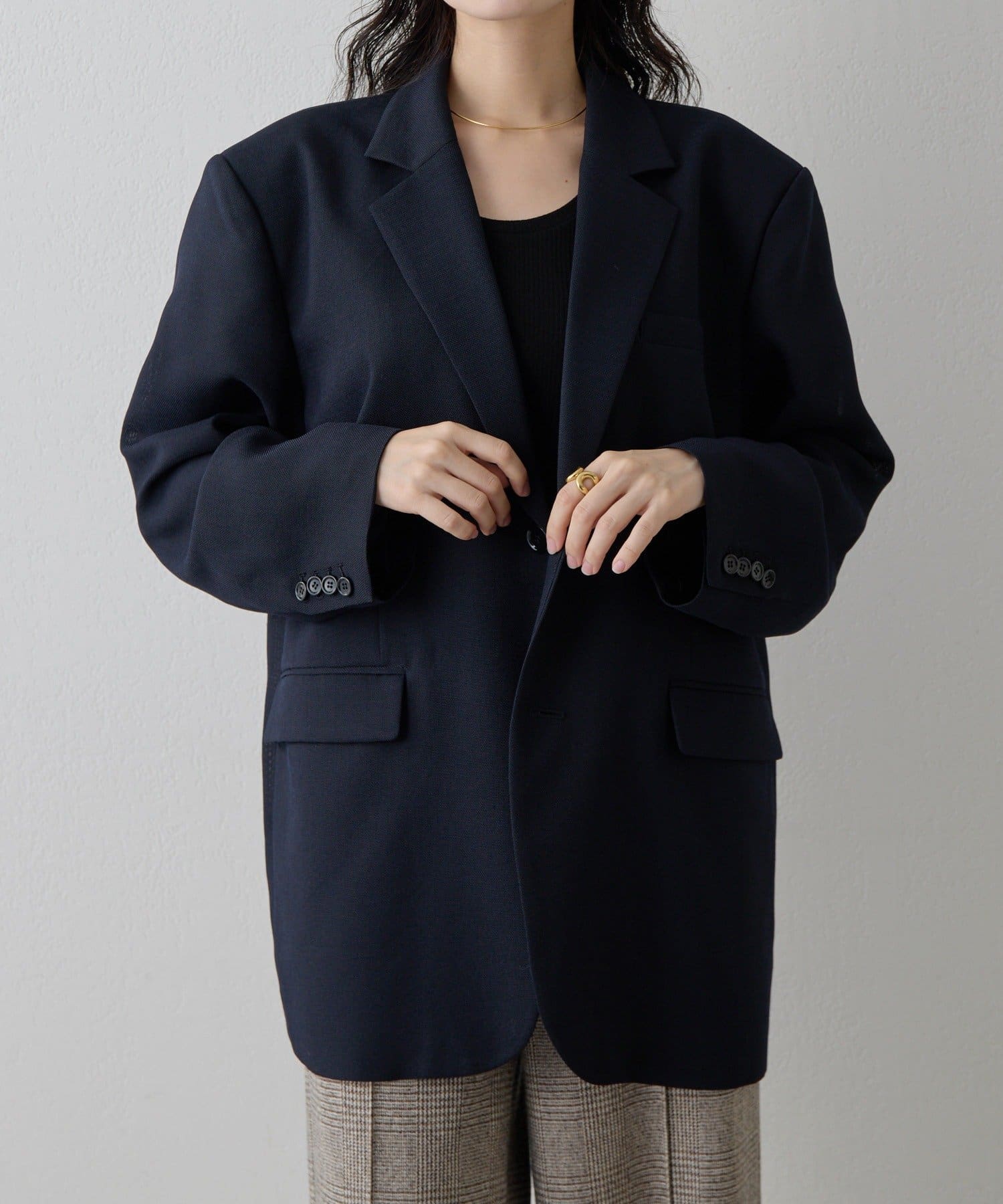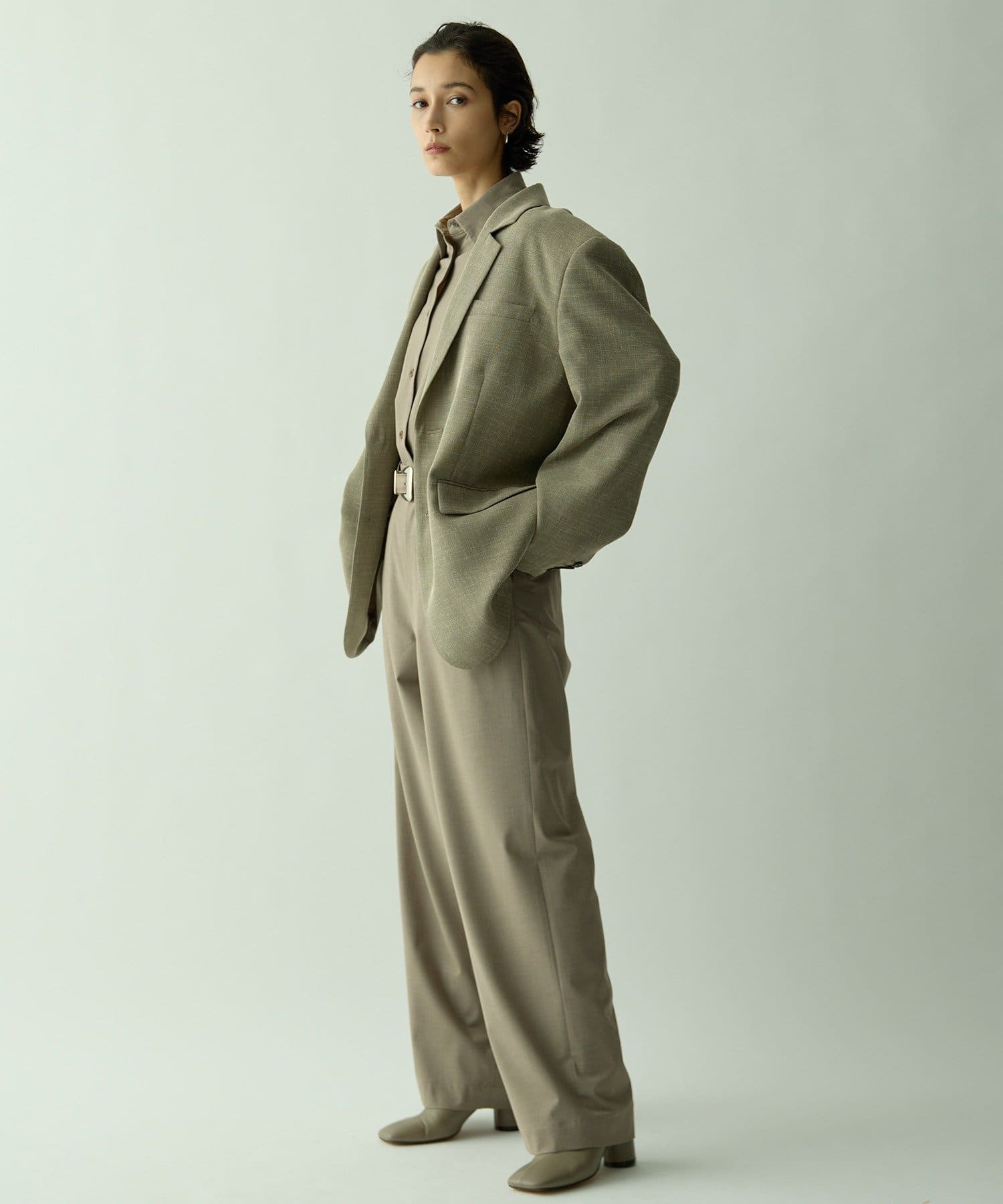 ■大きめな肩幅と厚めな肩パッドが特徴的なシルエットは、嬉しい小顔効果も◎。
