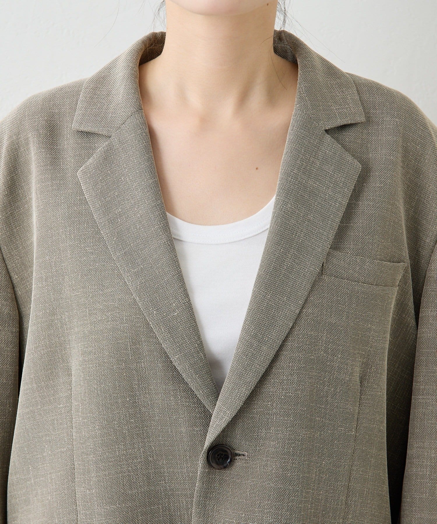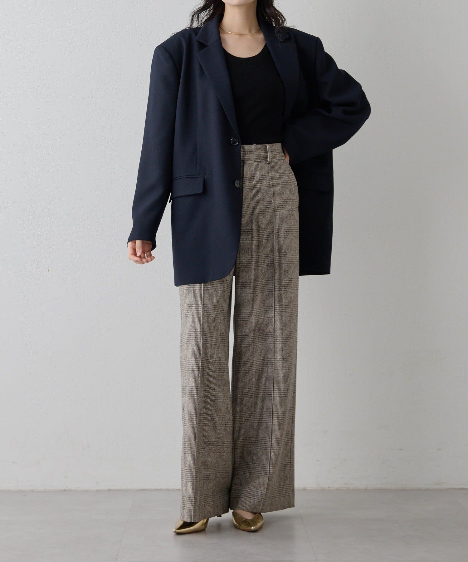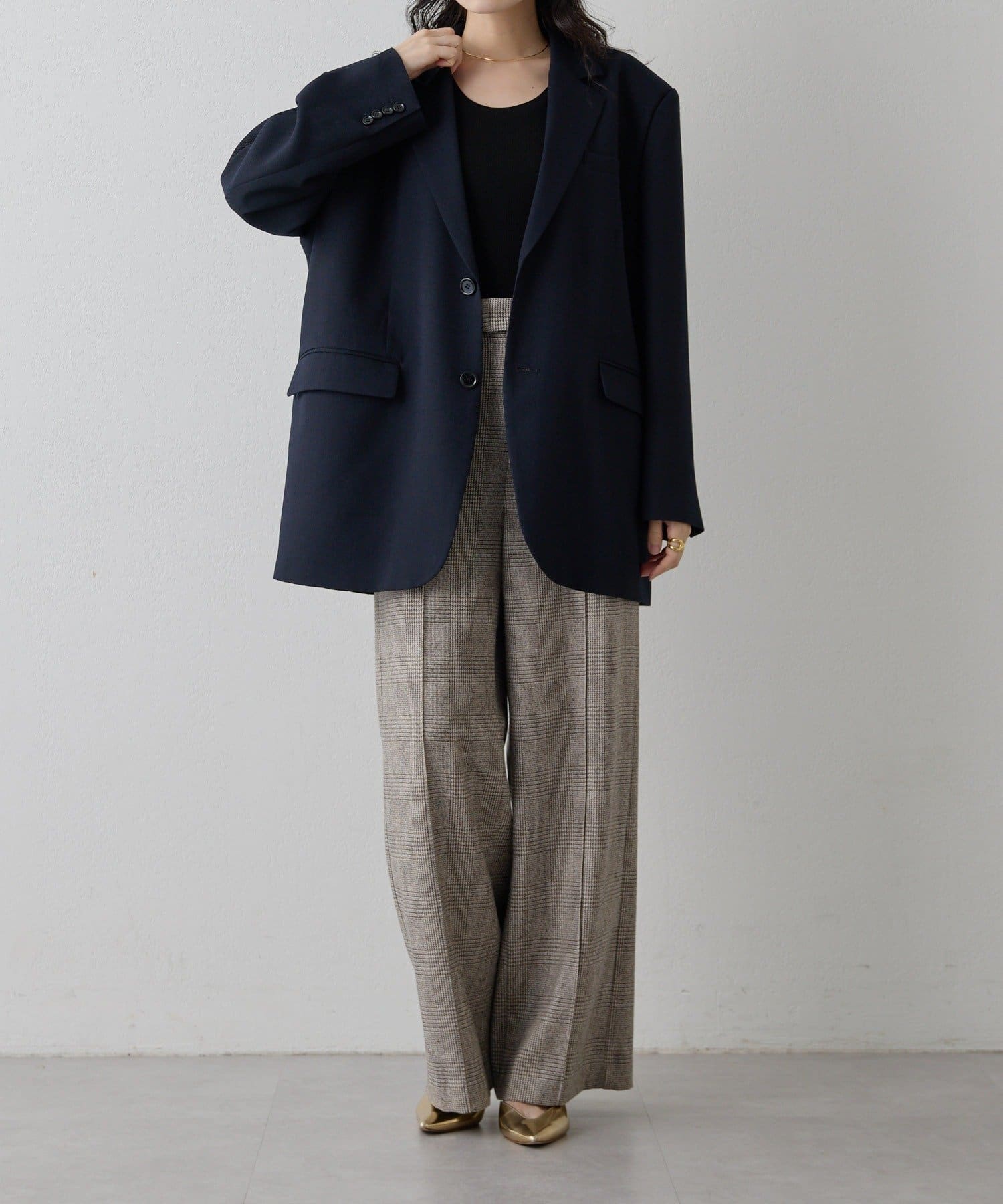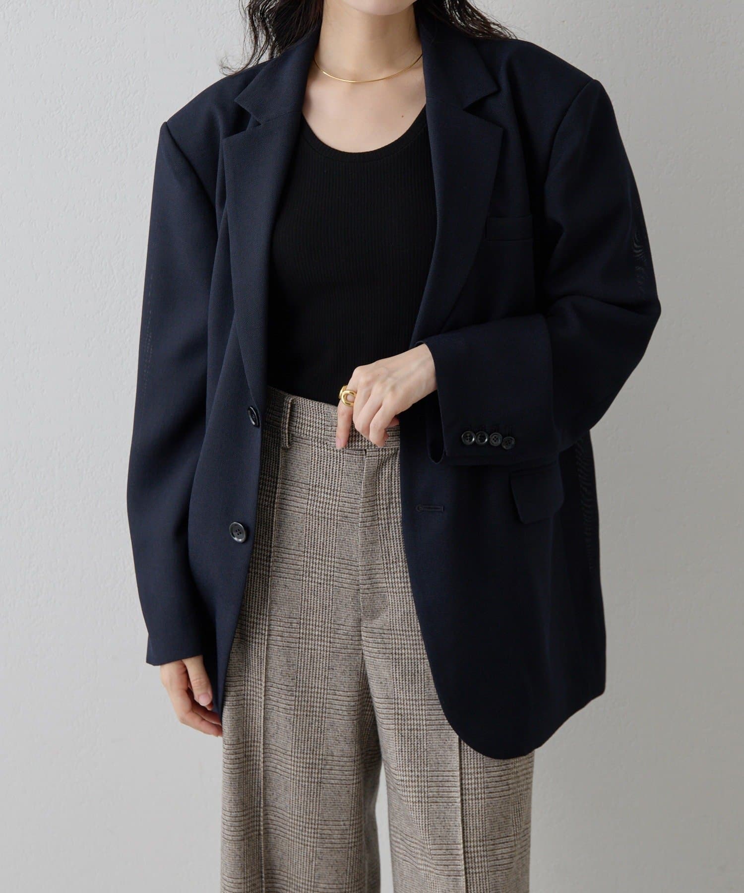 ■大きめな肩幅と厚めな肩パッドが特徴的なシルエットは、嬉しい小顔効果も◎。