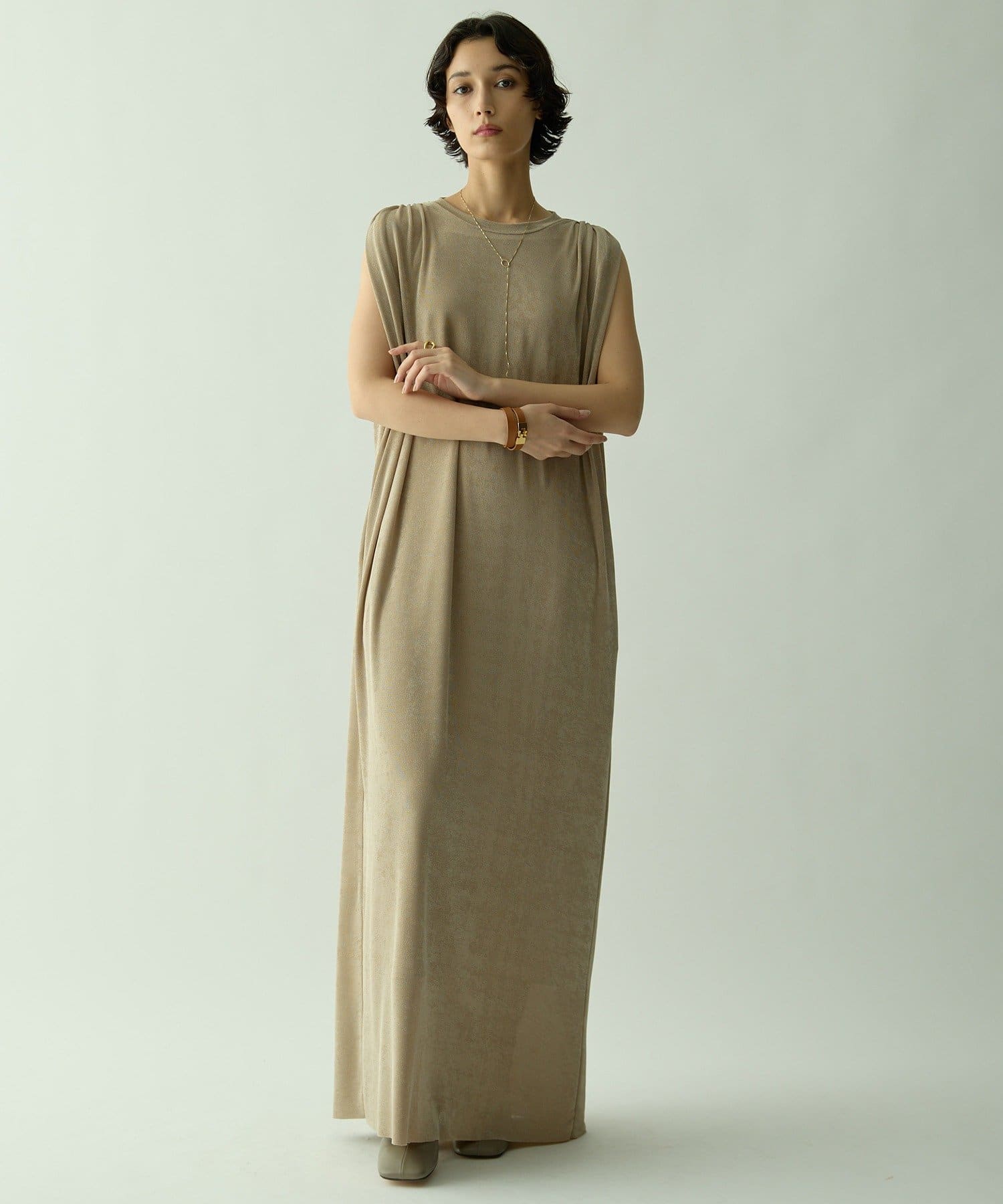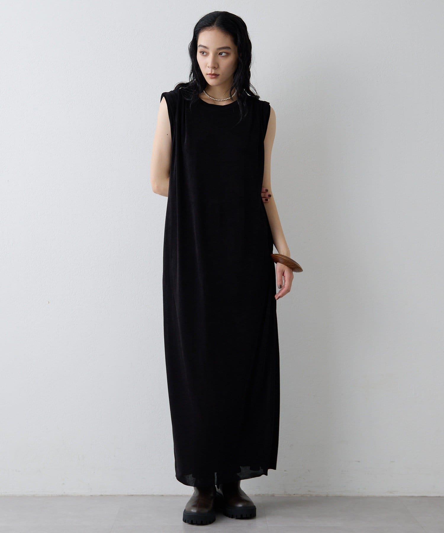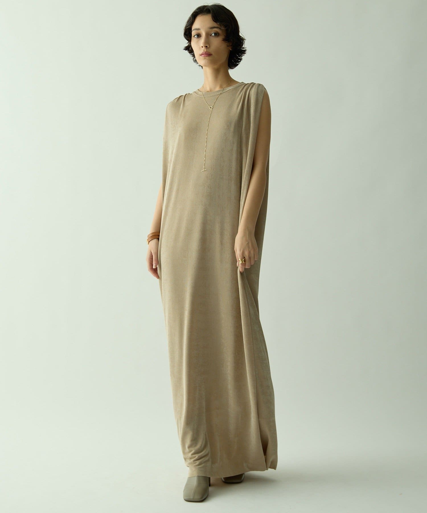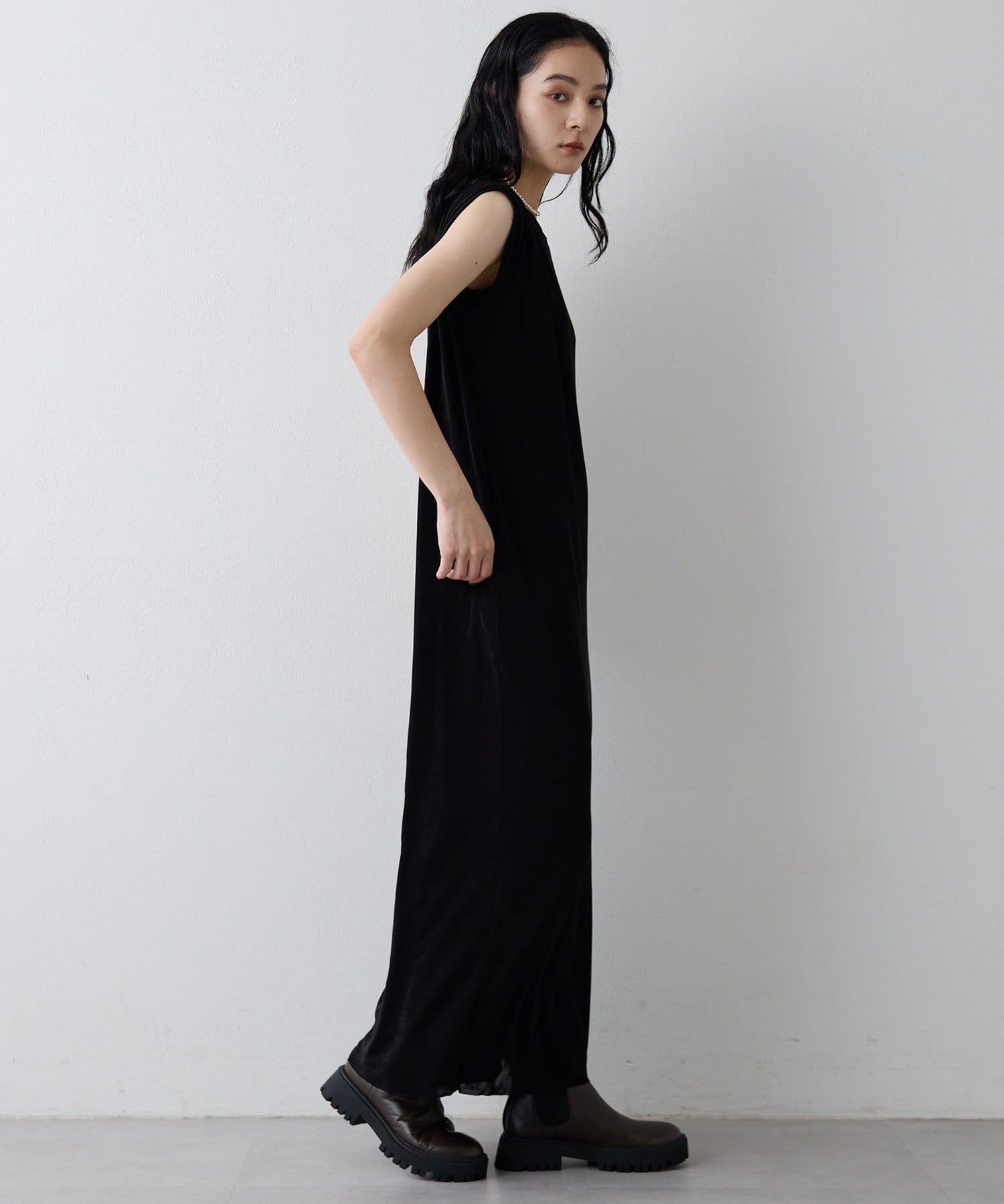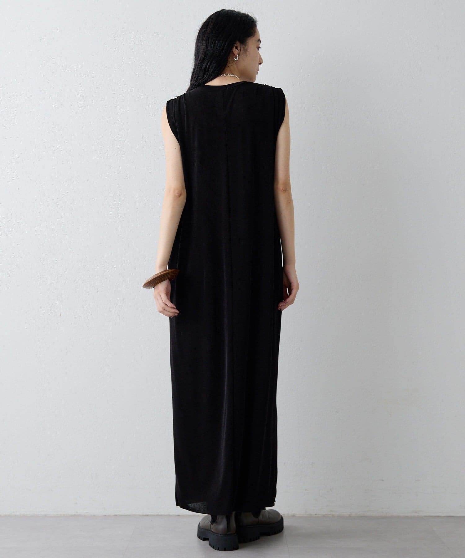 ■さらっとした落ち感とつやのある素材を使用したミニマルワンピース。