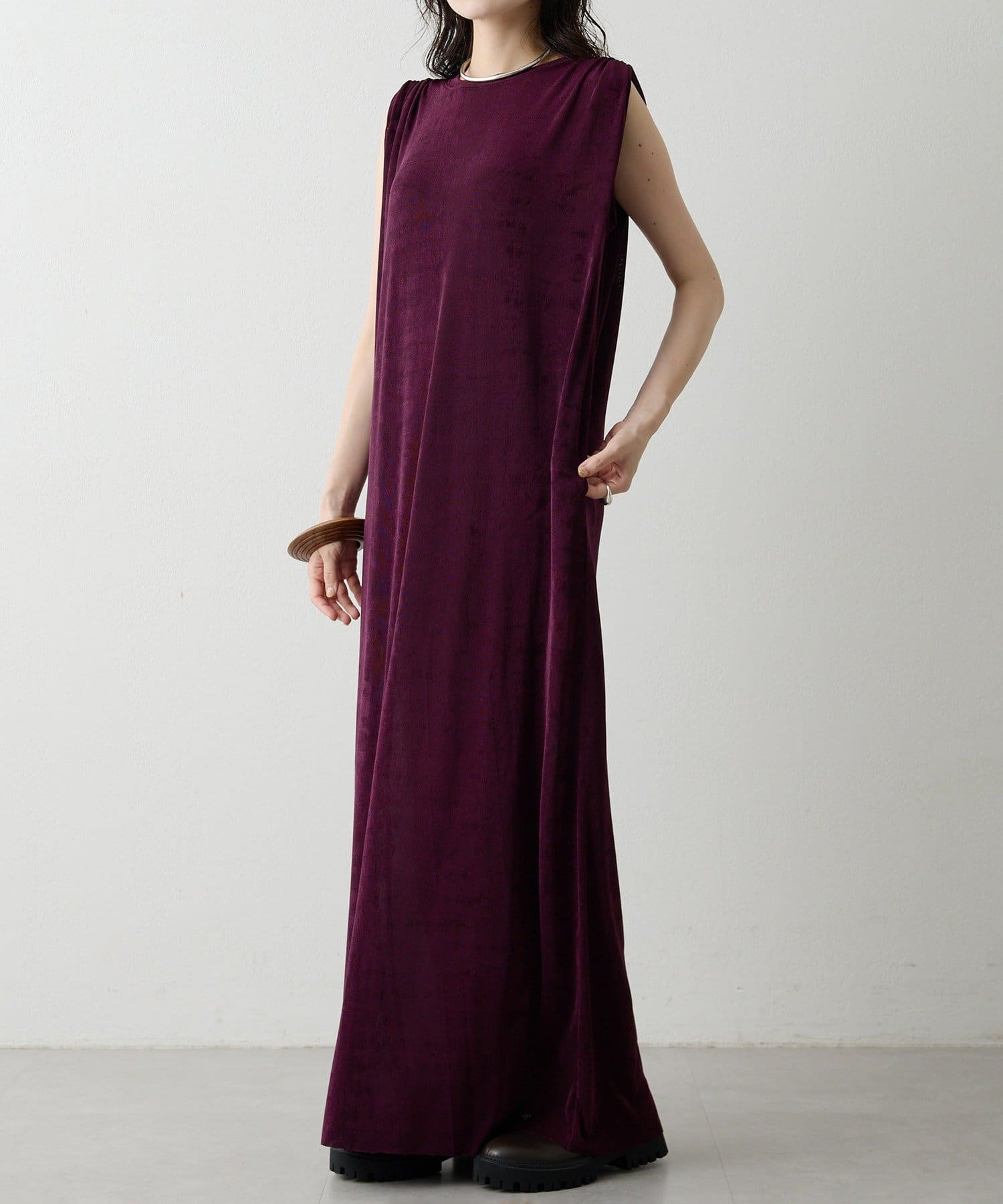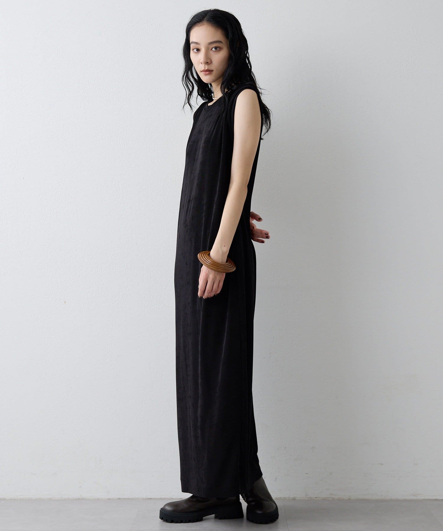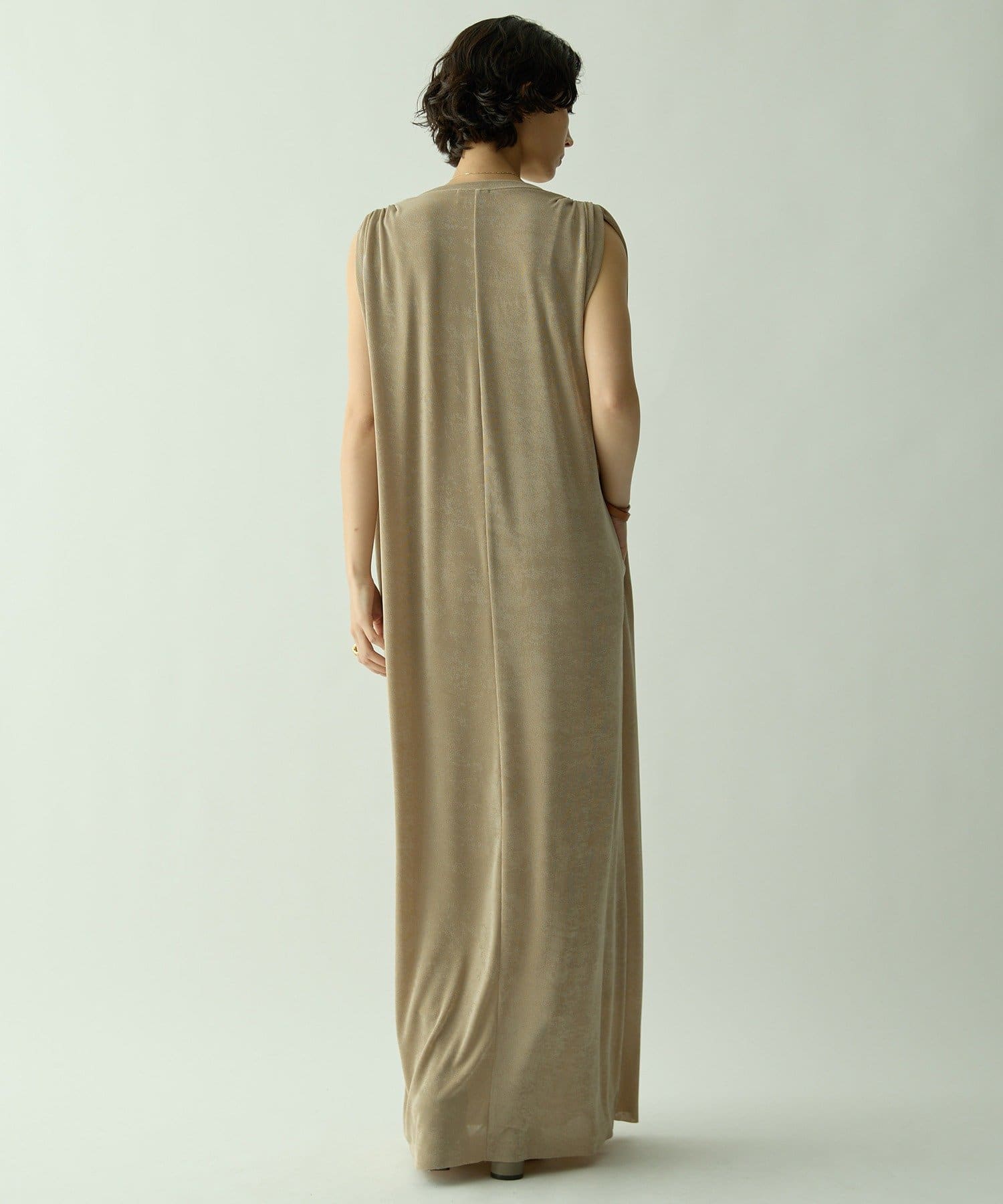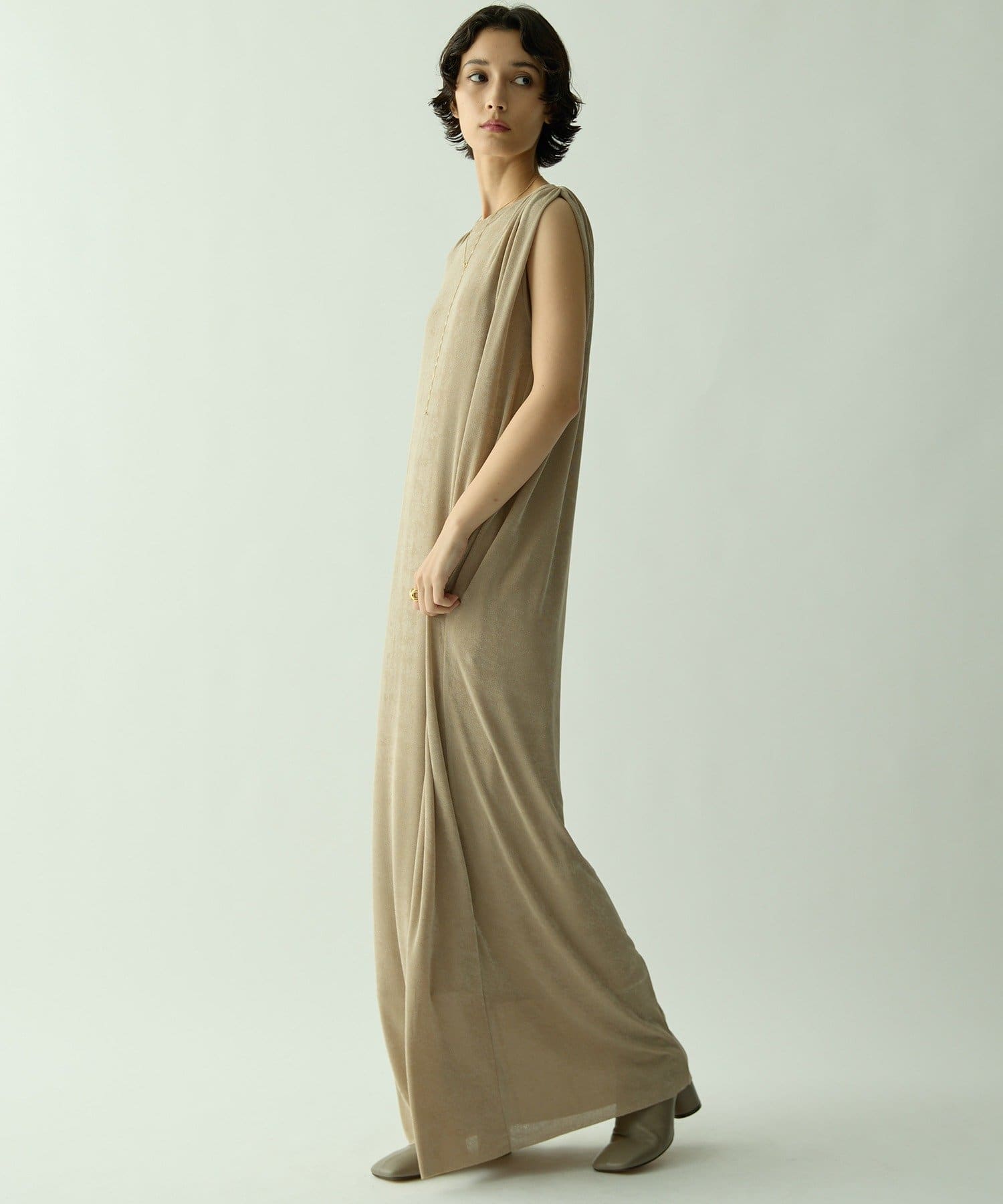 ■さらっとした落ち感とつやのある素材を使用したミニマルワンピース。