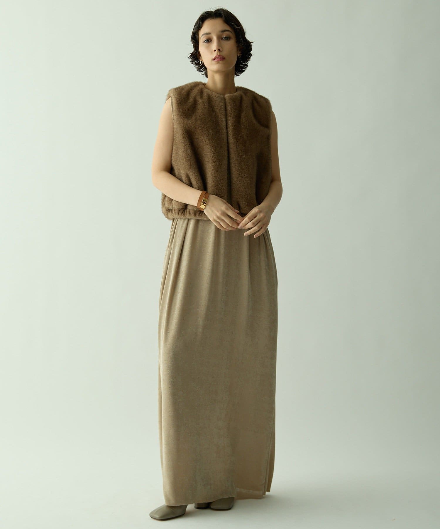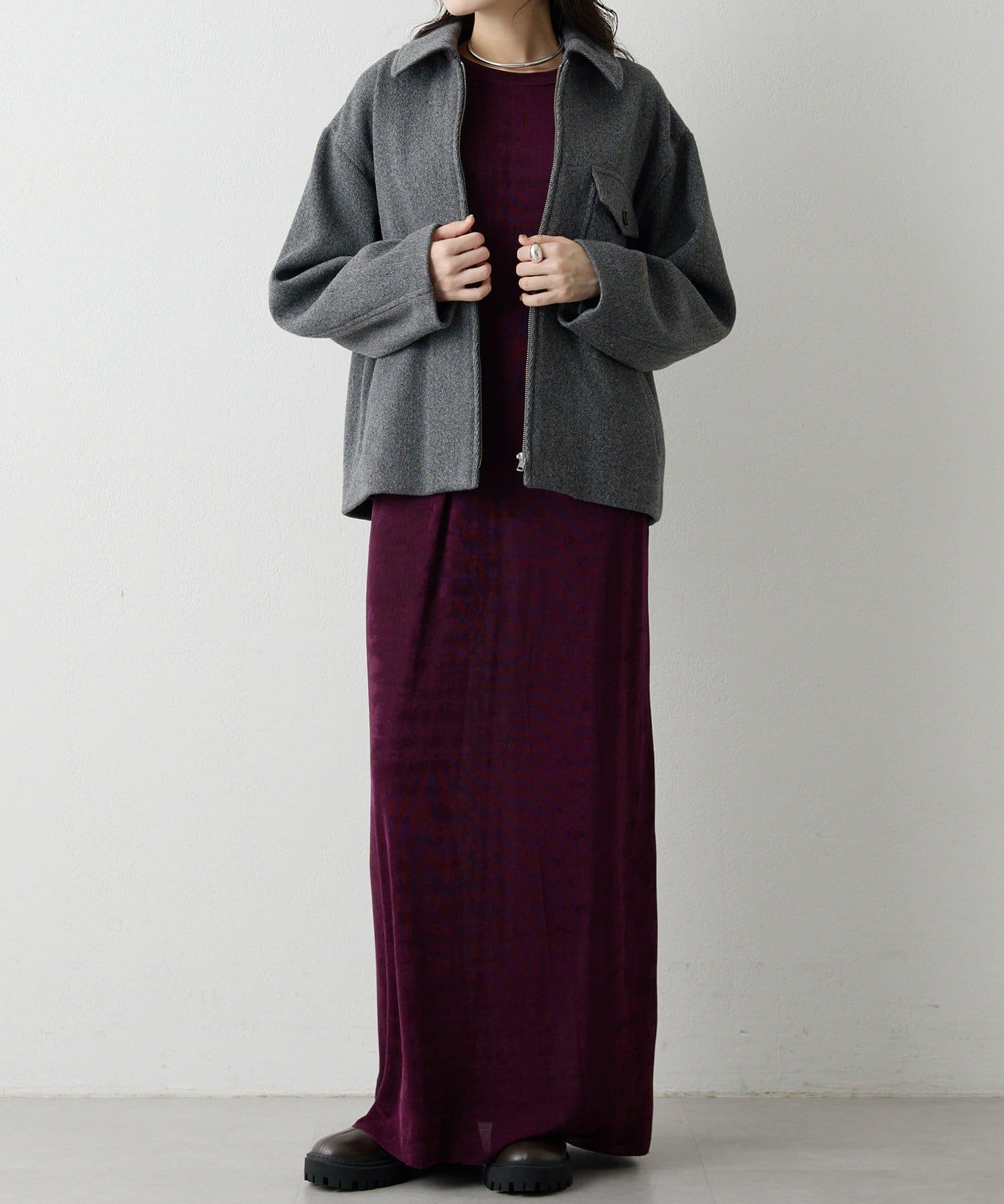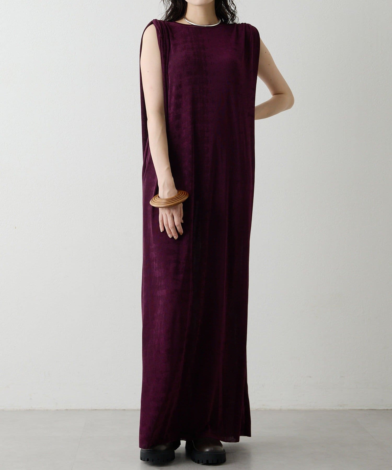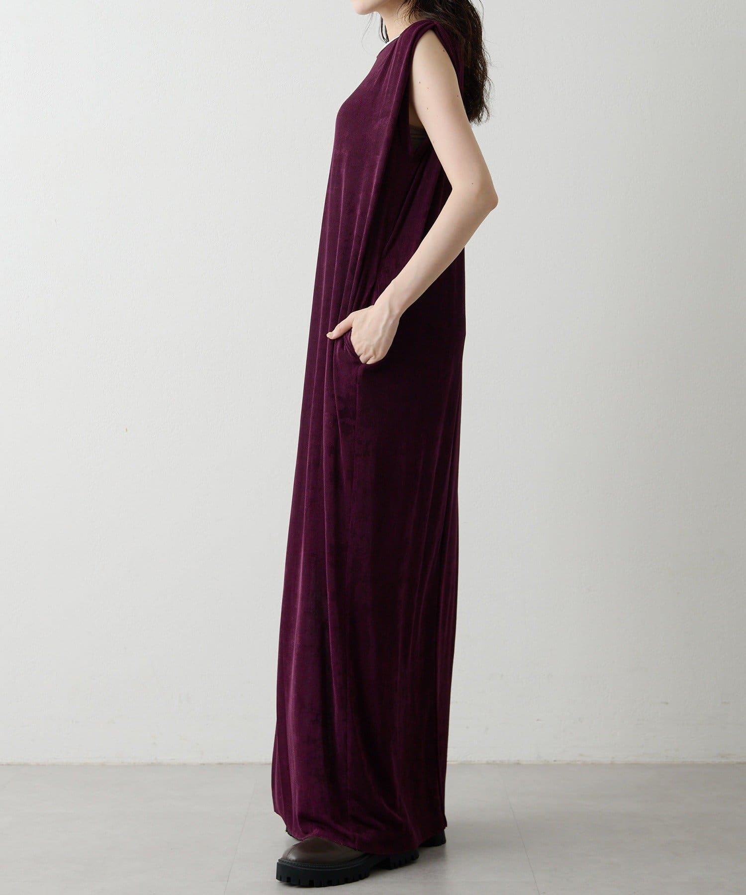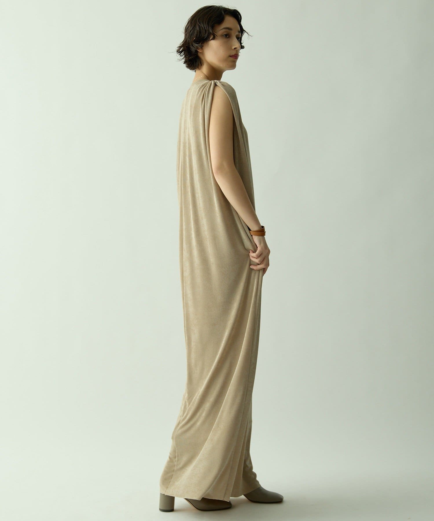 ■さらっとした落ち感とつやのある素材を使用したミニマルワンピース。