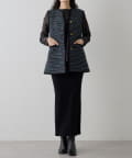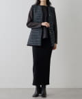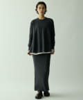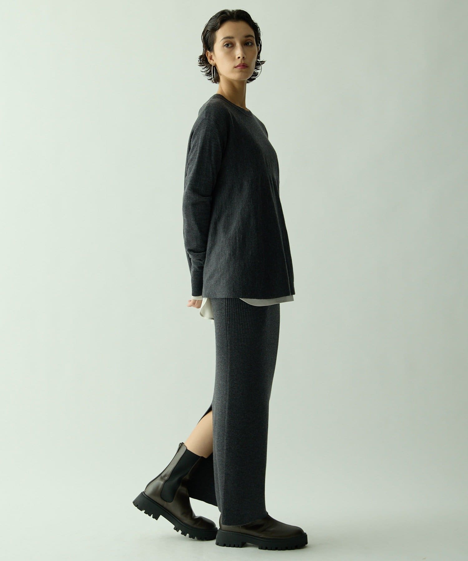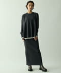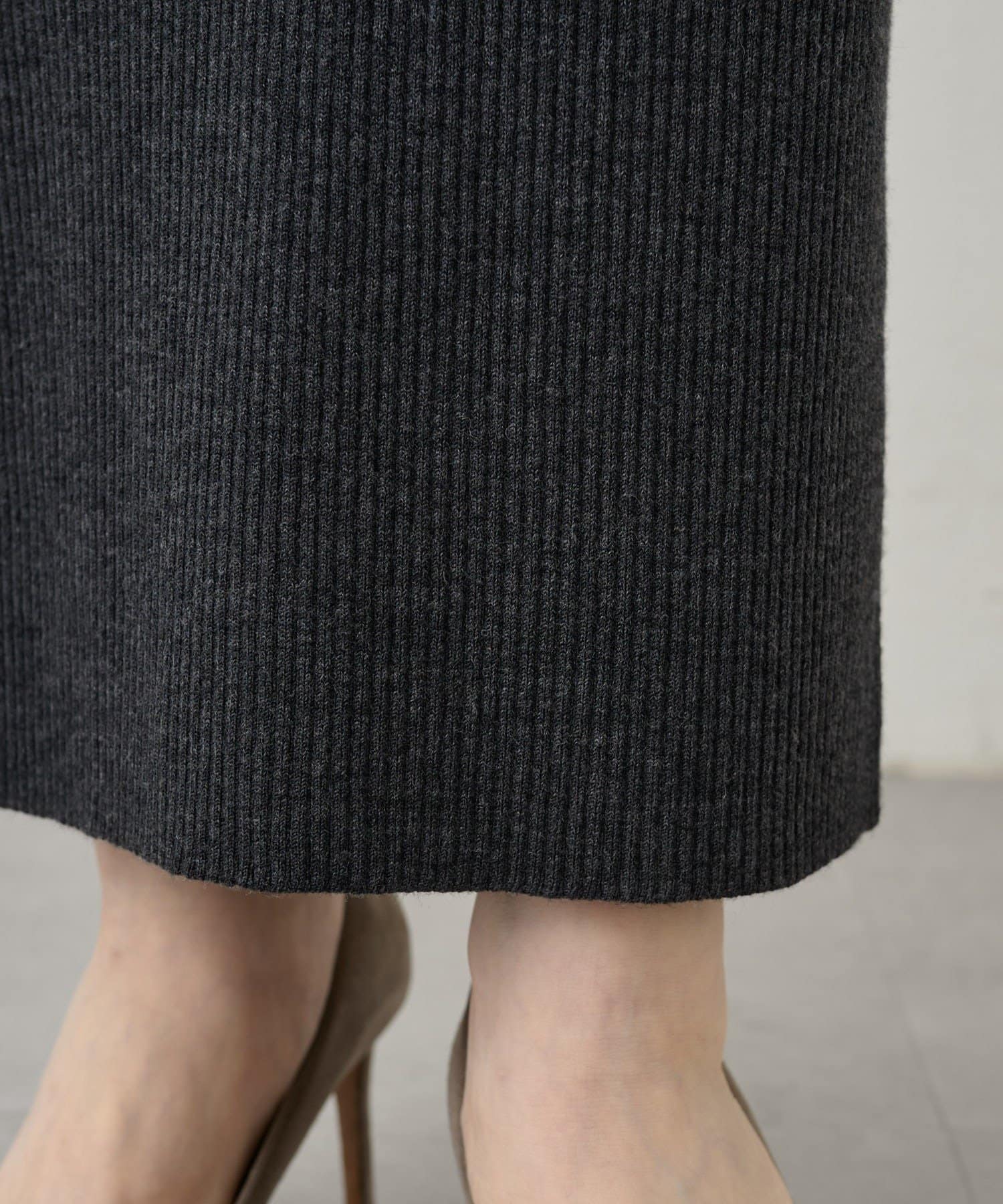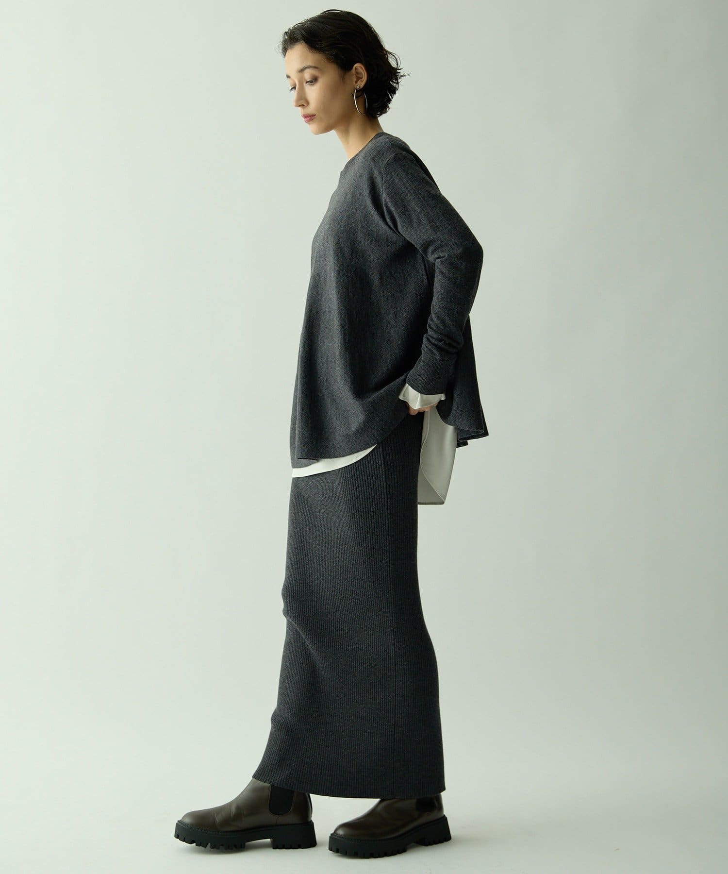 綺麗なタイトシルエットで細見え効果も◎。タートル裾ラウンドニットと同じ素材感なのでセットアップとしての着用もたのしめます。