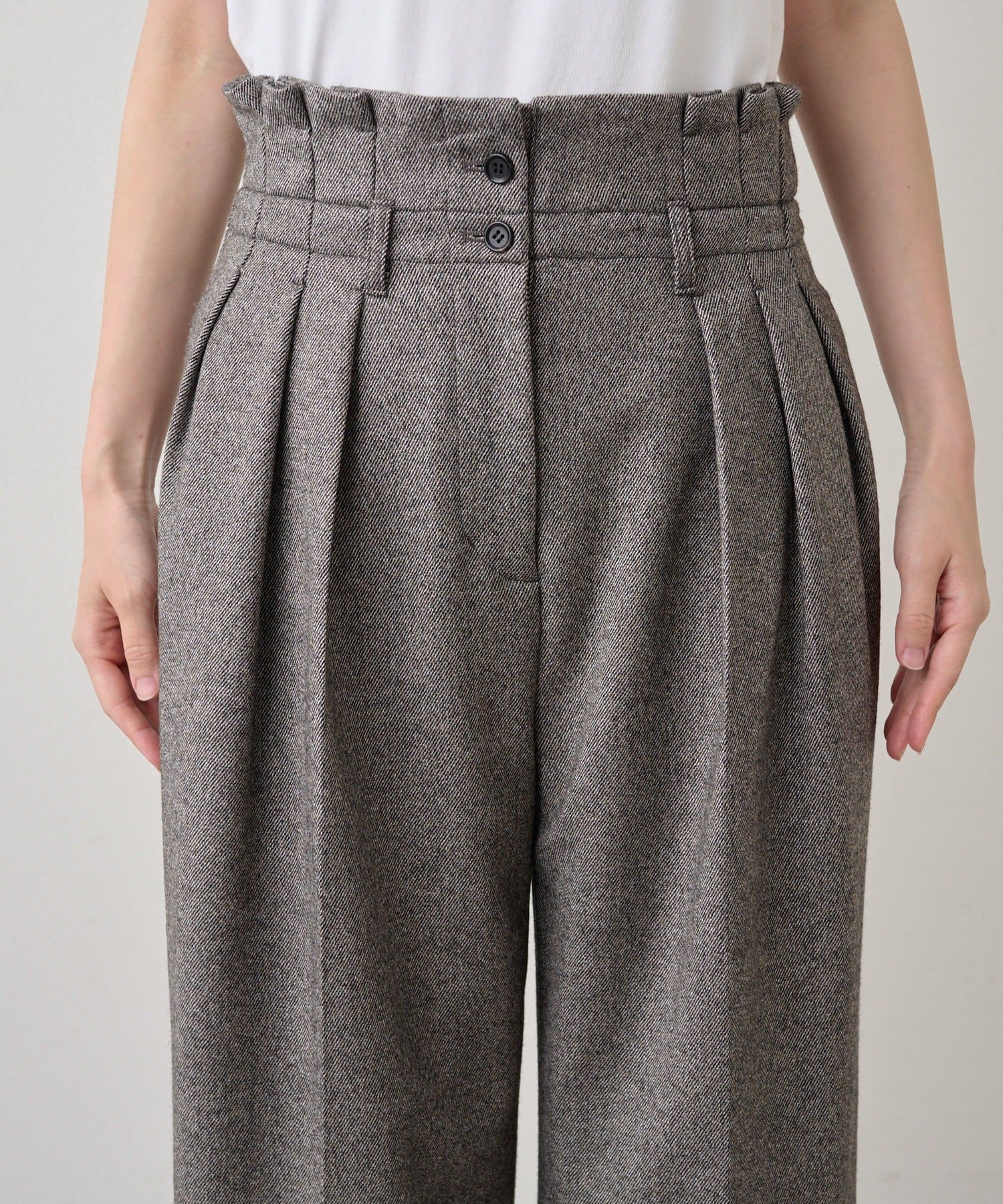 ■ウエストの3本タックデザインが特徴的なワイドパンツ。