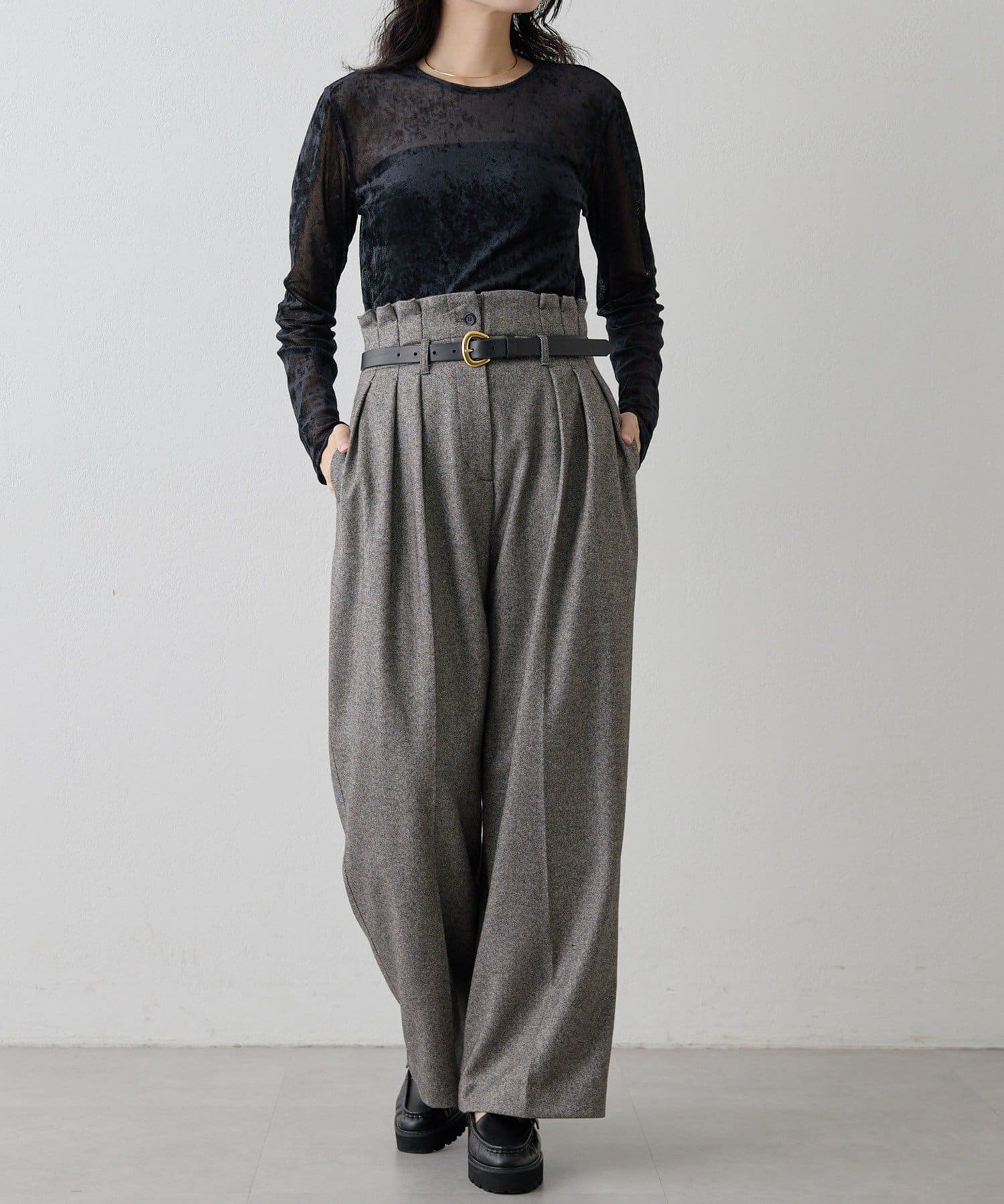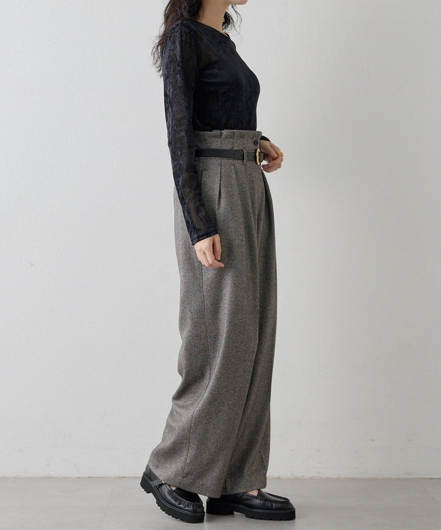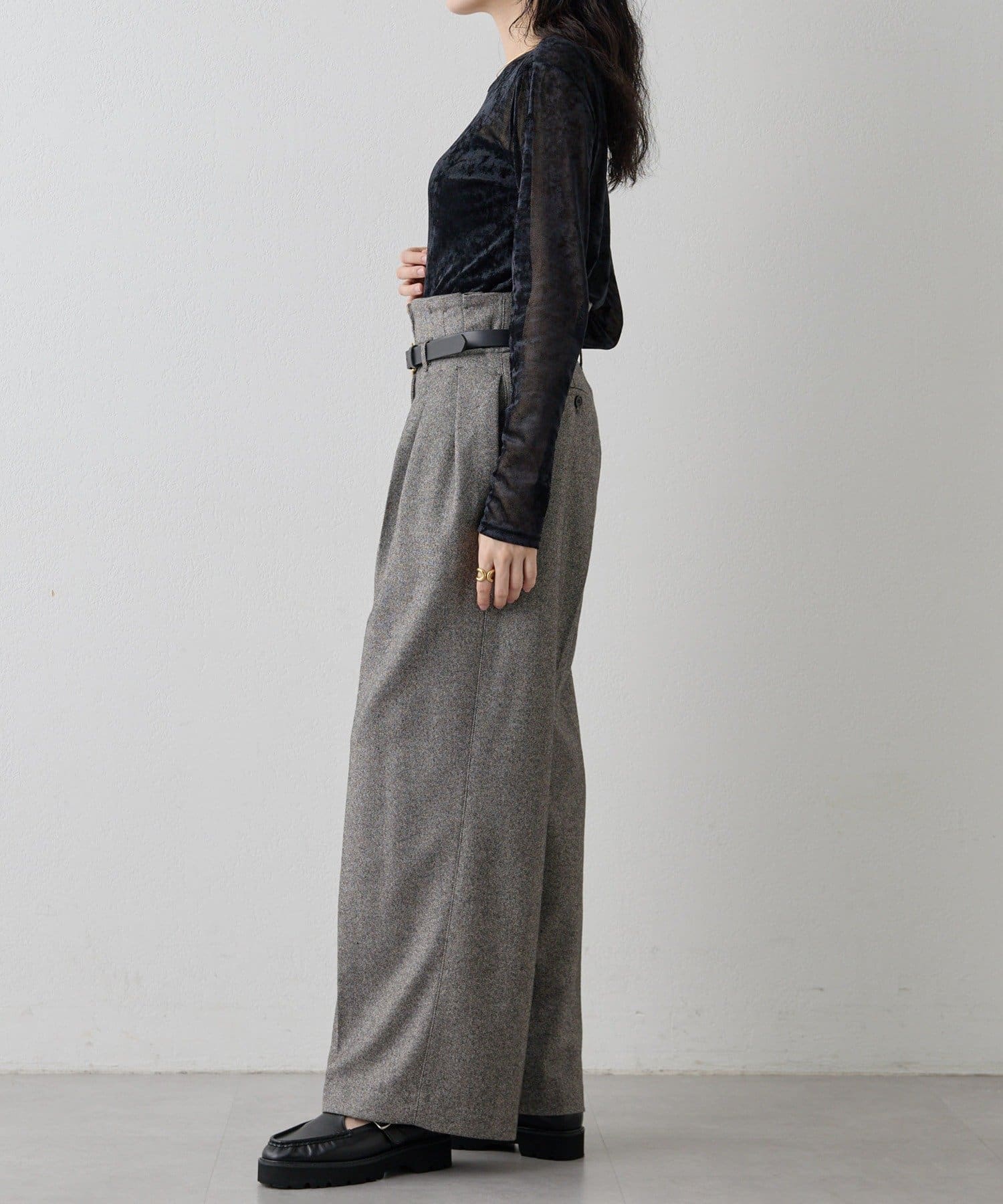 《セットアップ対応可》ツイードハイウエストワイドパンツ