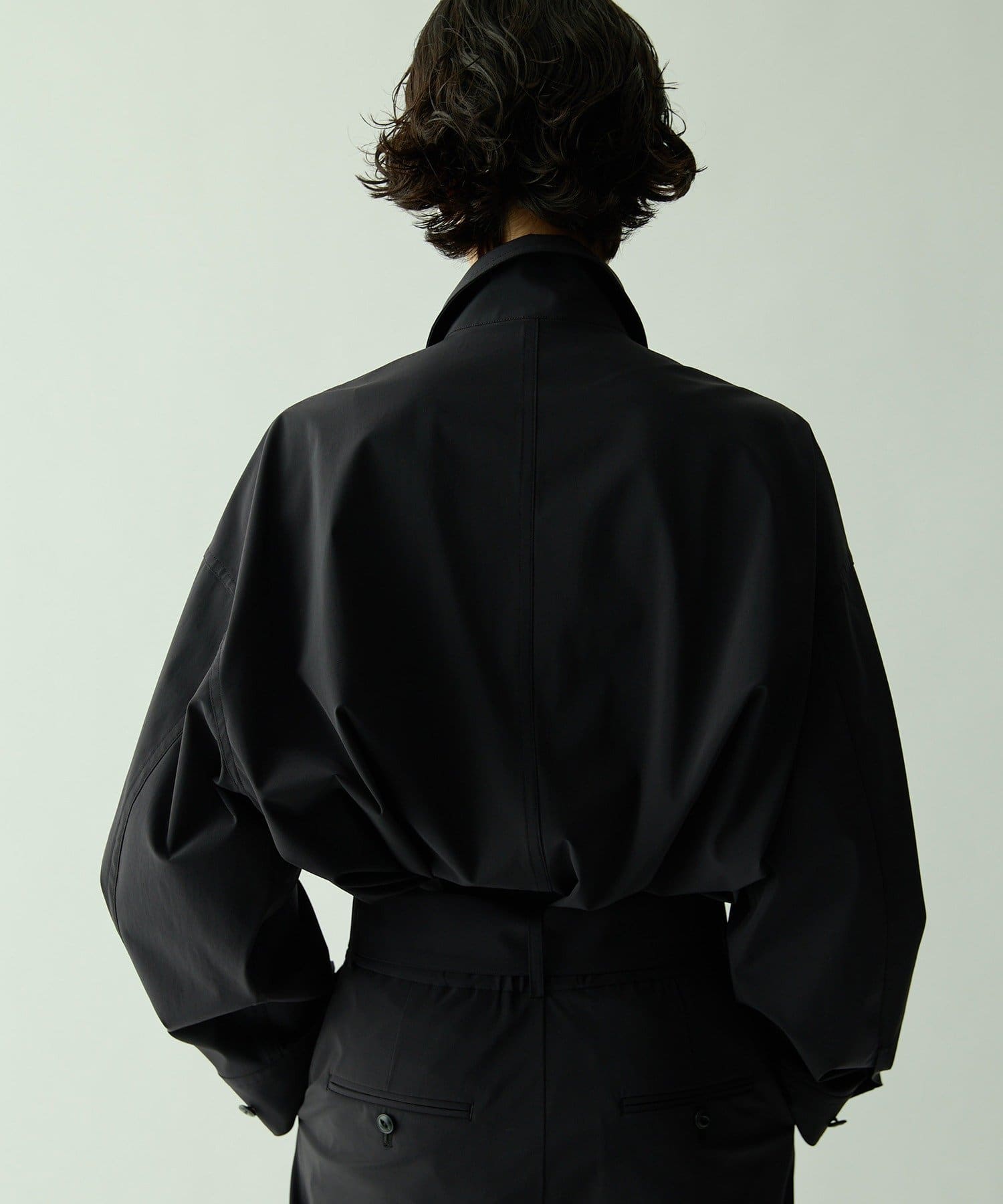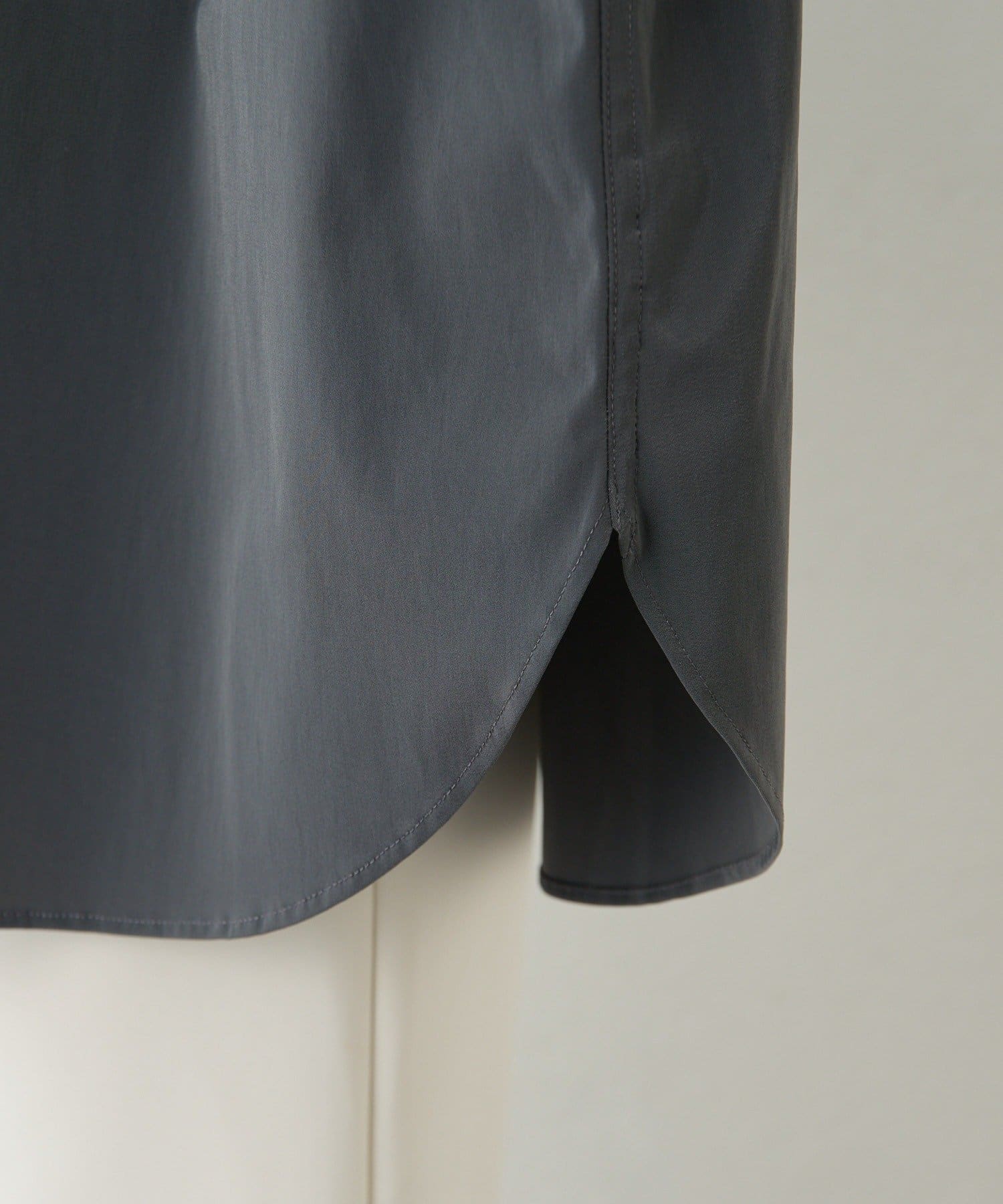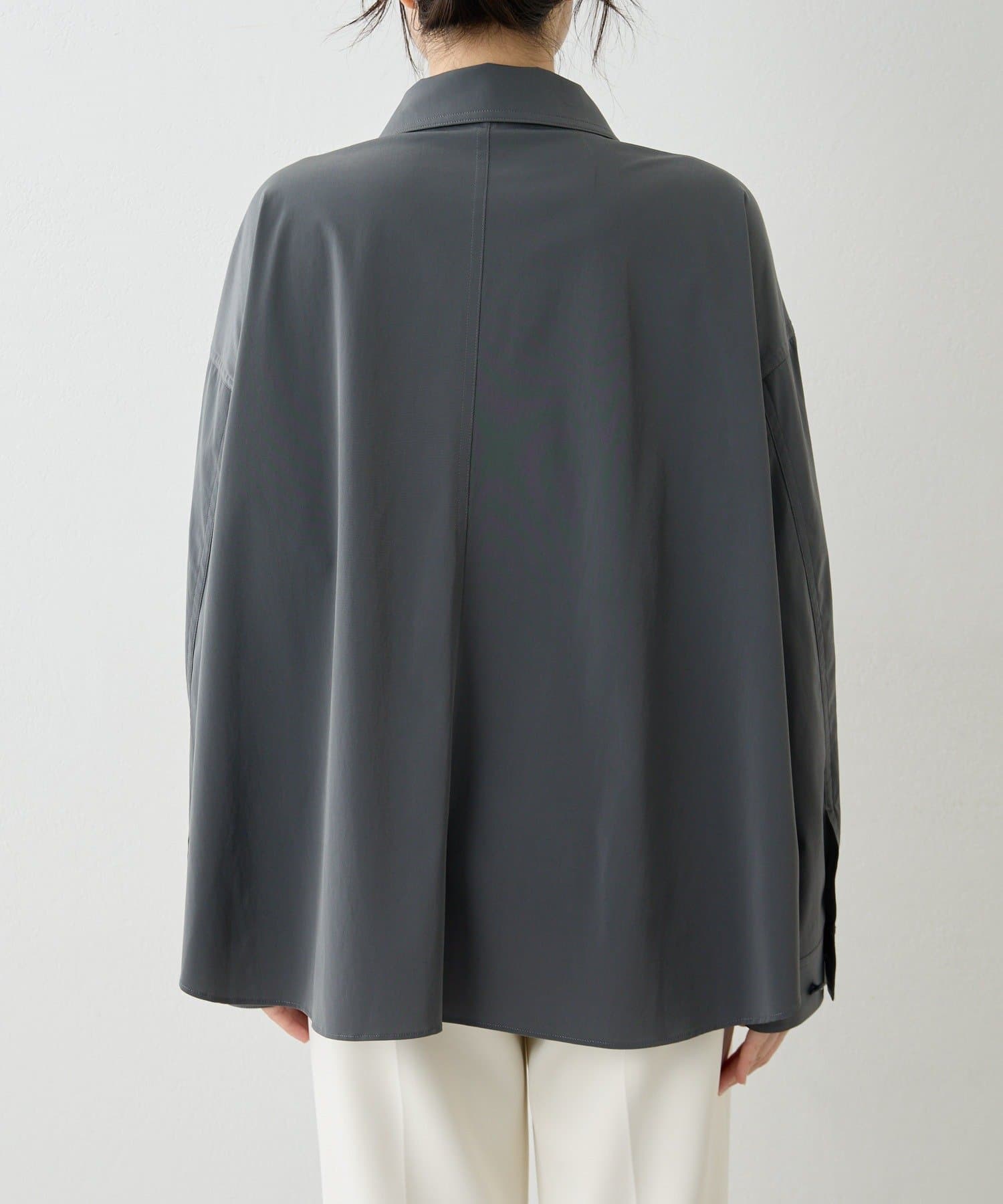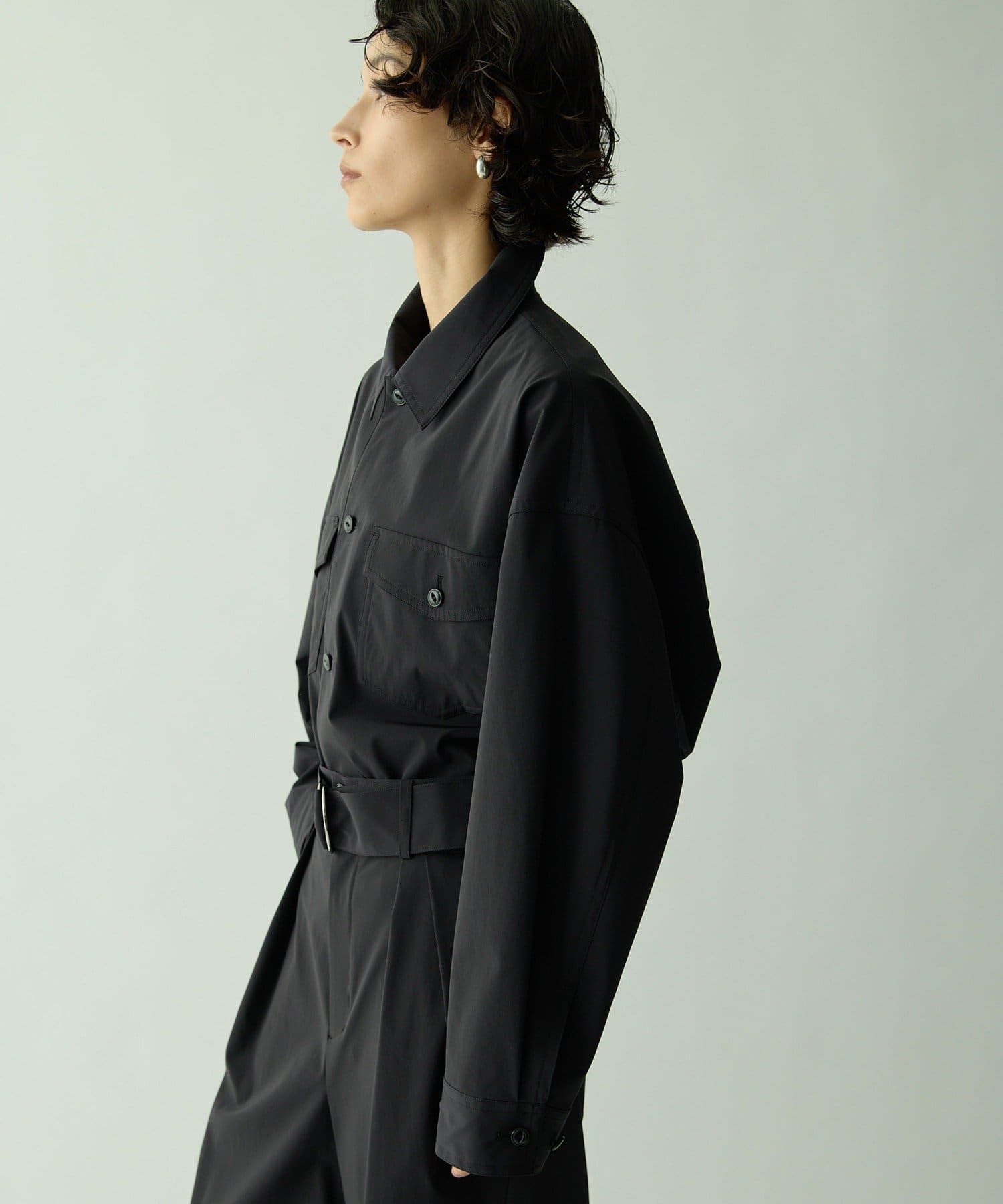 ■撥水加工が施されたナイロン混生地を使用したオーバーシャツ。