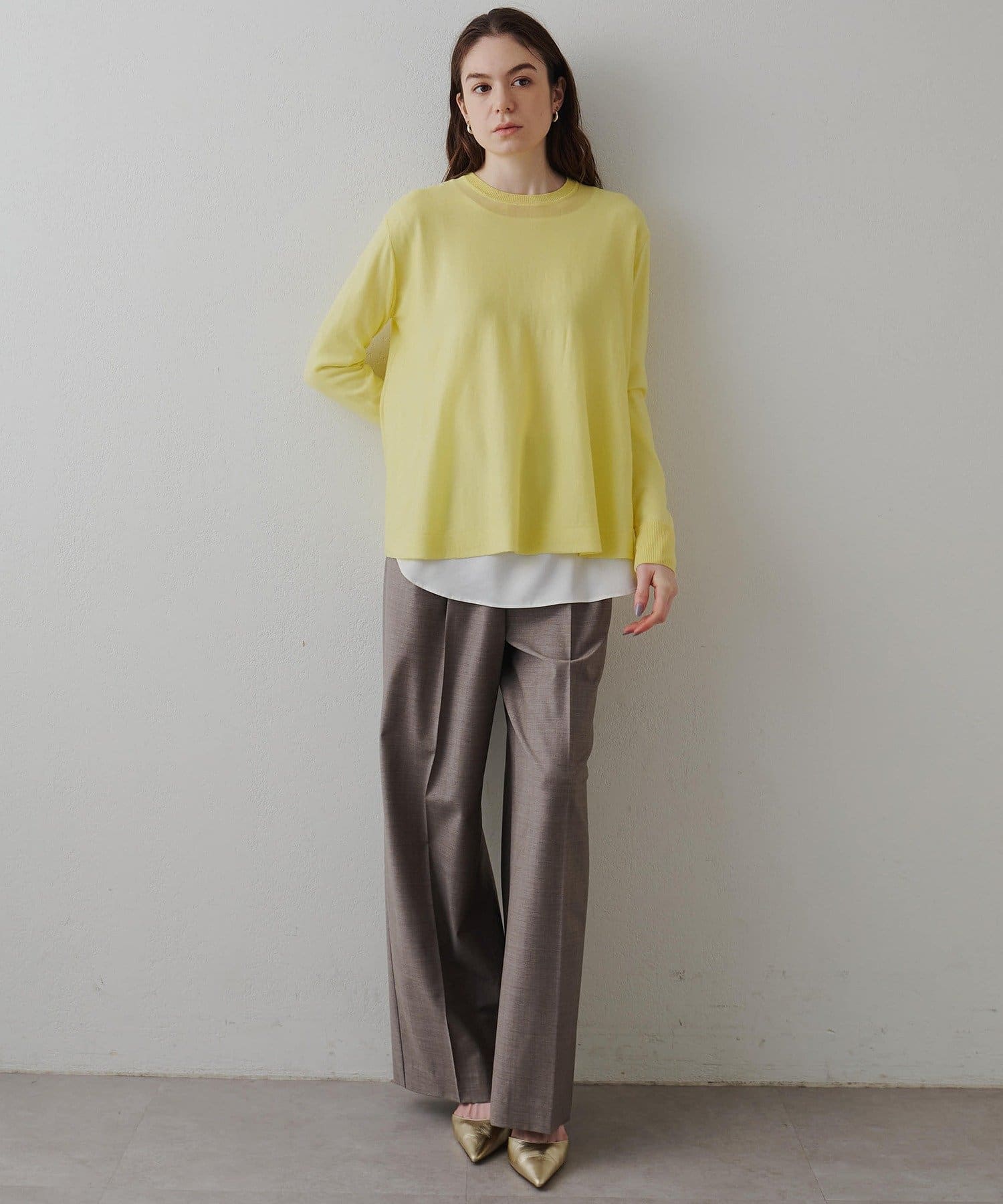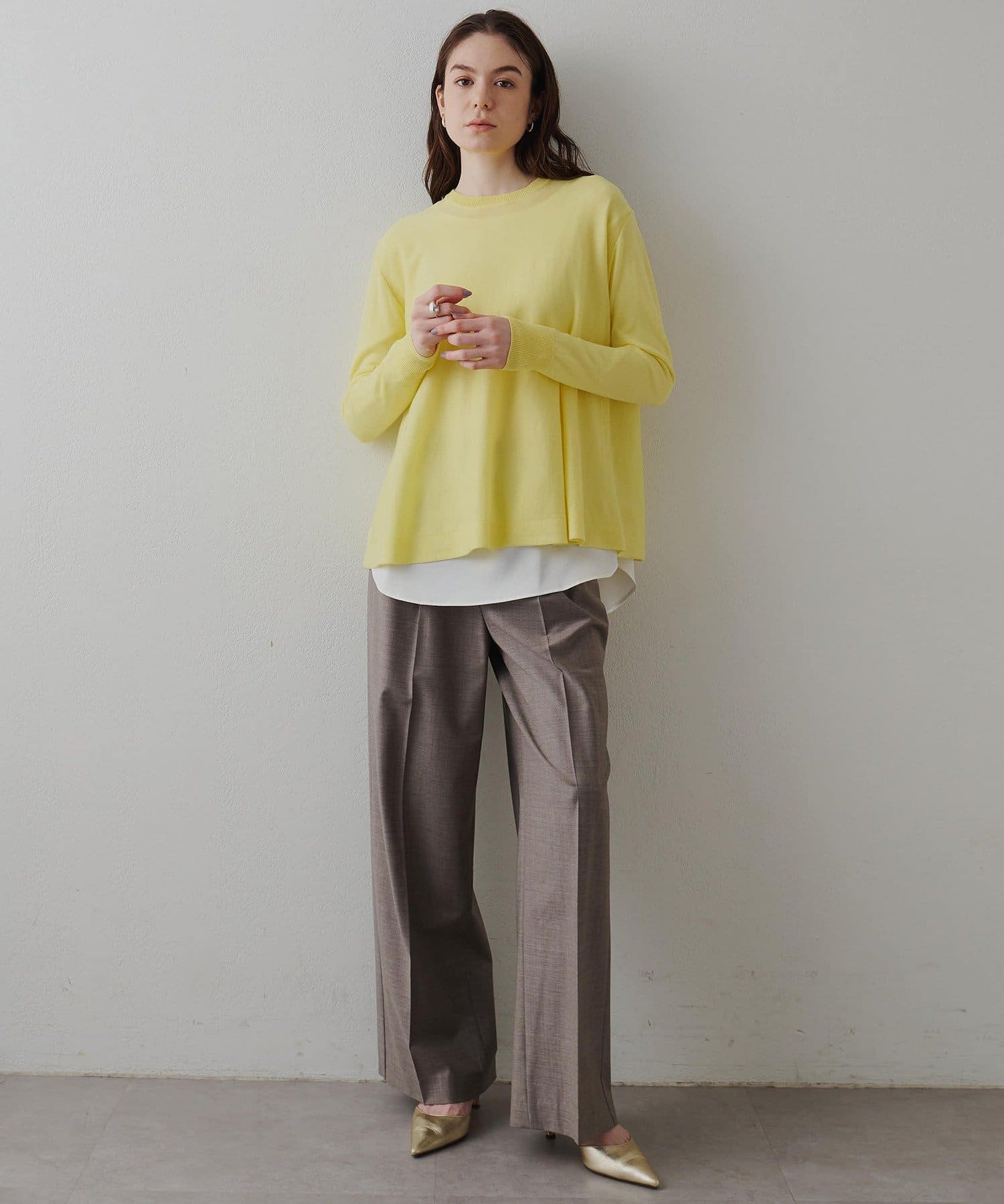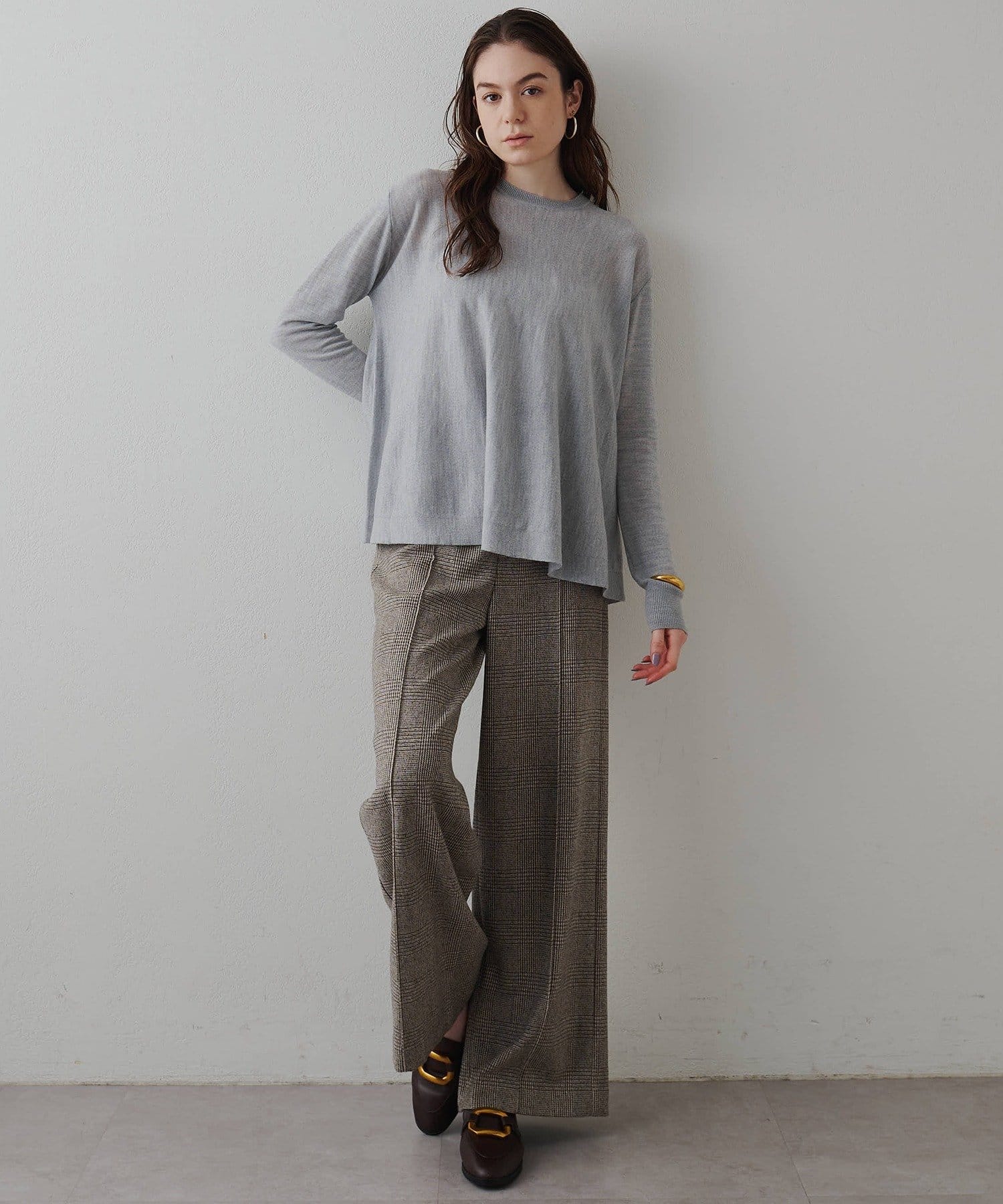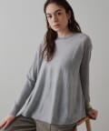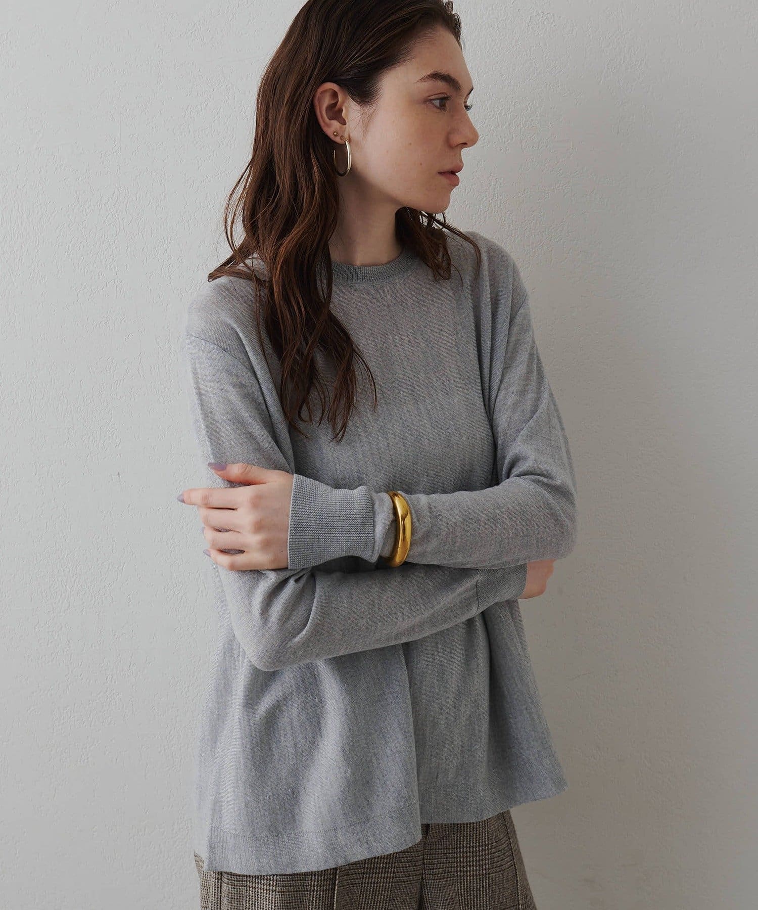 ■裾に向かって広がるAラインシルエットのクルーネックニットプルオーバー。