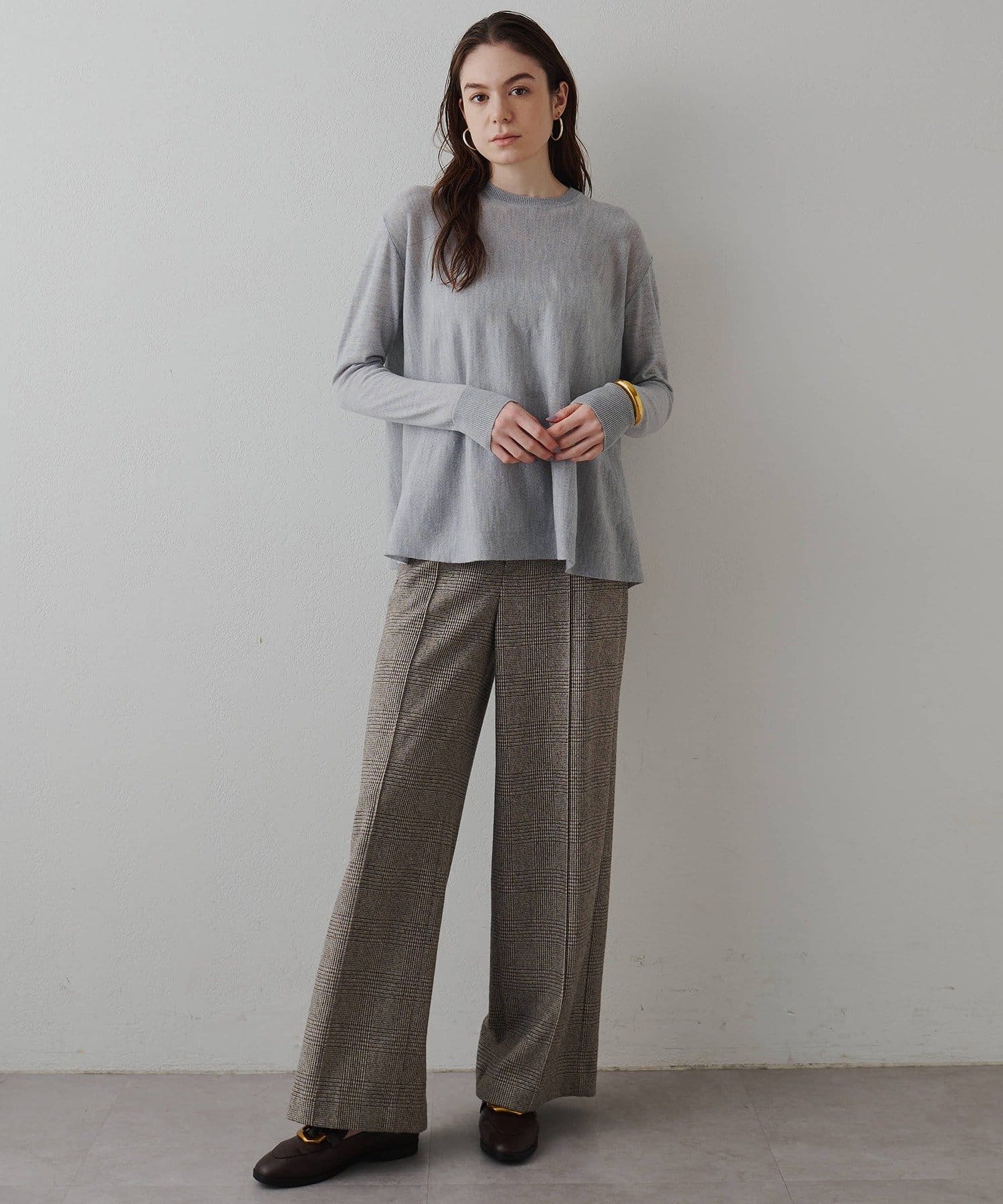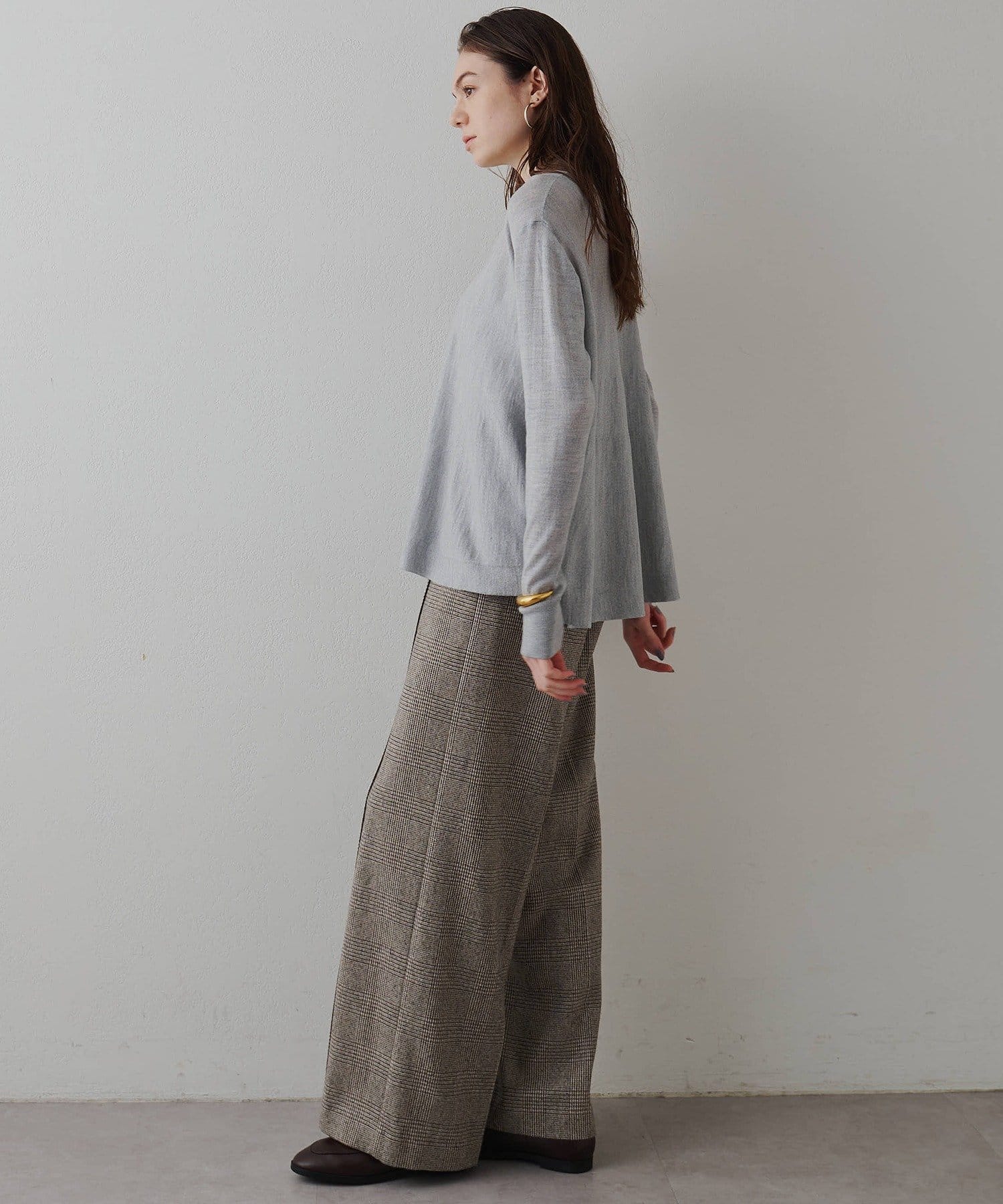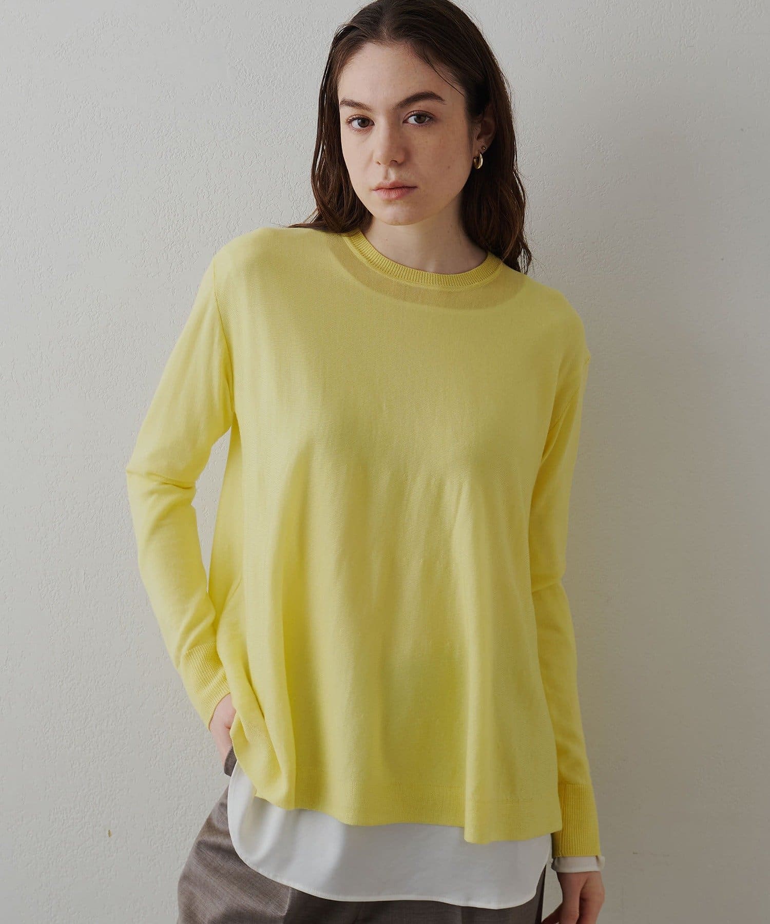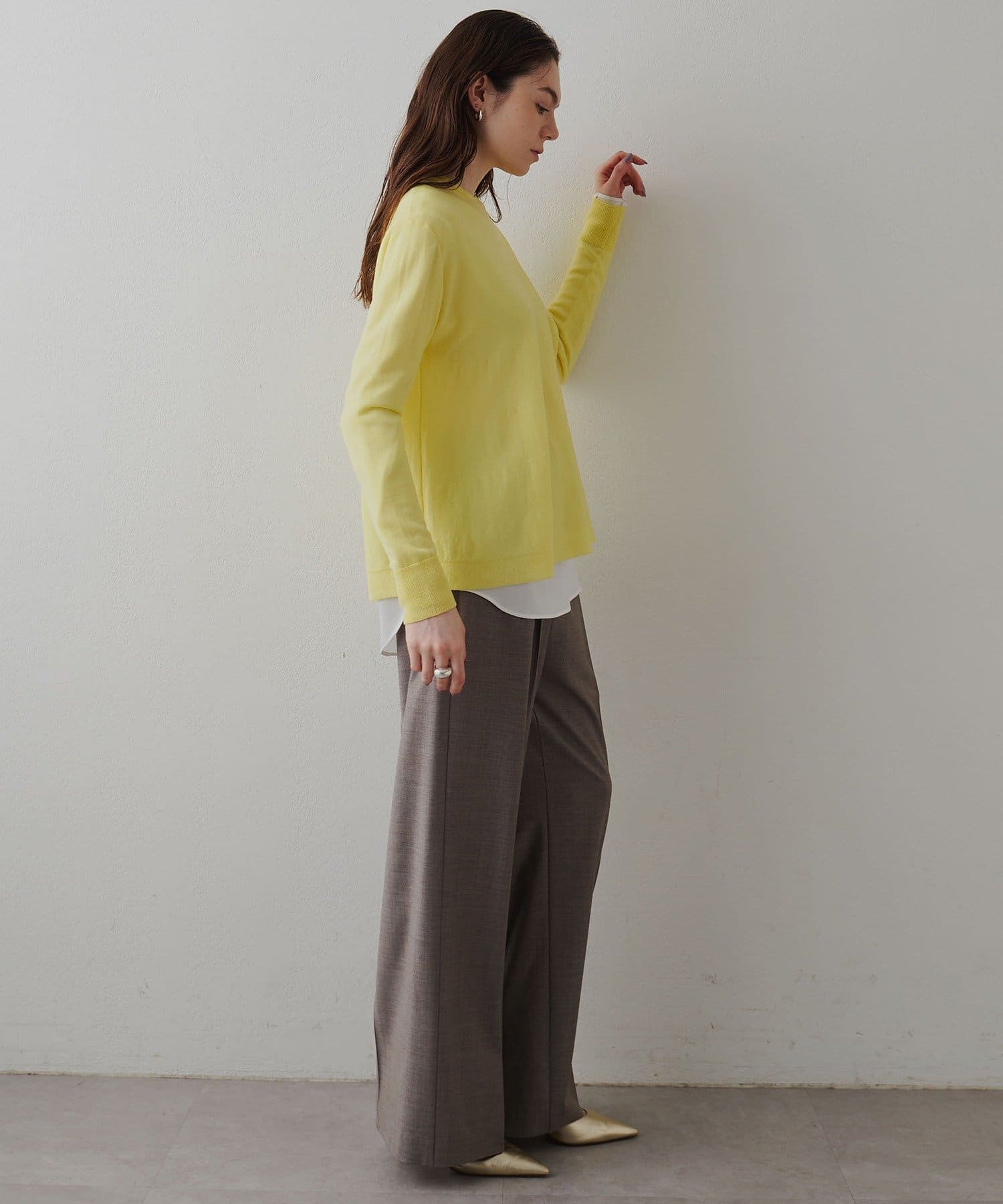 ■裾に向かって広がるAラインシルエットのクルーネックニットプルオーバー。
