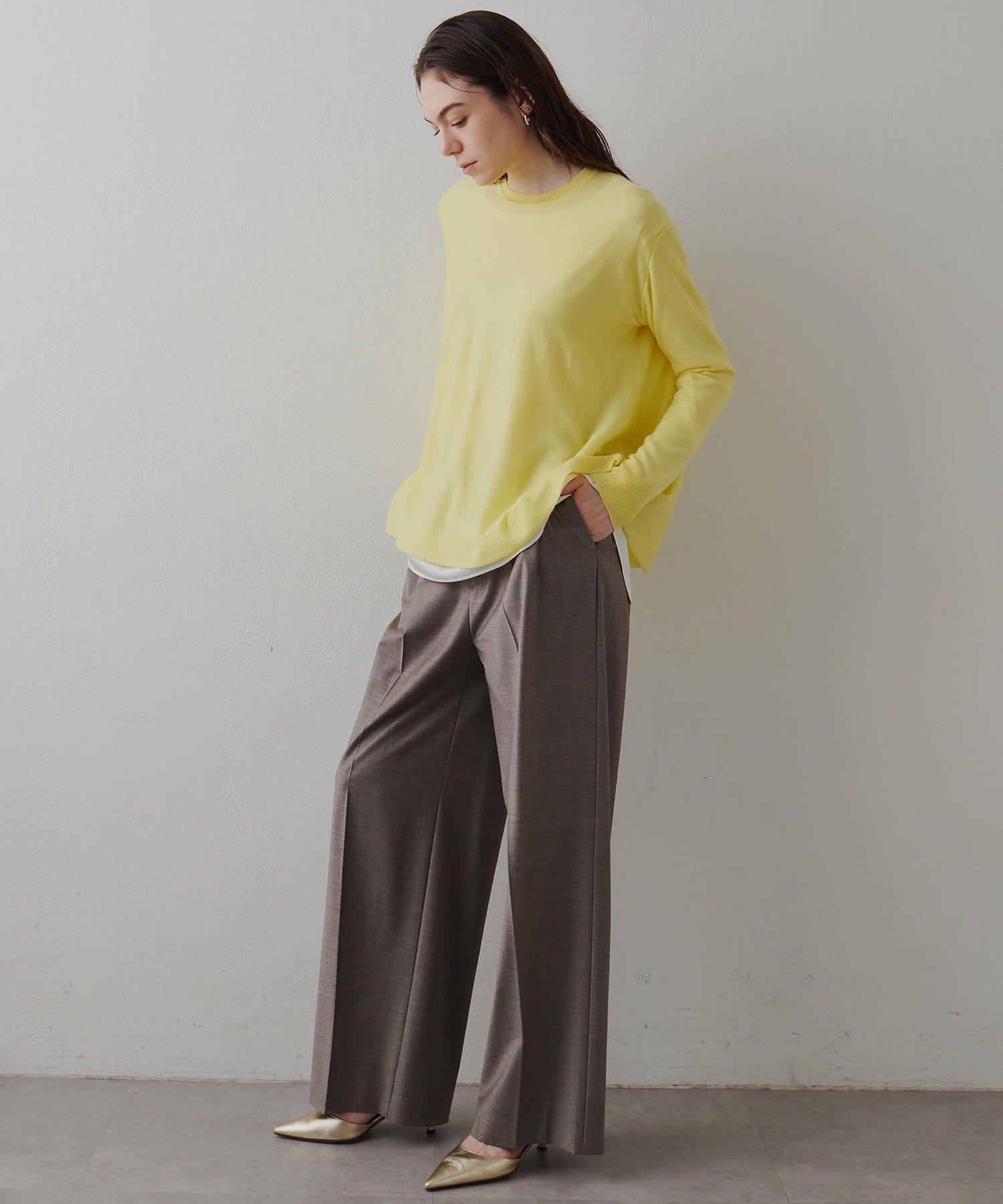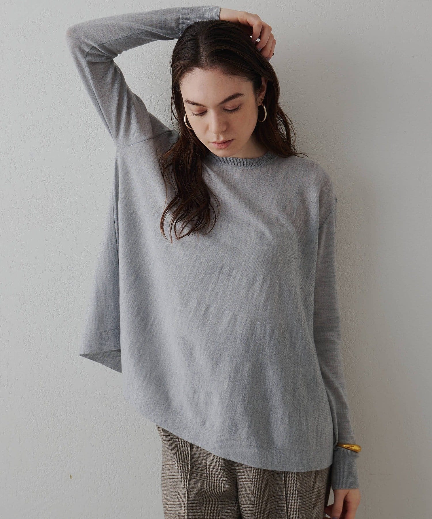 店頭でも人気のクルー裾ラウンドニット。お尻や腰回りもカバーしてくれる、優秀なニット。さらさらの肌触りです。