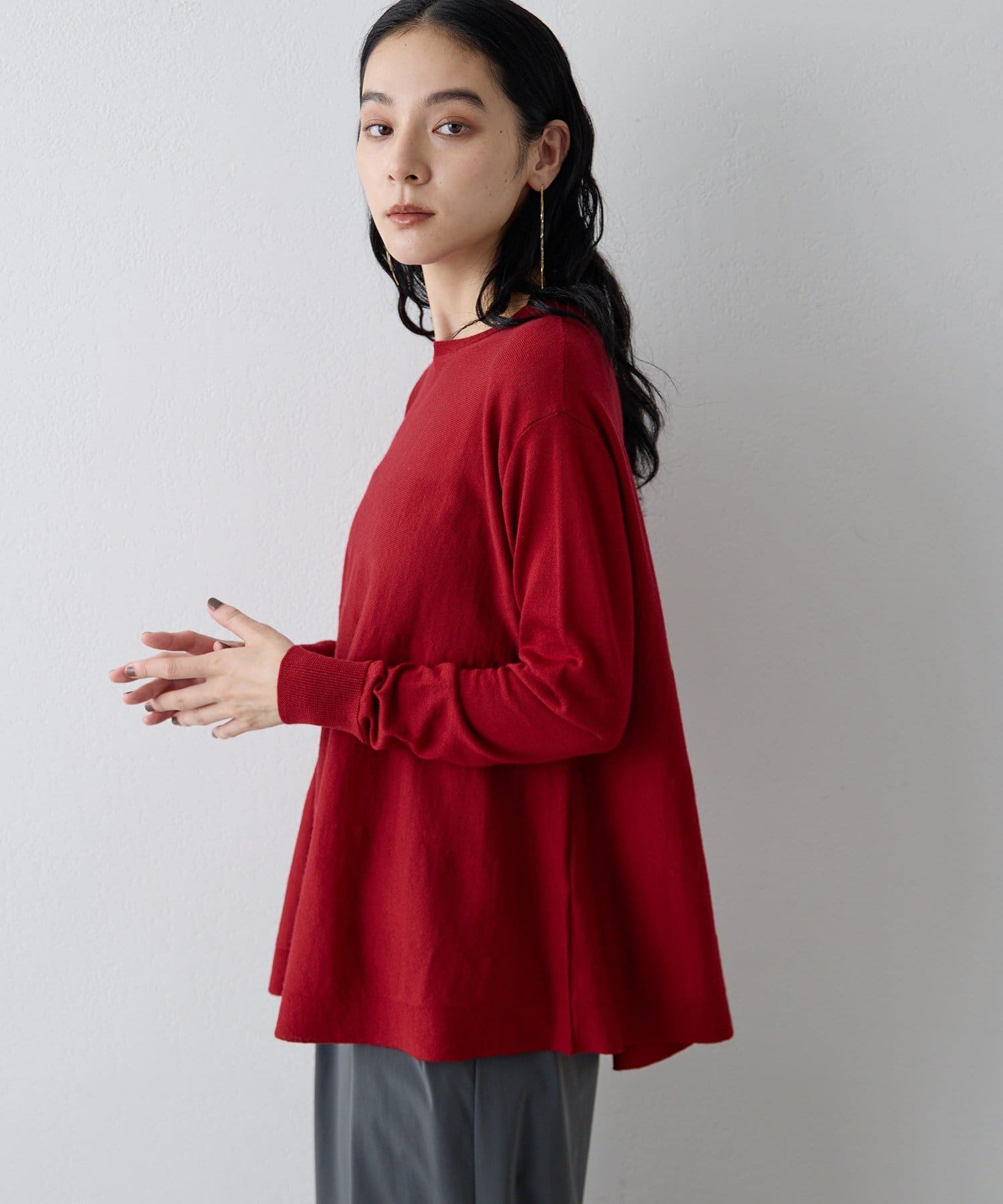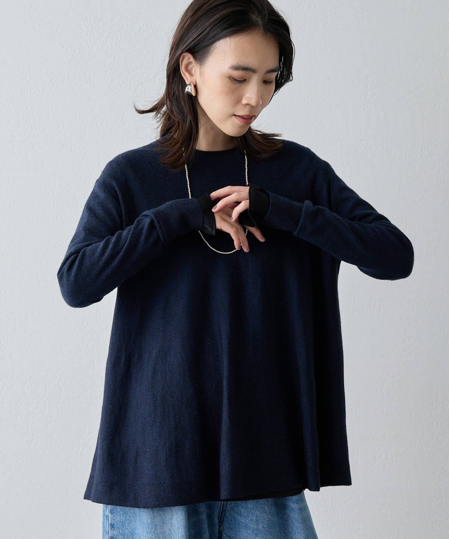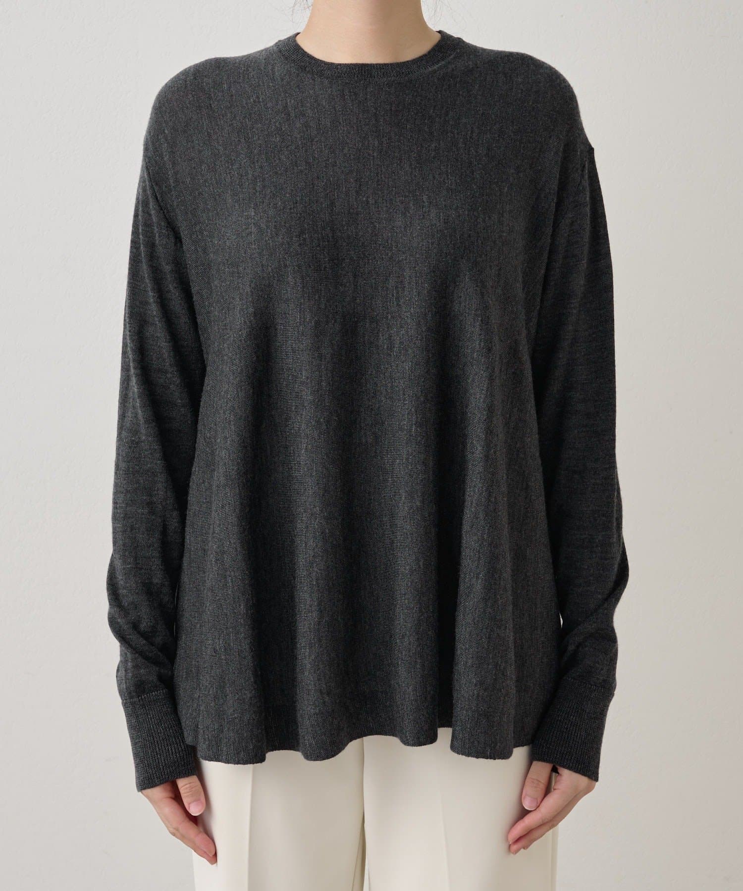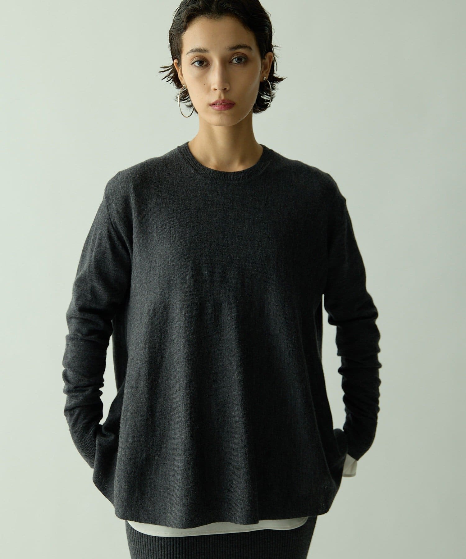 ■裾に向かって広がるAラインシルエットのクルーネックニットプルオーバー。