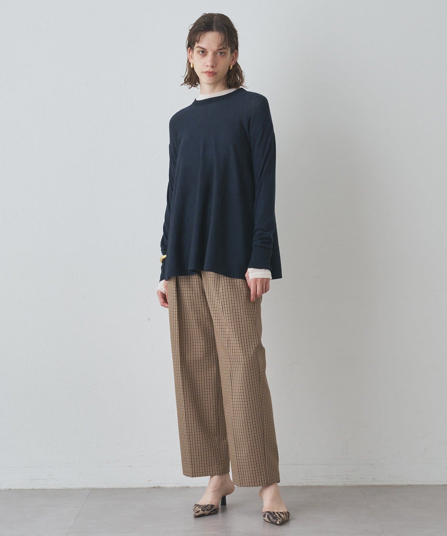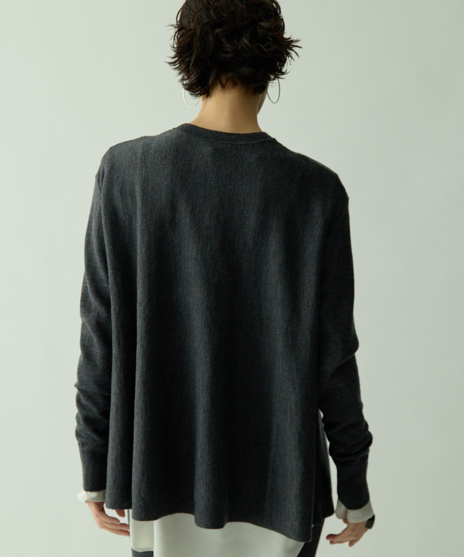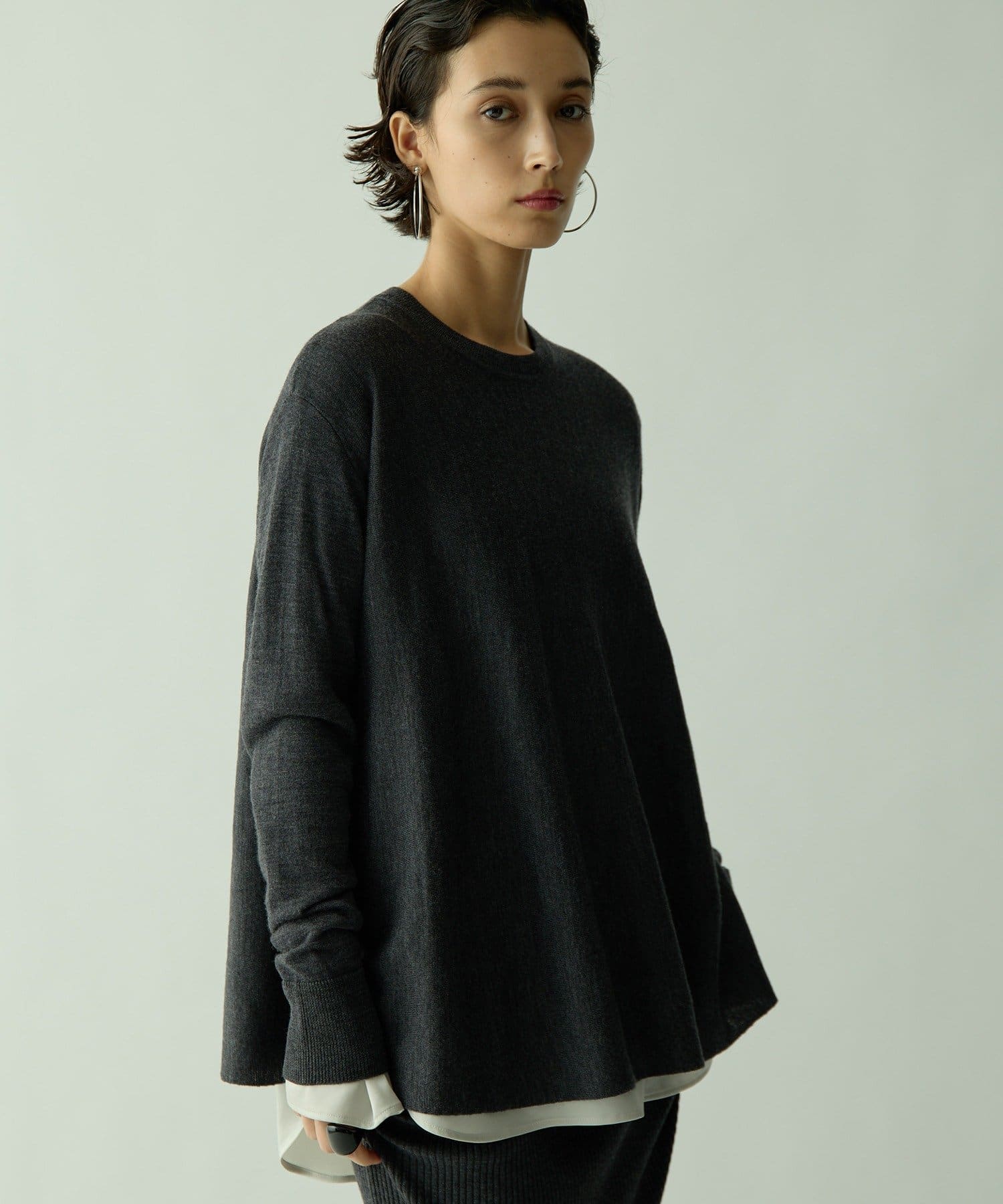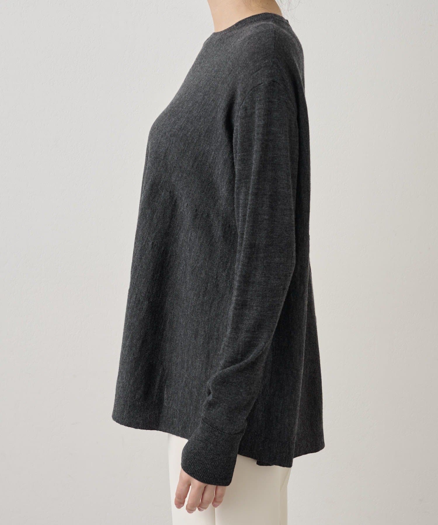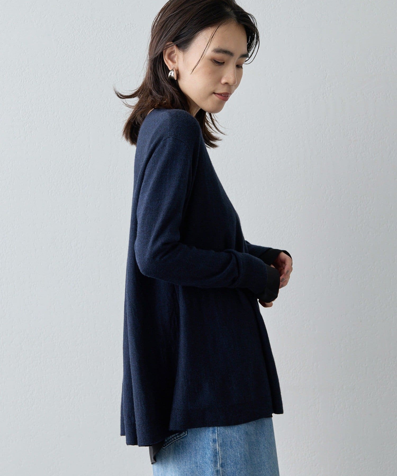 ■裾に向かって広がるAラインシルエットのクルーネックニットプルオーバー。