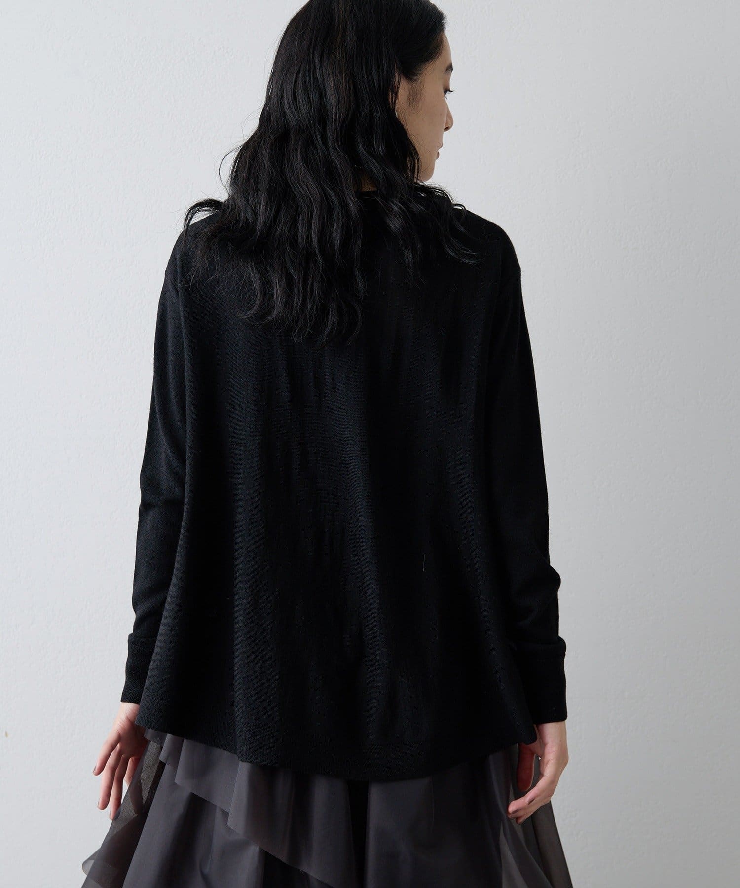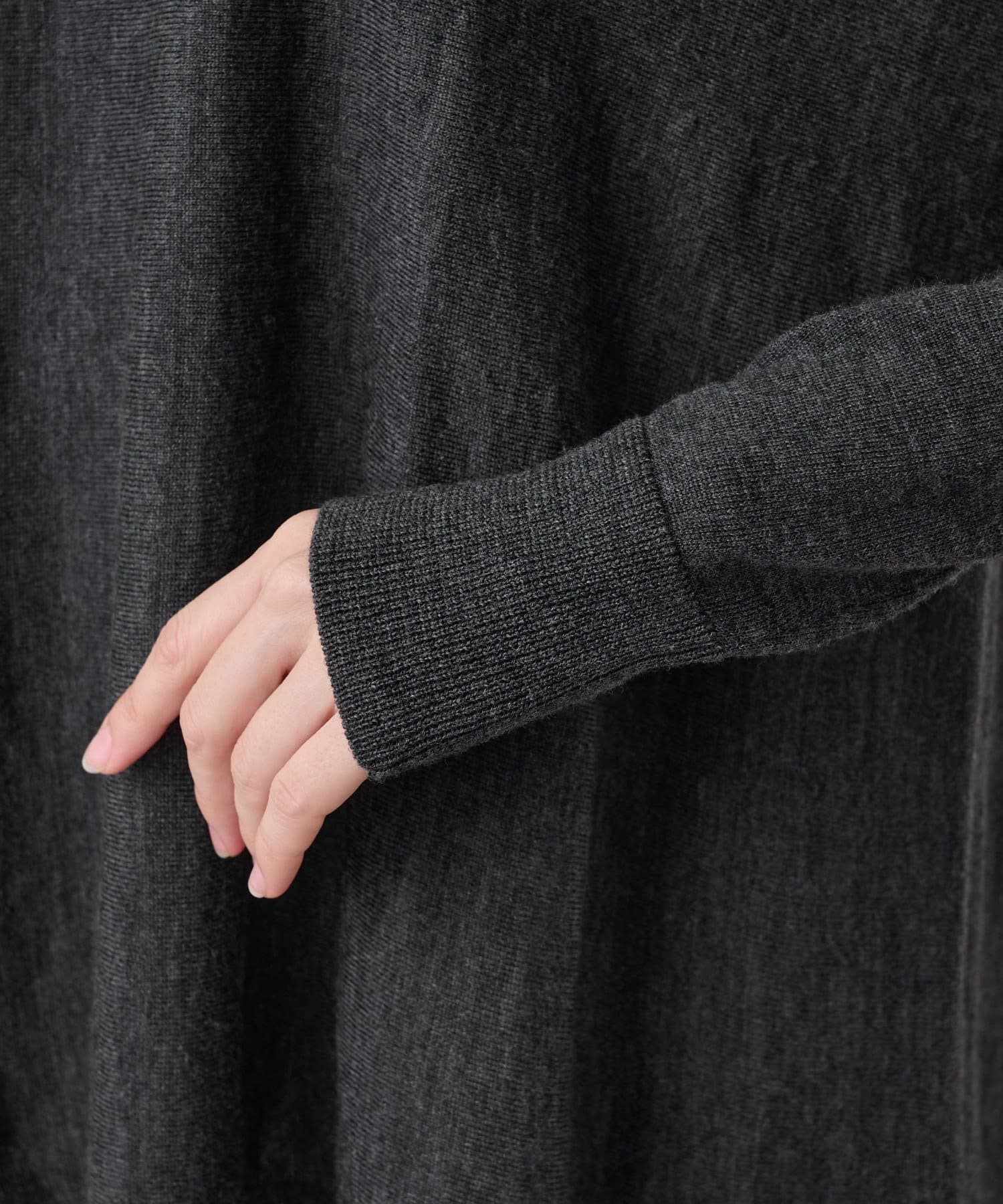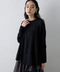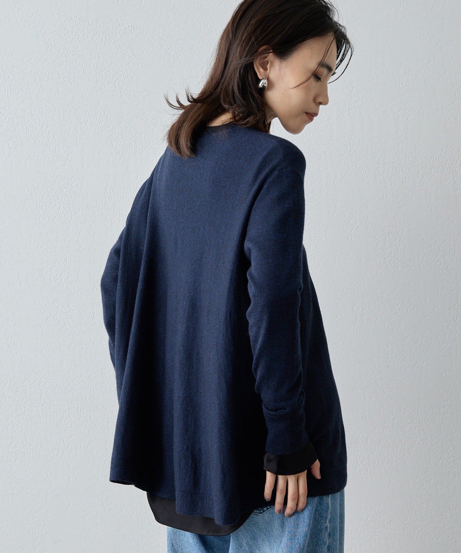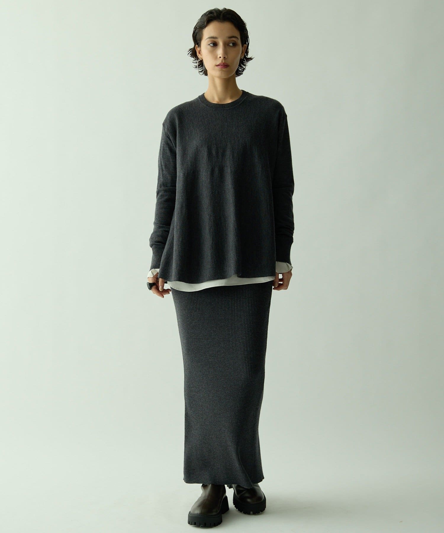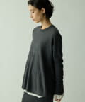 ■裾に向かって広がるAラインシルエットのクルーネックニットプルオーバー。