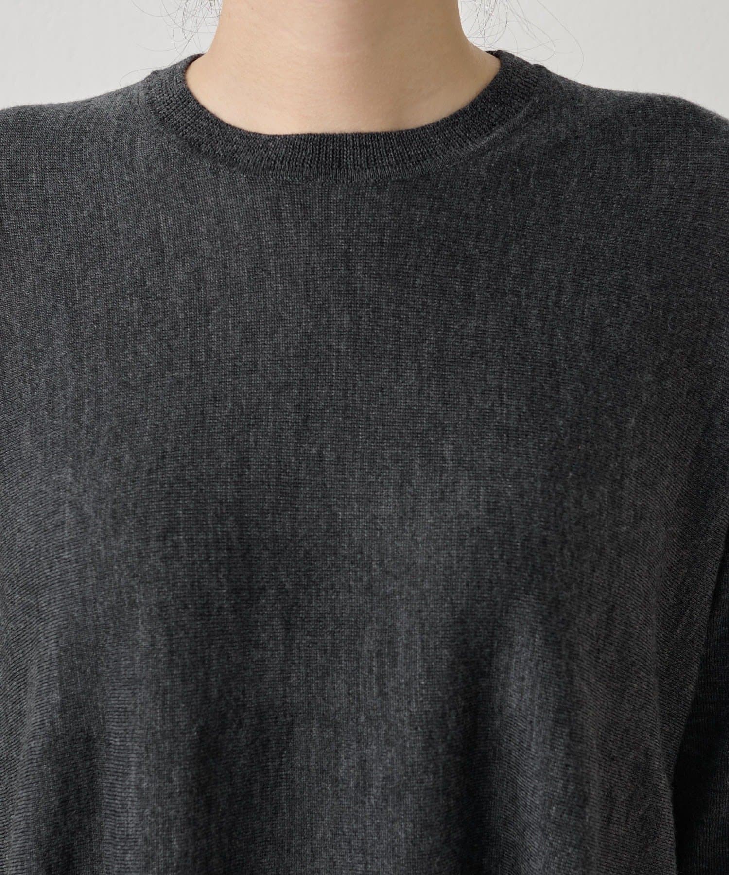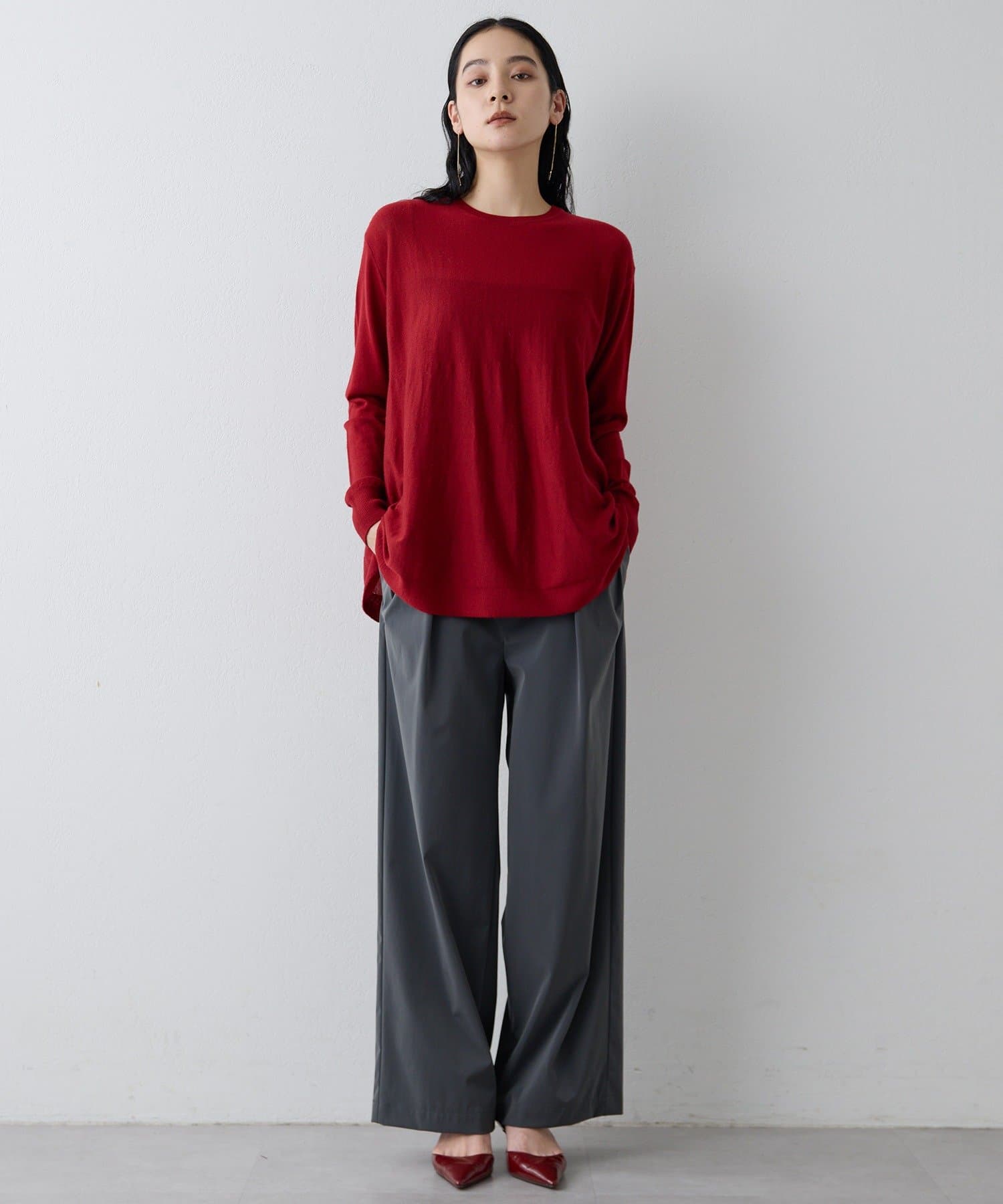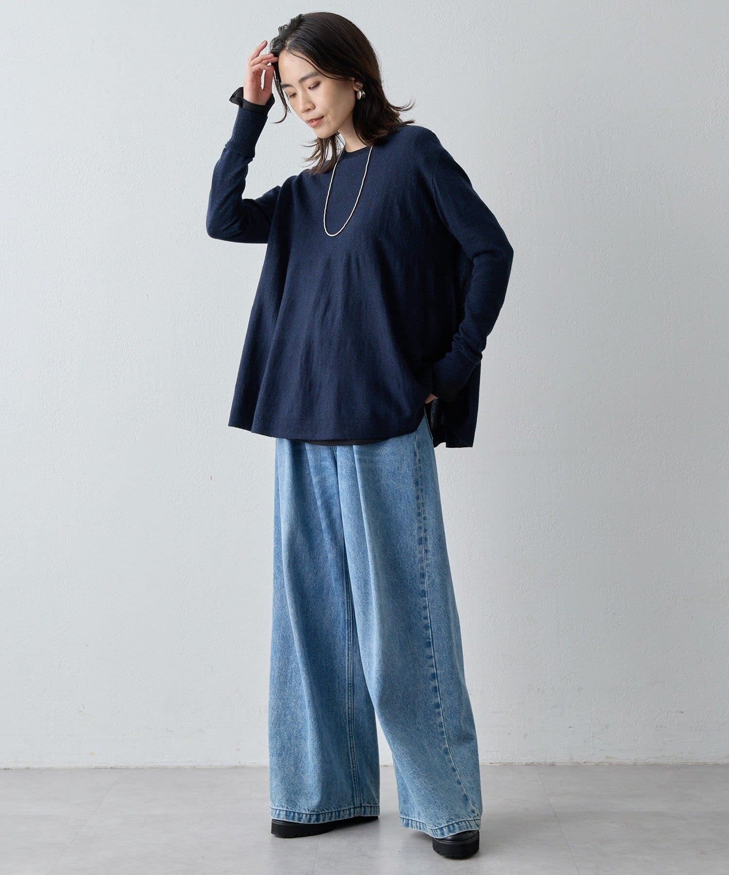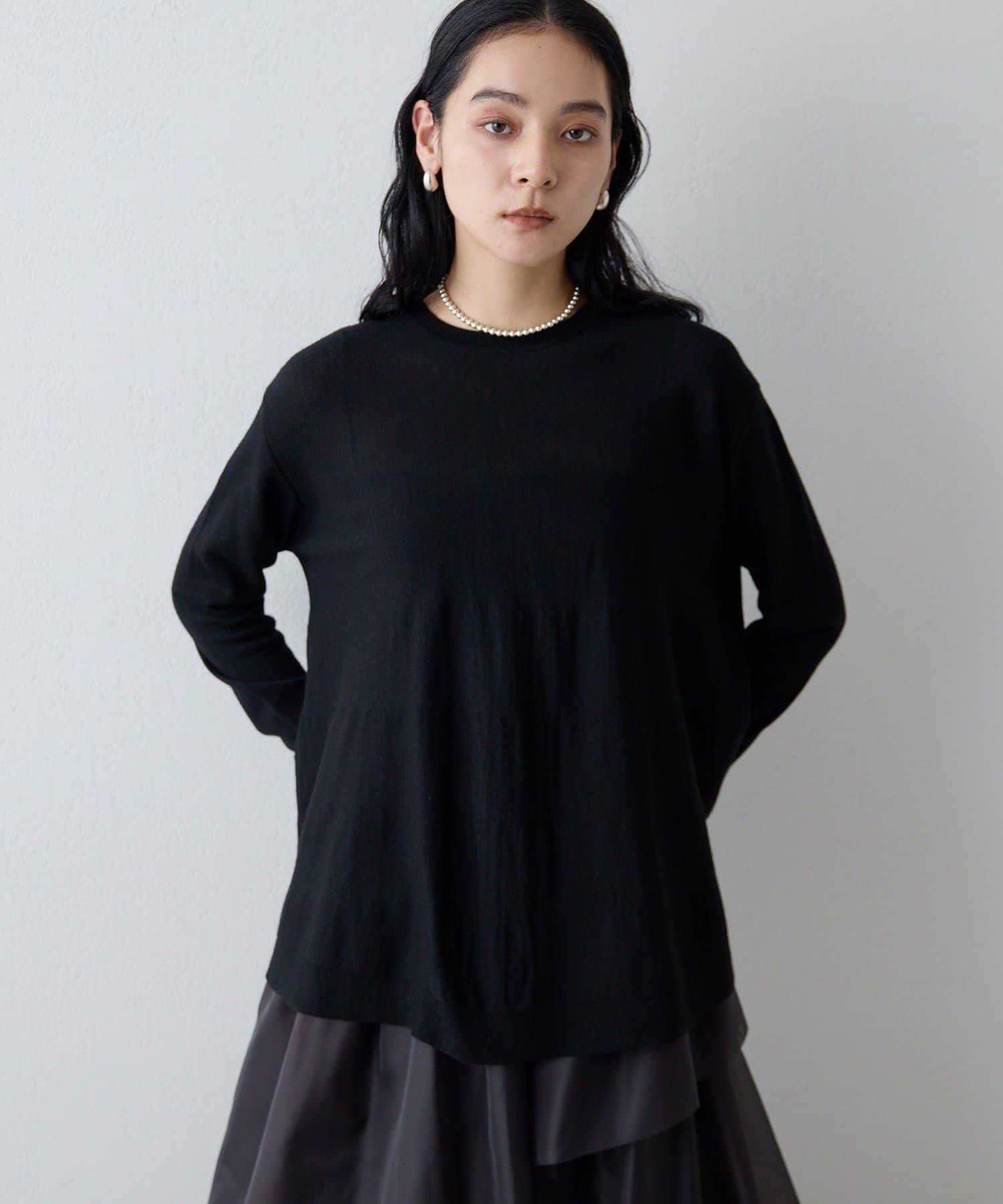 店頭でも人気のクルー裾ラウンドニット。お尻や腰回りもカバーしてくれる、優秀なニット。さらさらの肌触りです。