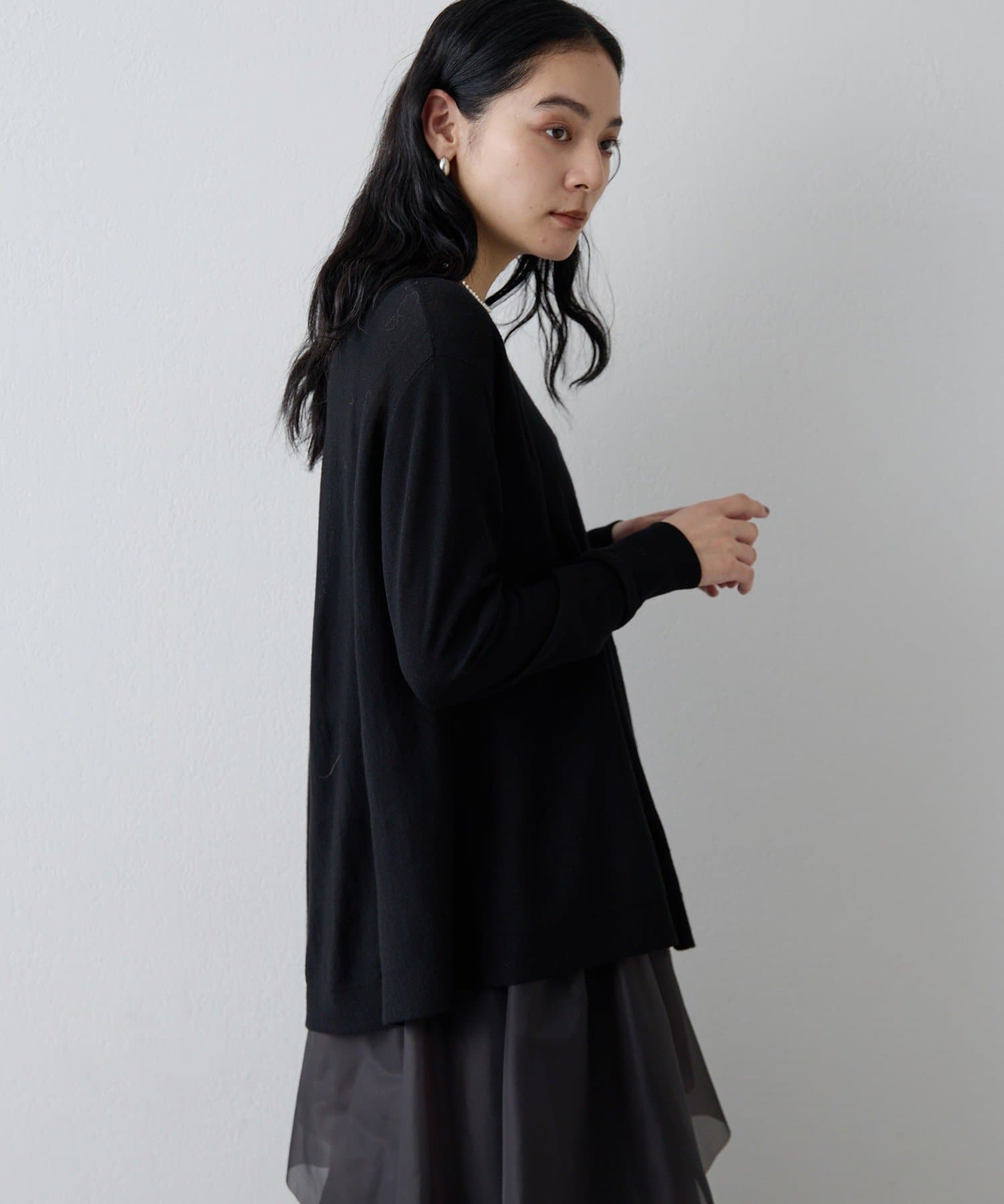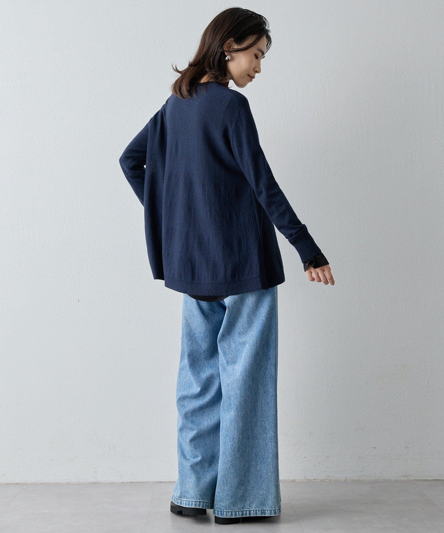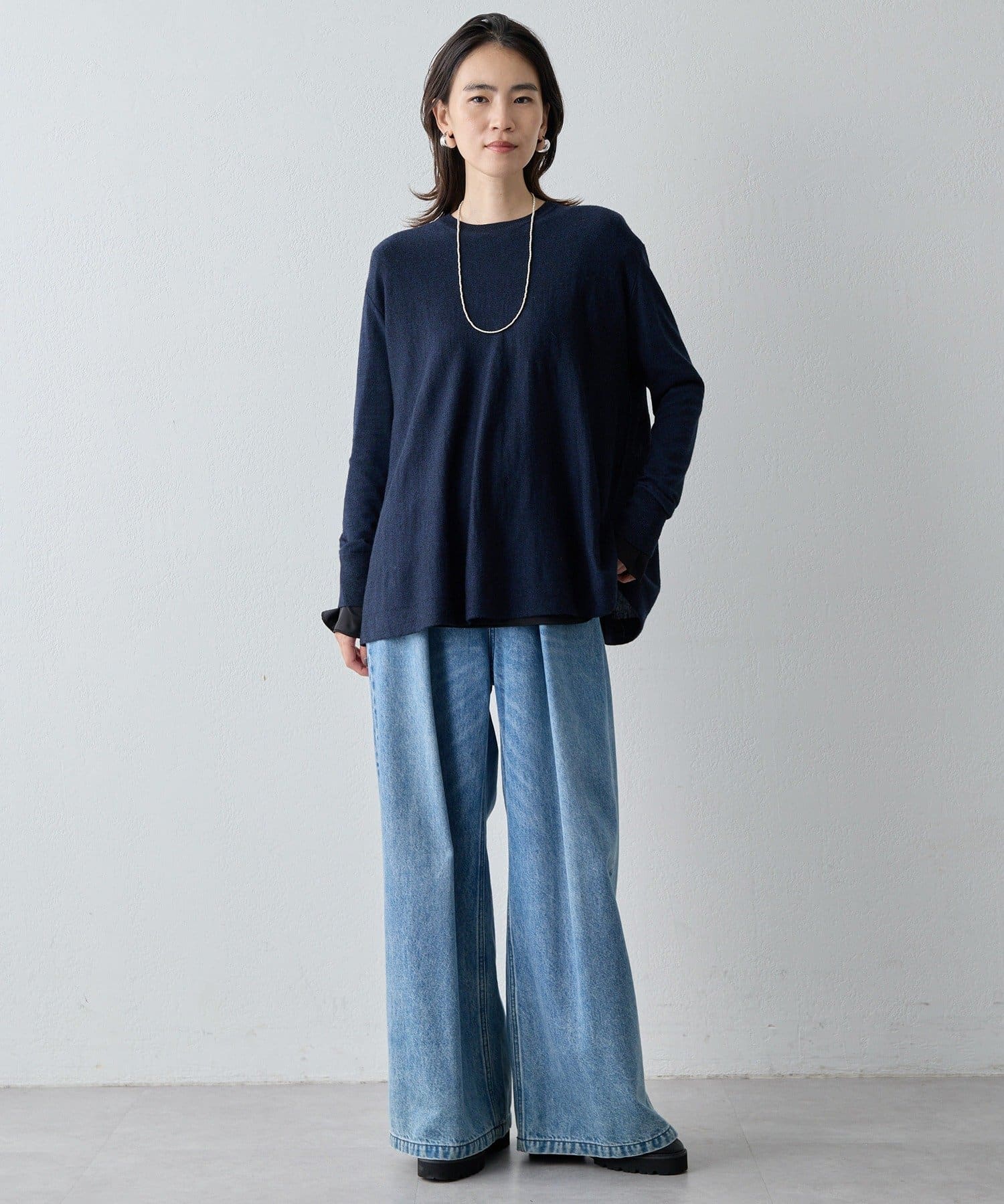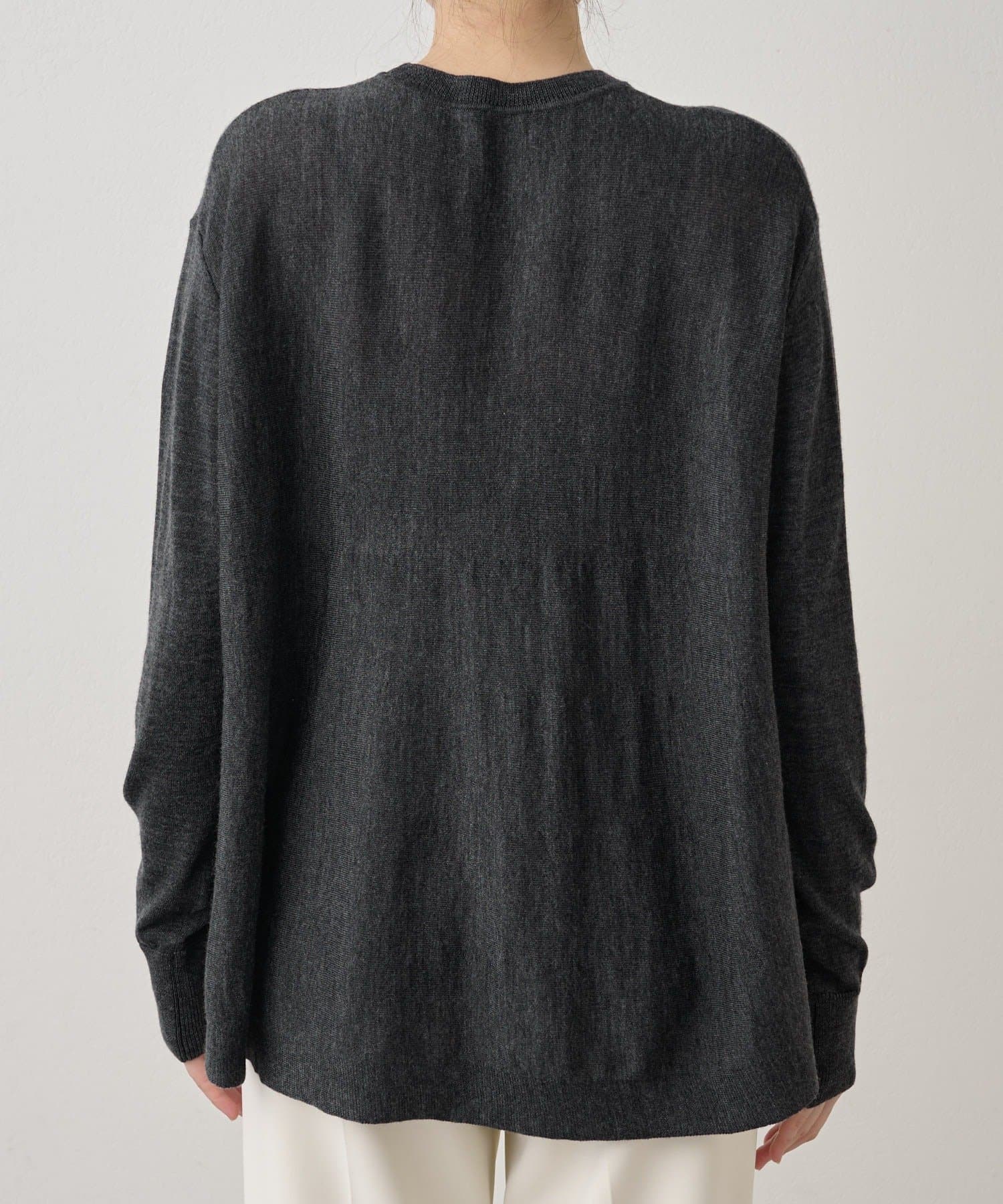 店頭でも人気のクルー裾ラウンドニット。お尻や腰回りもカバーしてくれる、優秀なニット。さらさらの肌触りです。