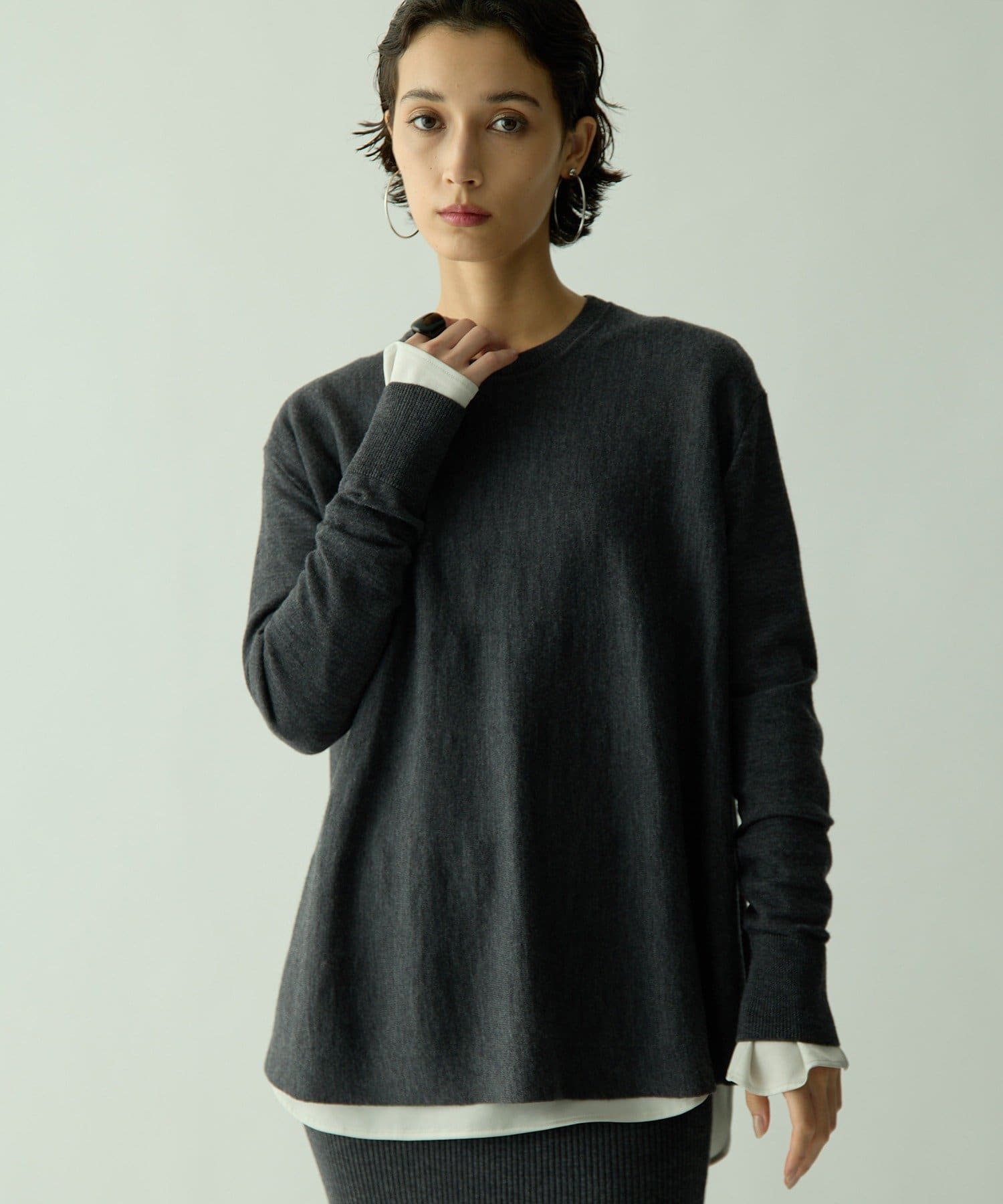 名品タートル裾ラウンドニットから、クルーネックタイプが登場しました!気になる腰回りやヒップ、お腹回りもばっちりカバーしてくれます◎着心地も抜群です!