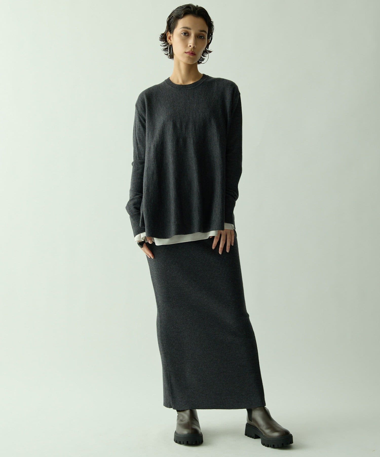 ■同シリーズのウールリブニットタイトスカート(ブランド品番:DNZ1052201A0002)とのセットアップもおすすめ。