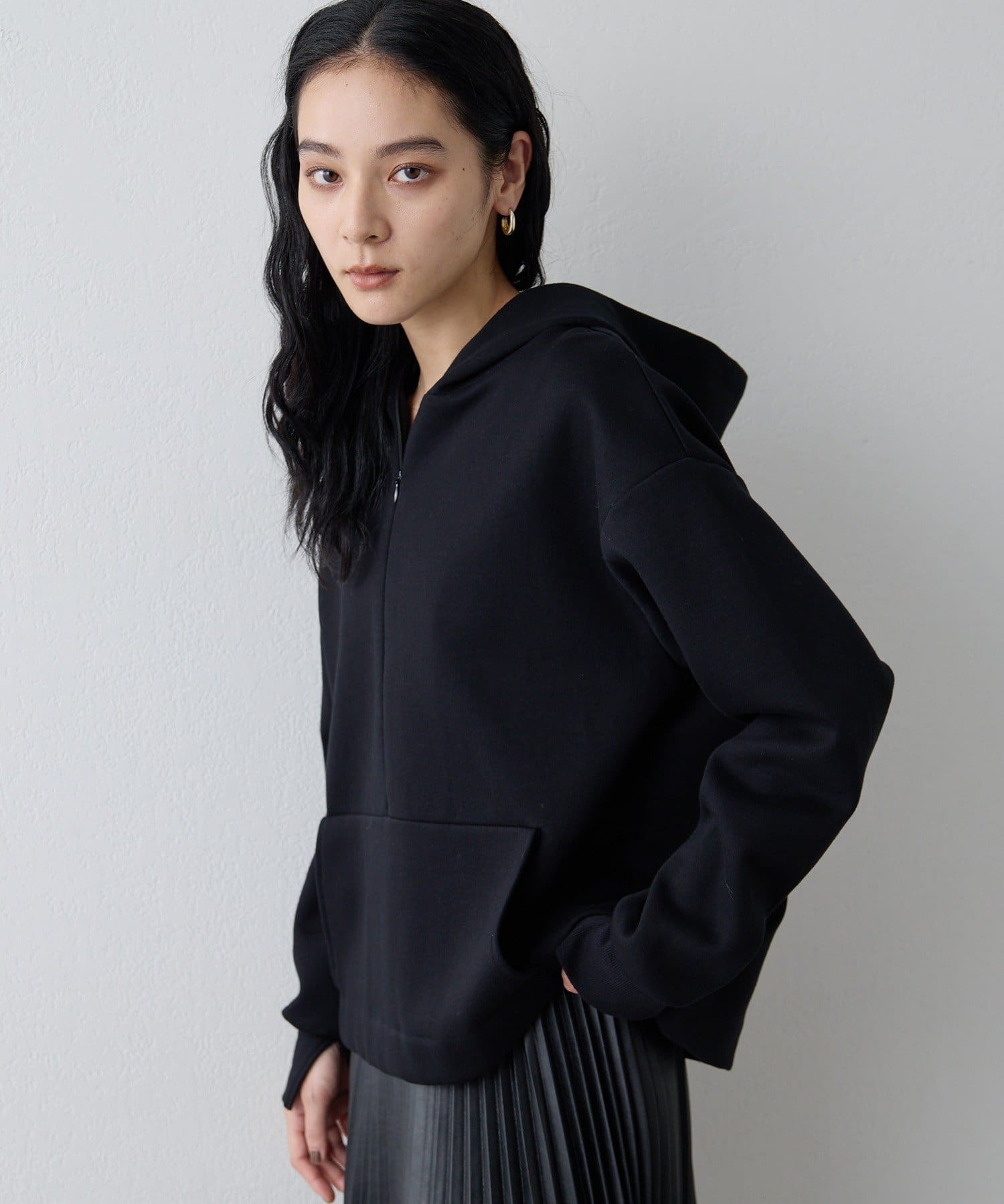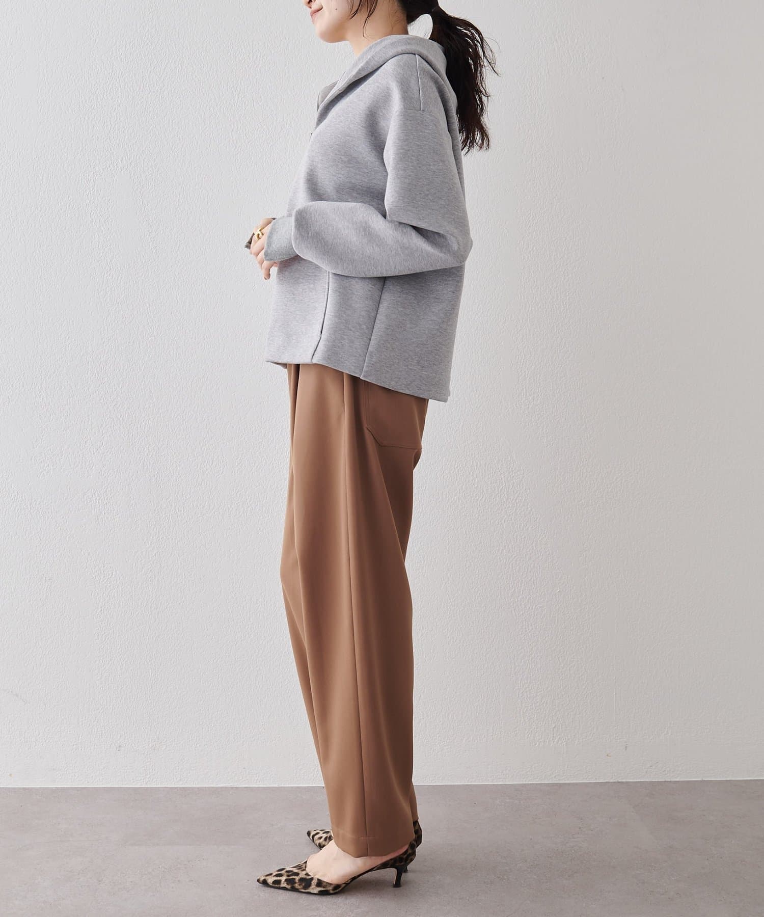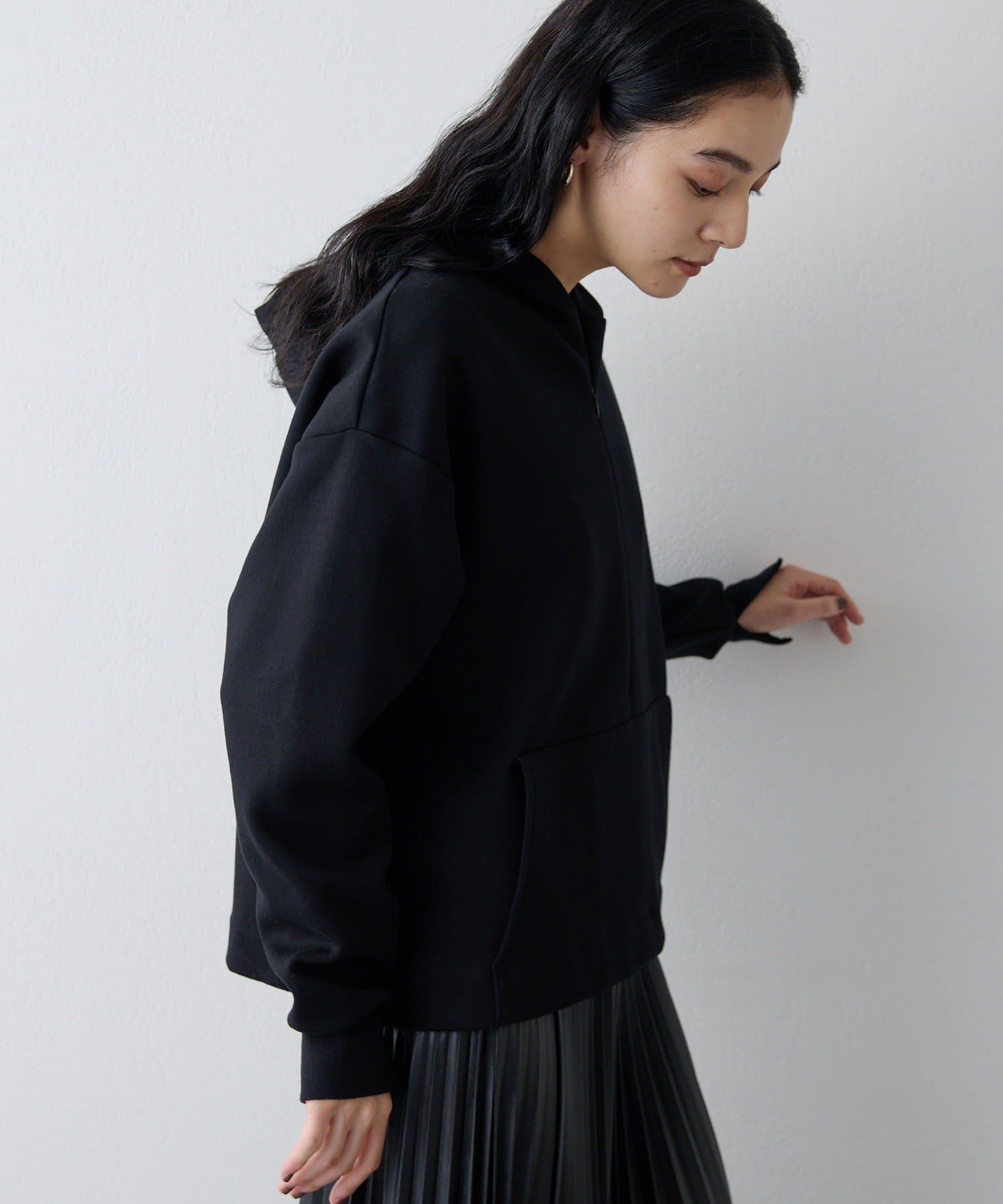 ■フロントのファスナーを開けると首元に抜け感が出てすっきりとした印象に◎