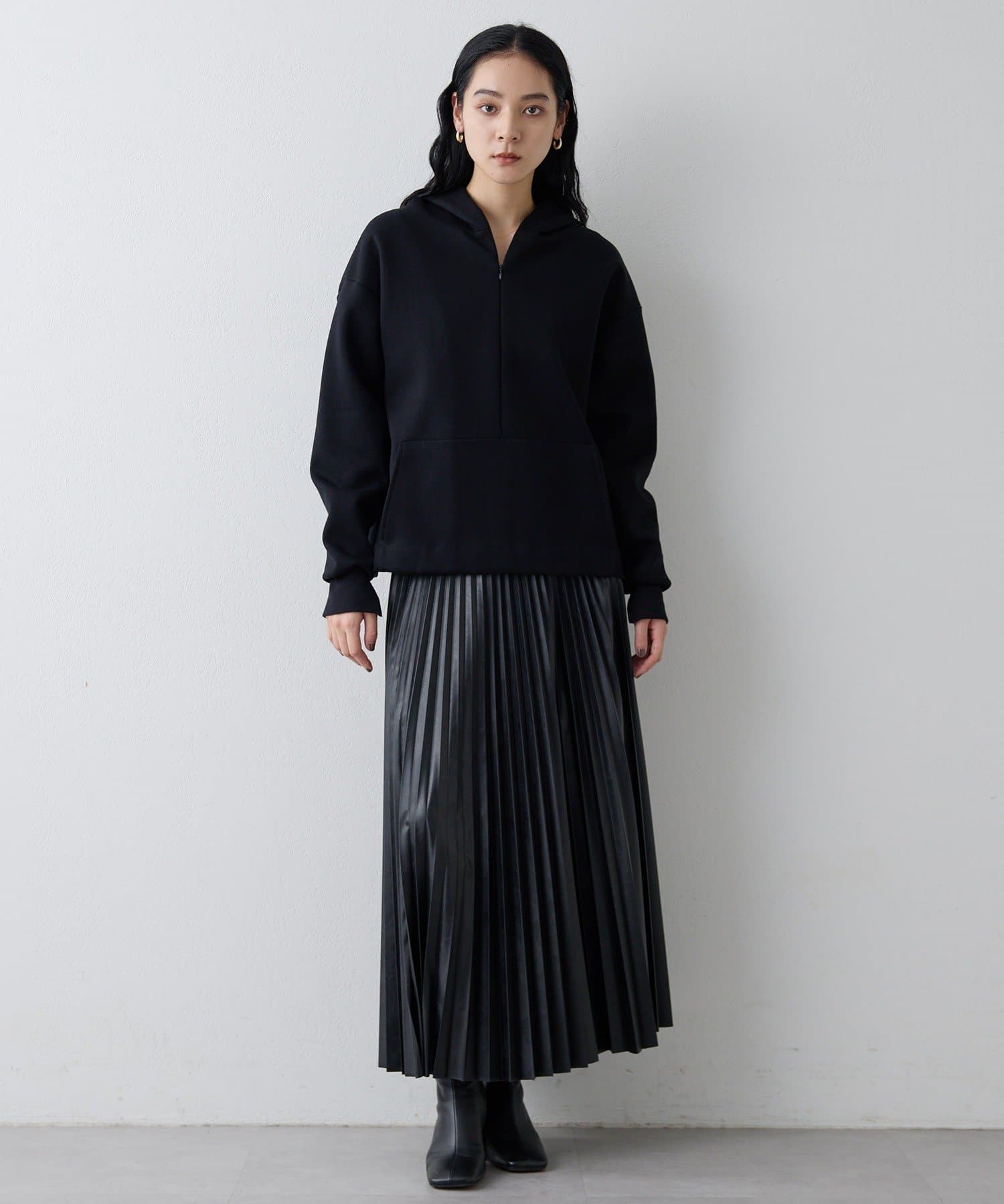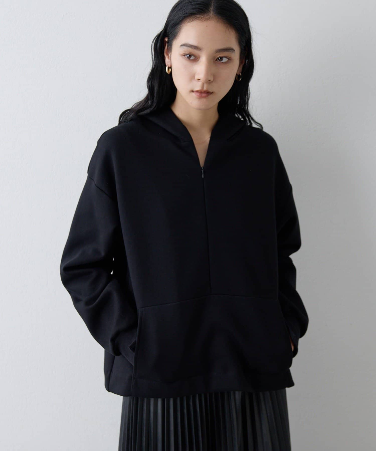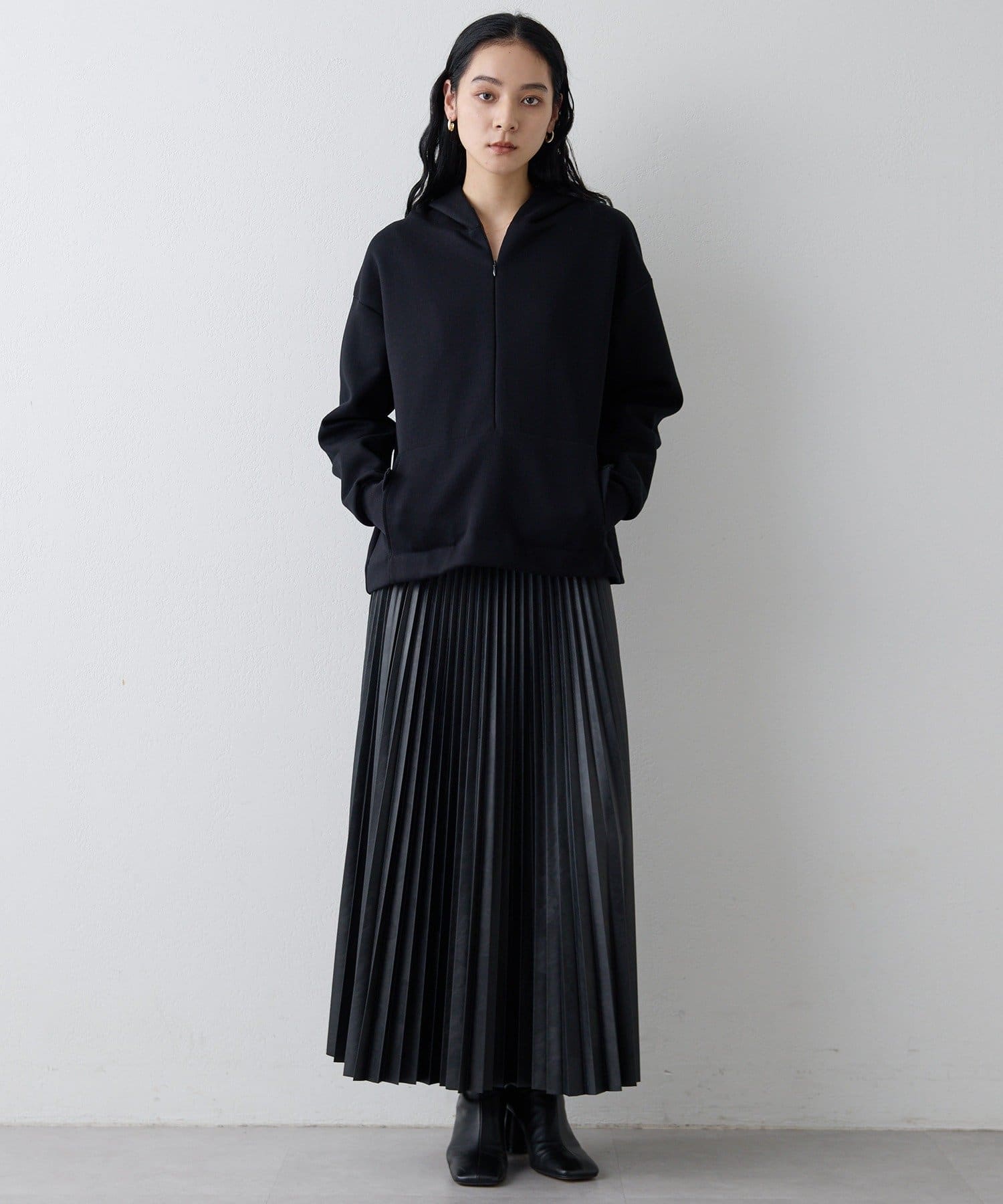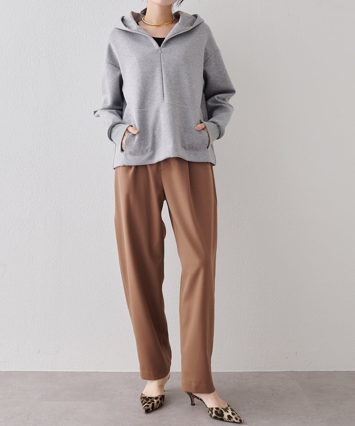 ■フロントのファスナーを開けると首元に抜け感が出てすっきりとした印象に◎