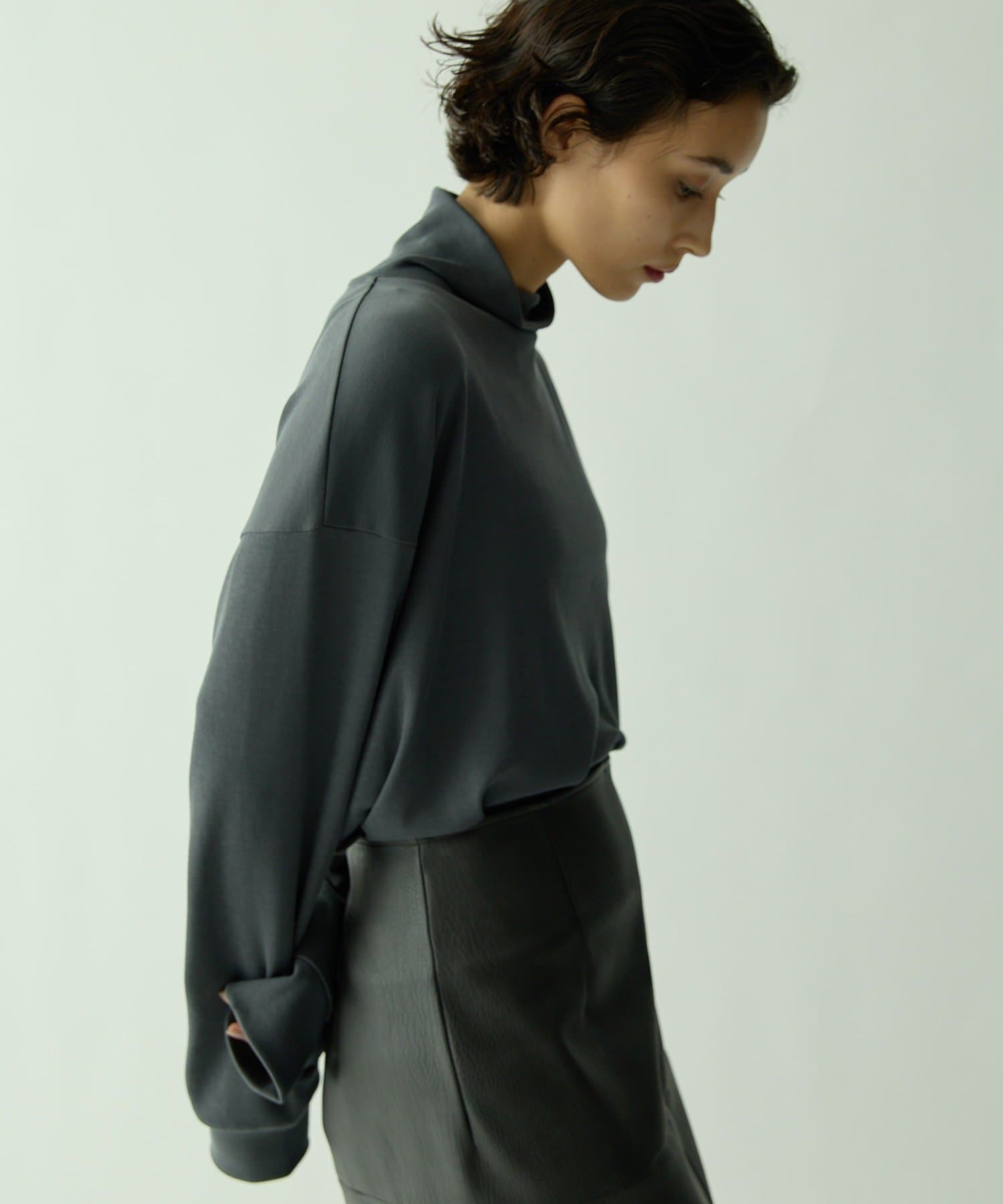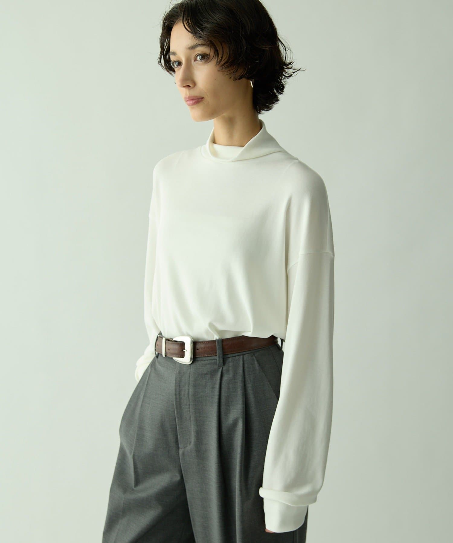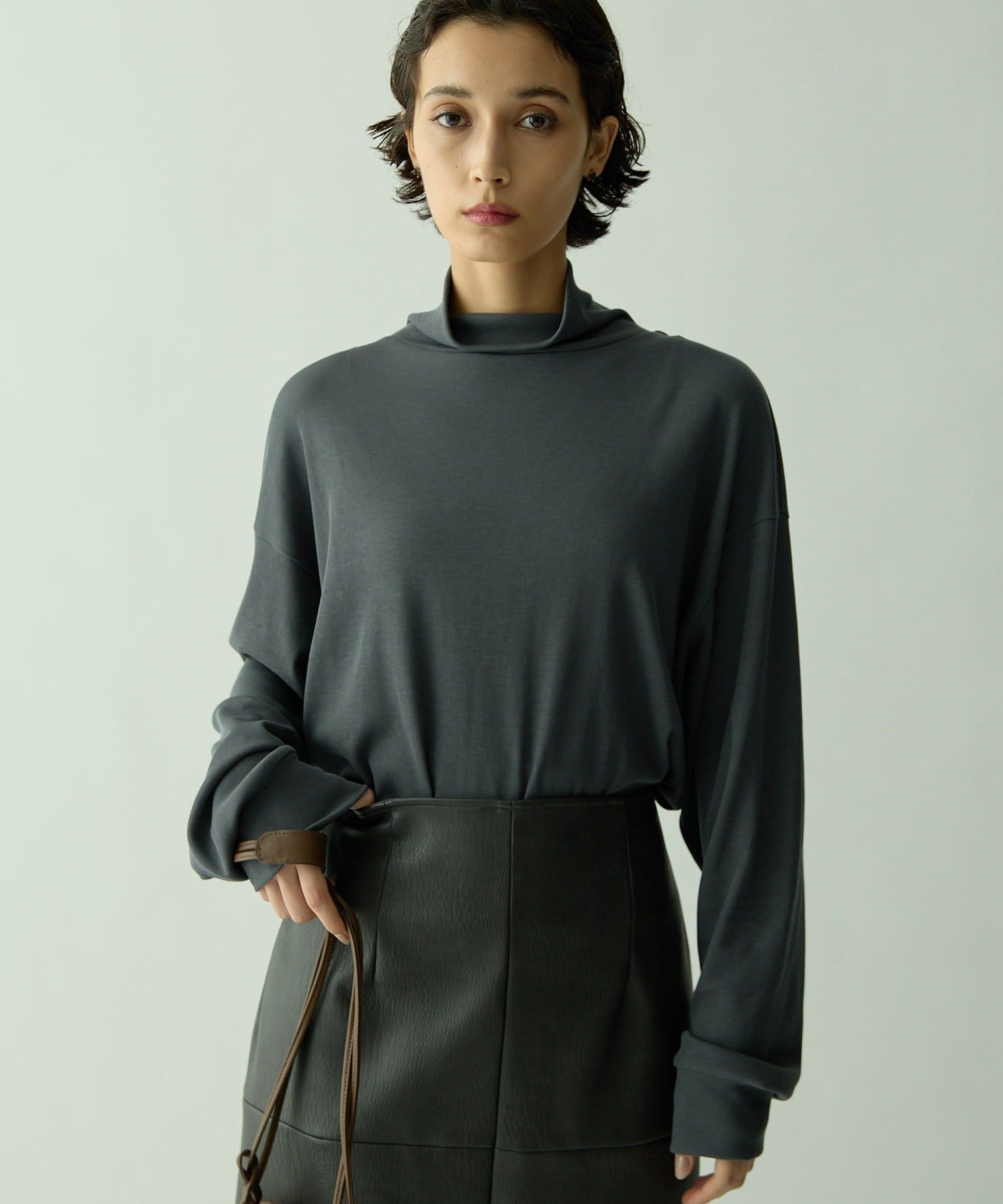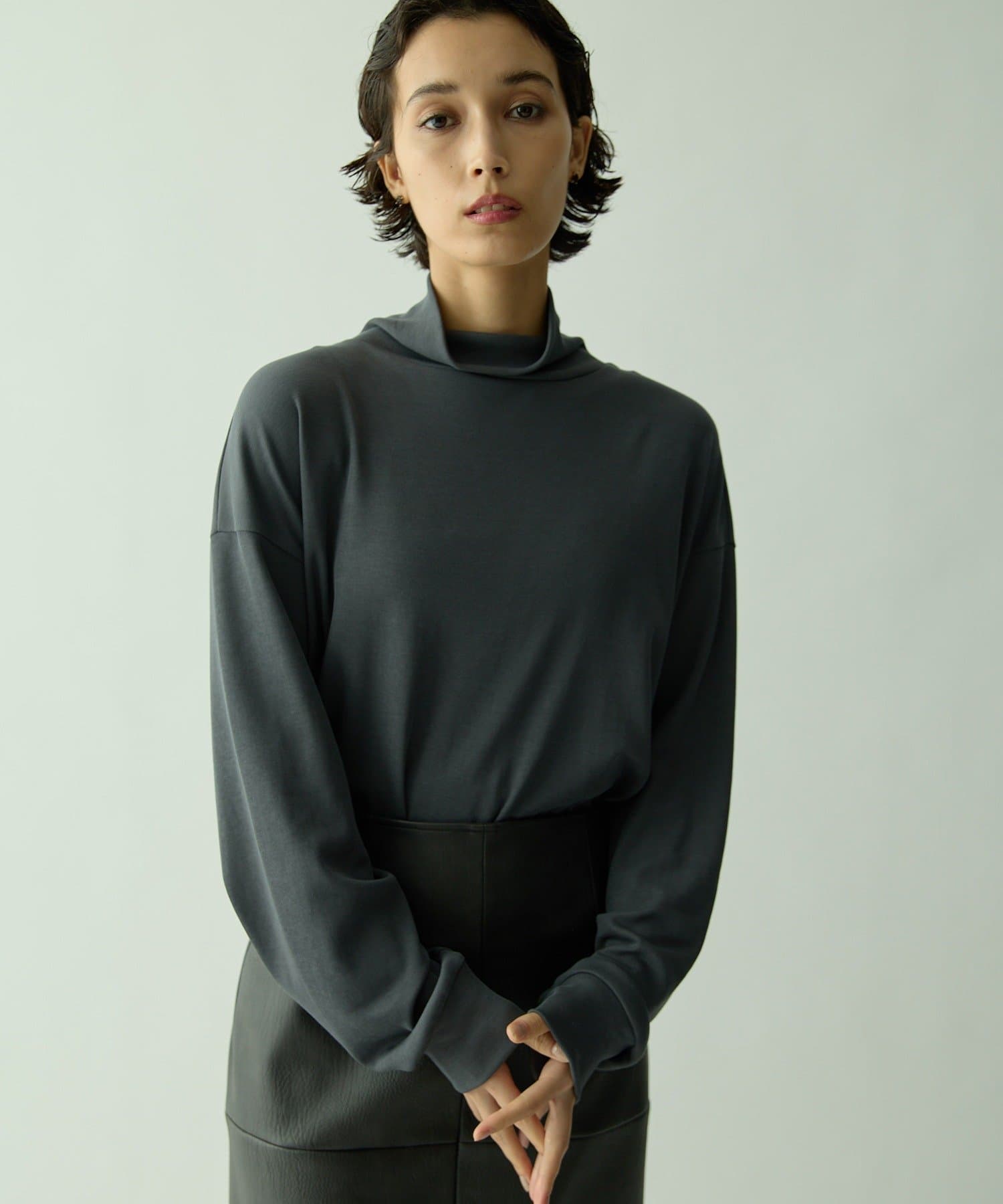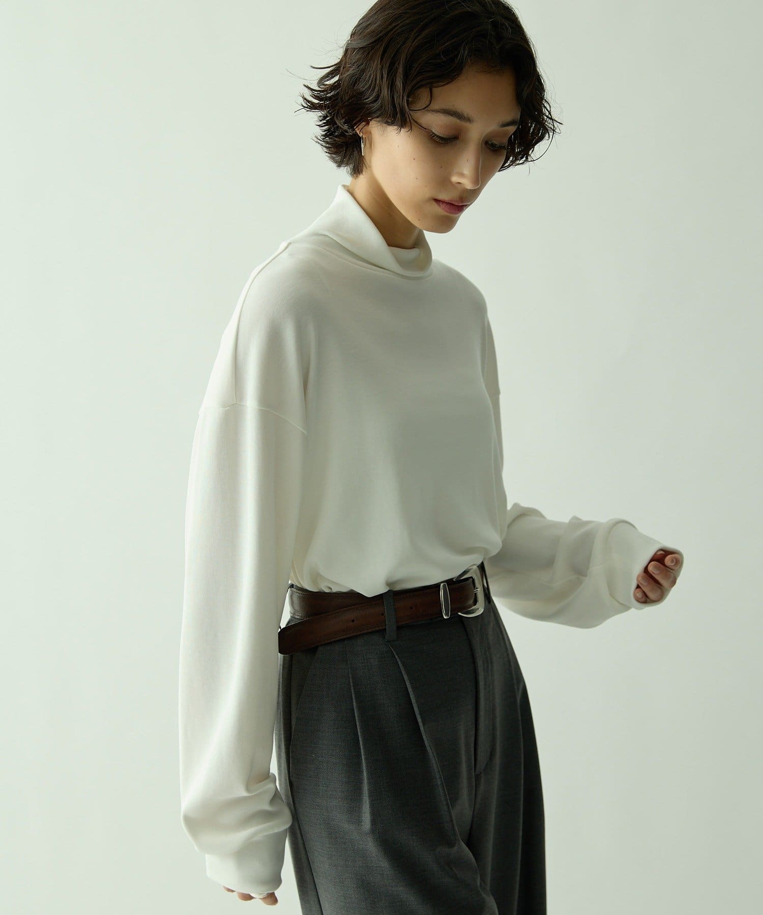 ■ルーズ感のあるシンプルなデザインのタートルネックカットソー。